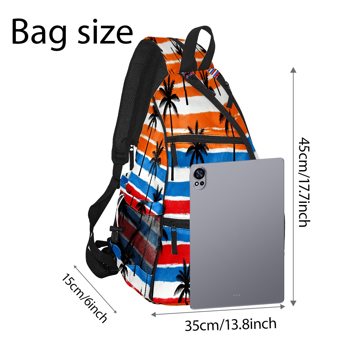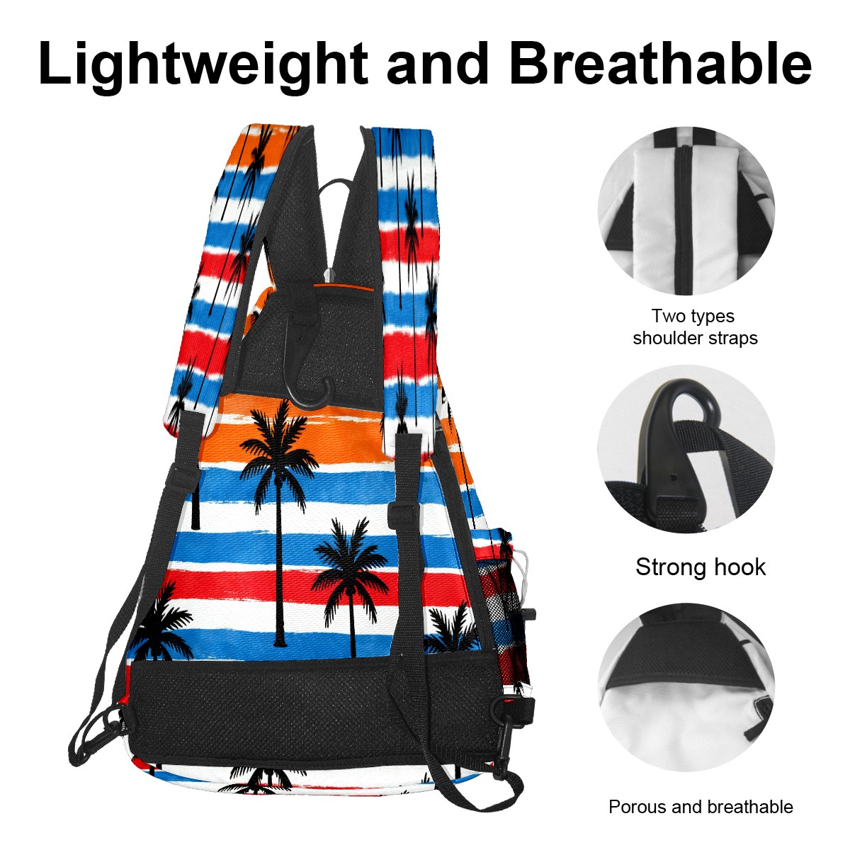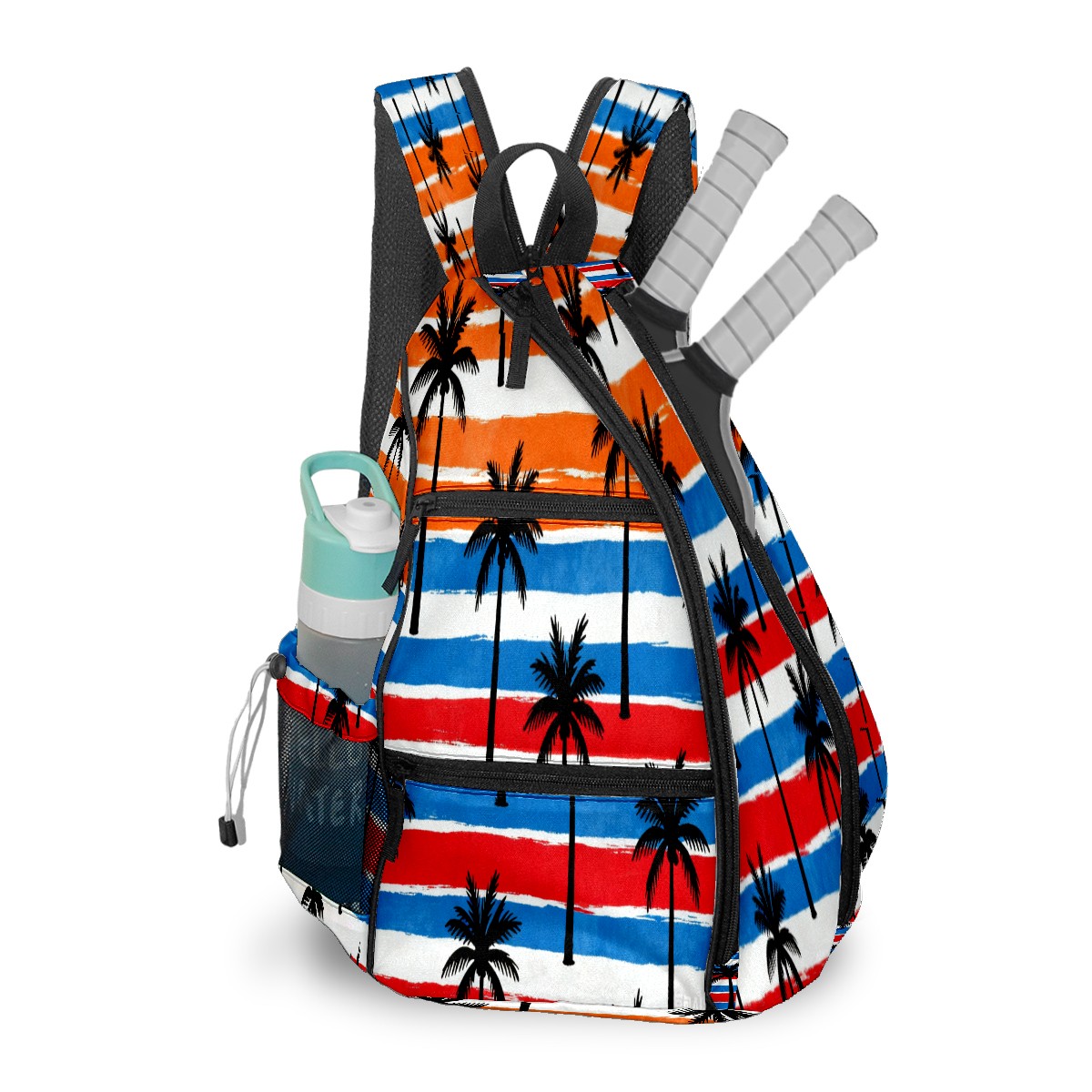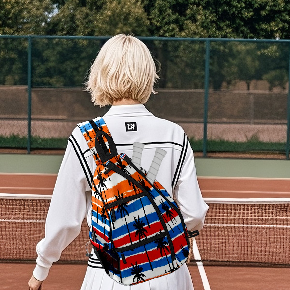 Pickleball Sling Bag for Women and Men - Backpack with Nylon Fabric/Woven Strap/Mesh Pocket/Fence Hook/Small Capacity/Adjustable Sling Bag Tropical Palm Tree Pattern