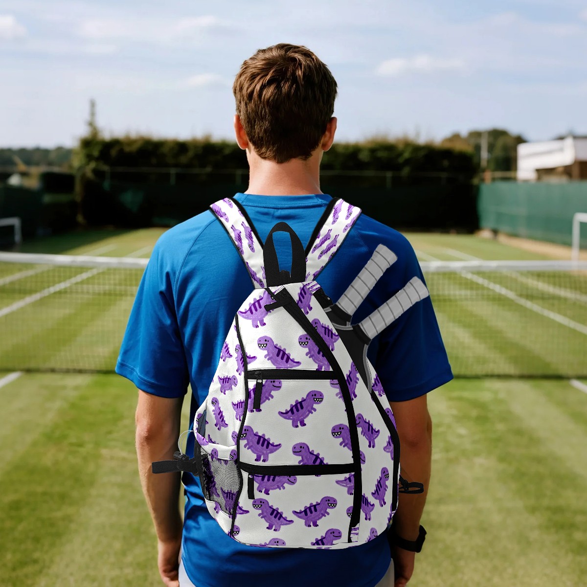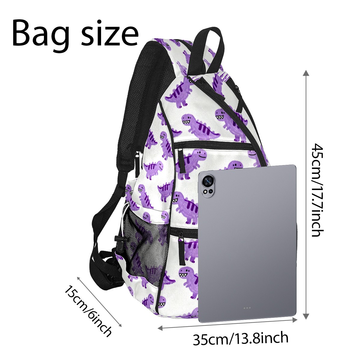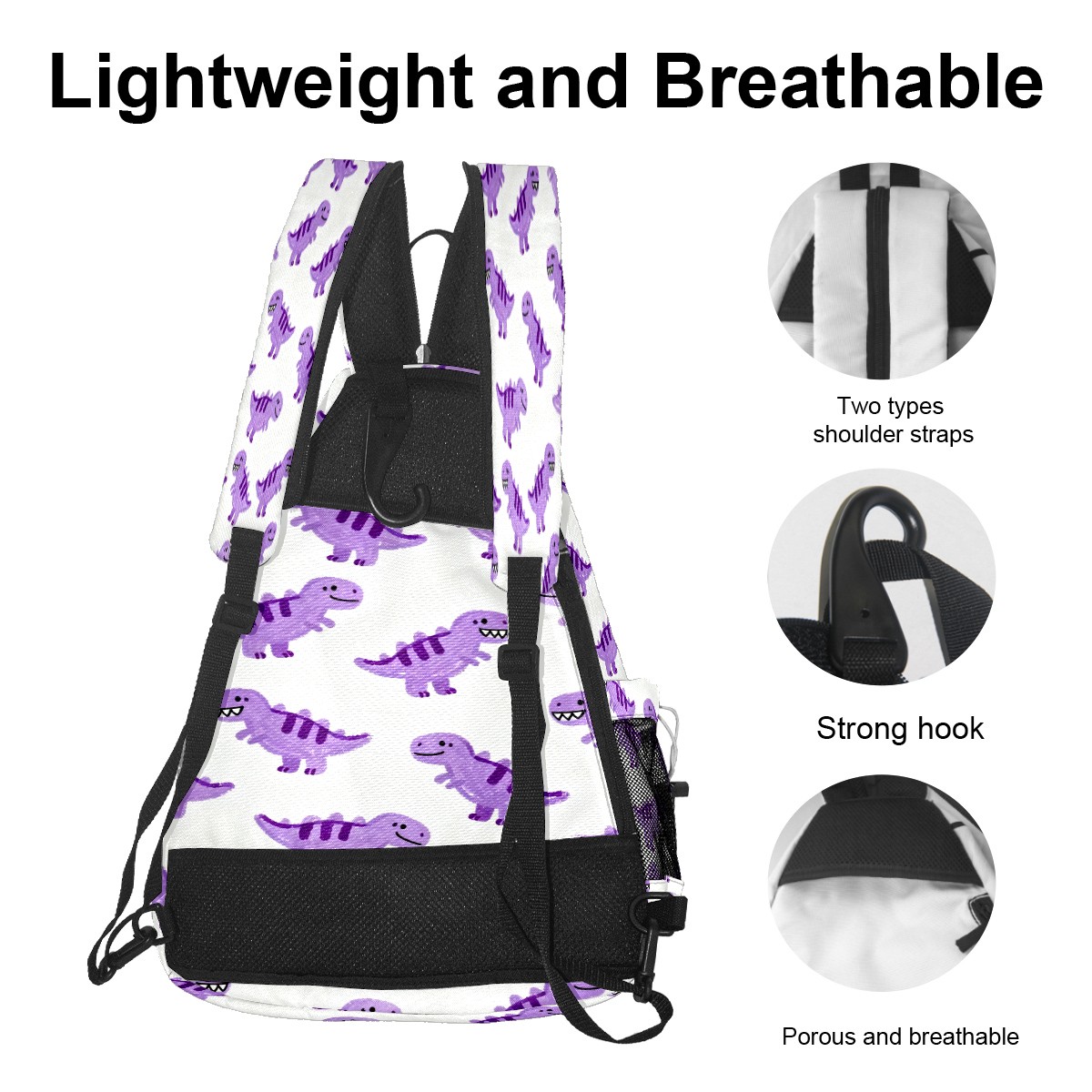 Pickleball Sling Bag for Women and Men - Backpack with Nylon Fabric/Woven Strap/Mesh Pocket/Fence Hook/Small Capacity/Adjustable Sling Bag Purple Cartoon Dinosaur
