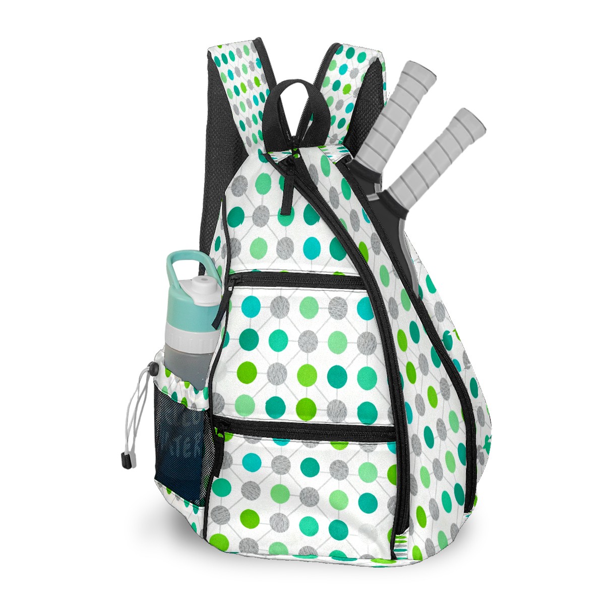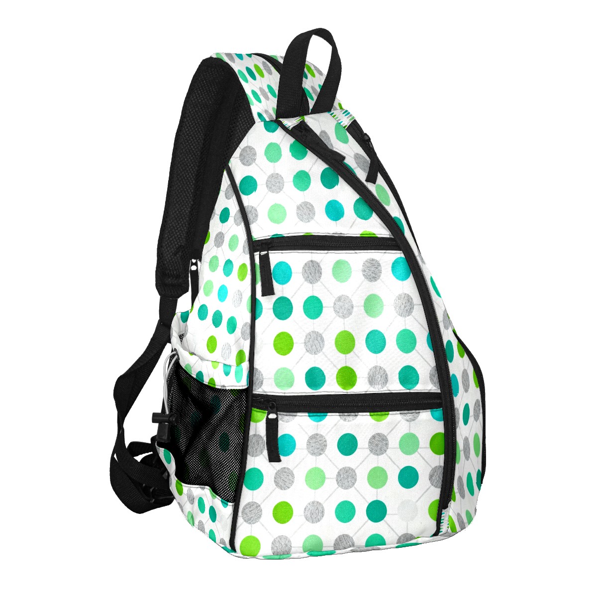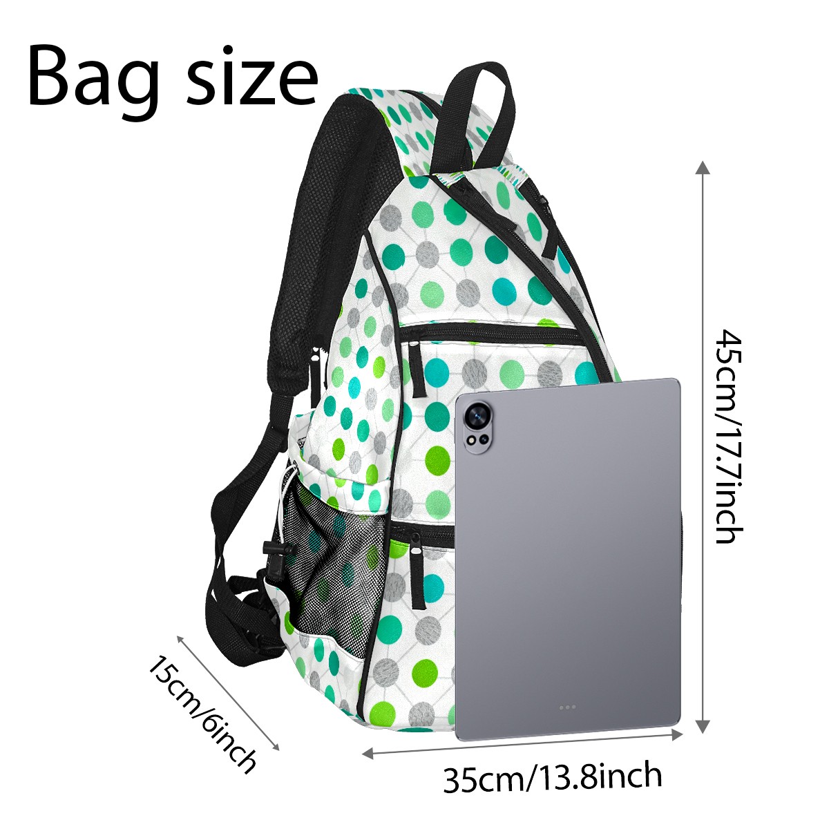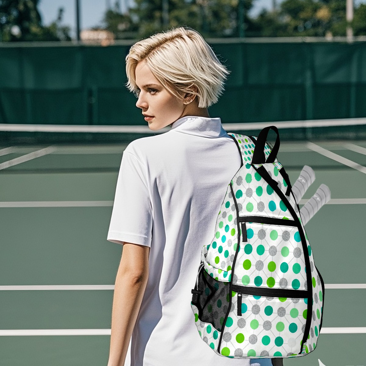 Pickleball Sling Bag for Women and Men - Backpack with Nylon Fabric/Woven Strap/Mesh Pocket/Fence Hook/Small Capacity/Adjustable Sling Bag Polka Dot Pattern