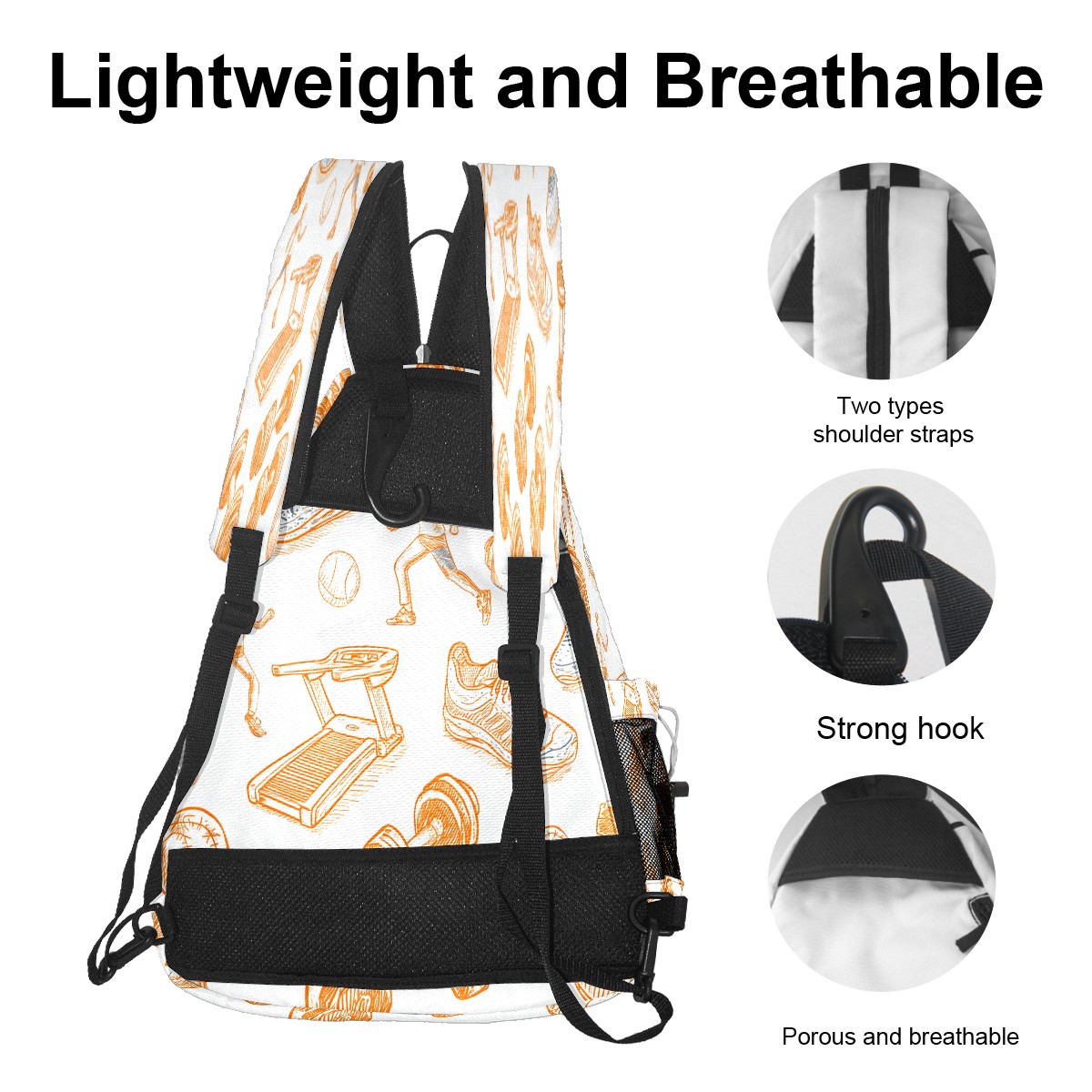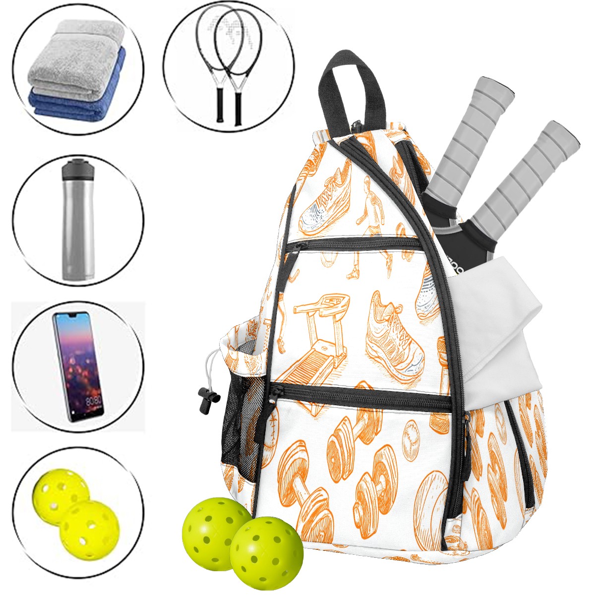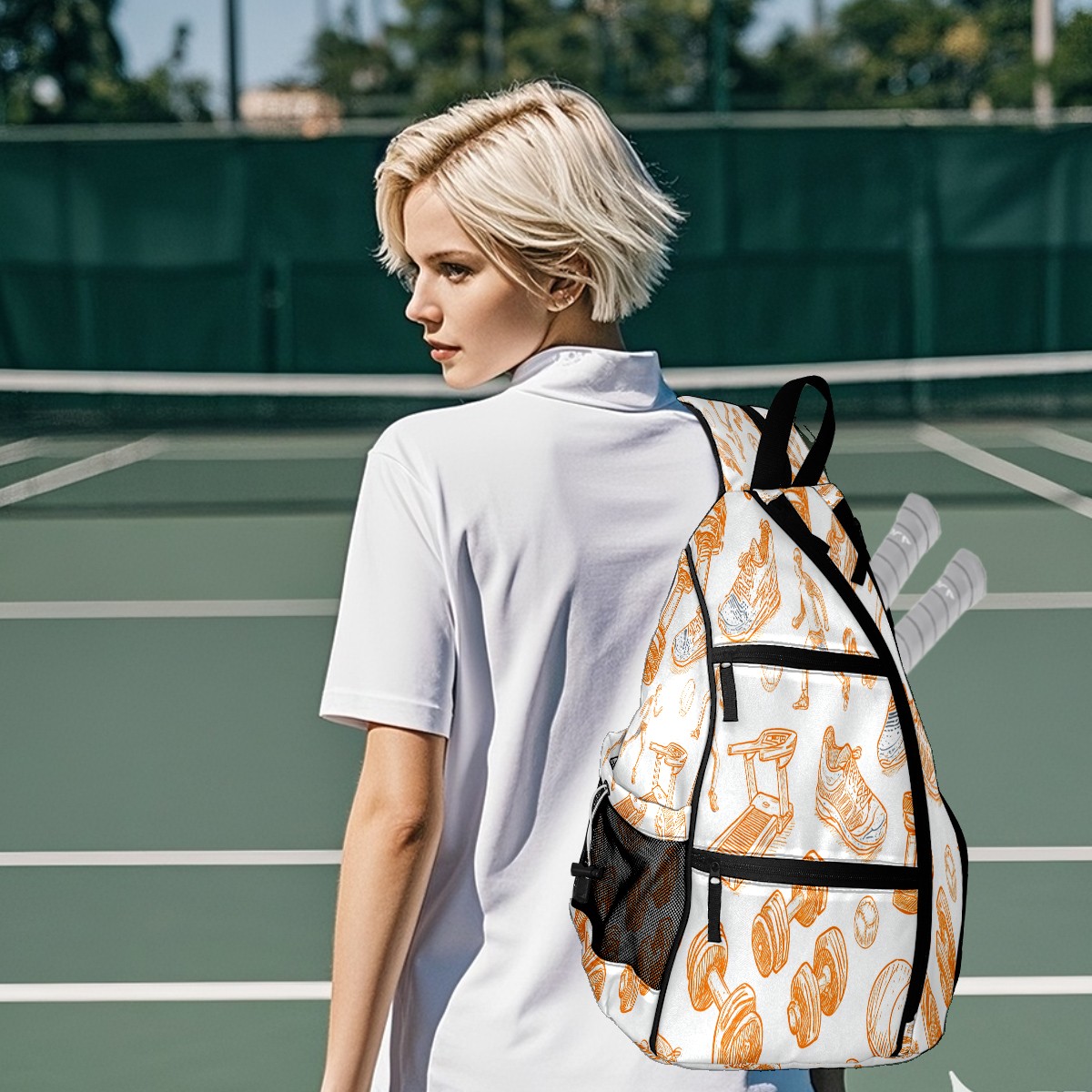 Print Pickleball Backpack Orange Fitness Gear | Padded 6-Paddle Compartment & Separate Shoe Bag | Multi-Pocket Sports & Gym Backpack for Tennis, Travel, Commute