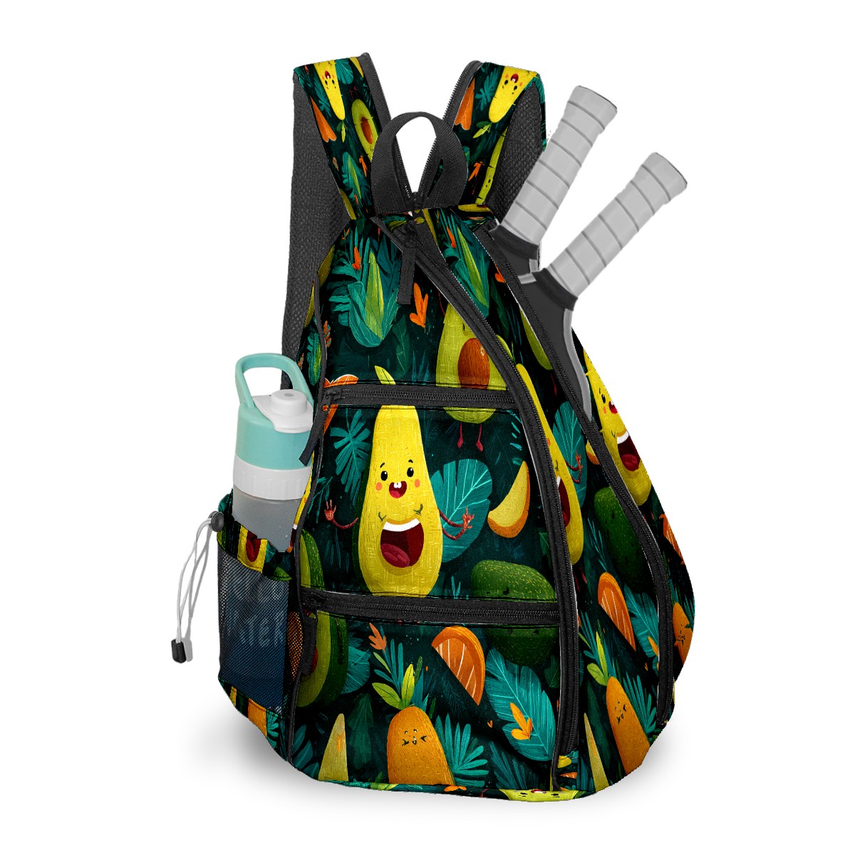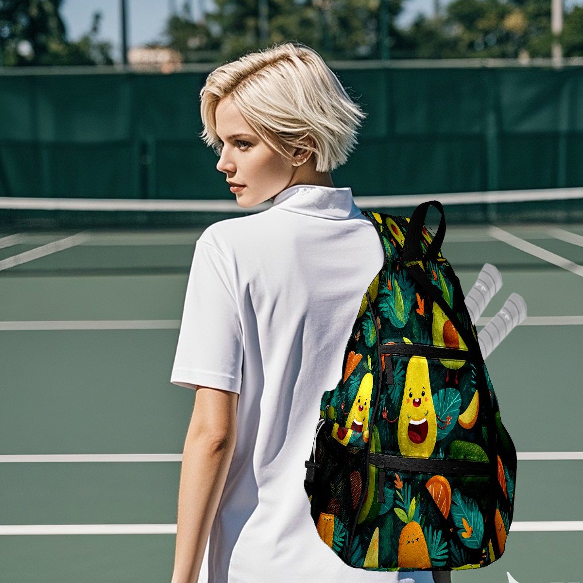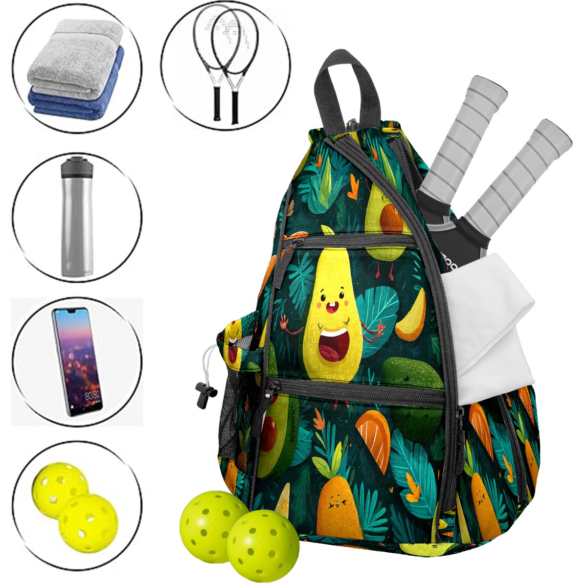 Print Pickleball Backpack Green Avocado Fruits | Padded 6-Paddle Compartment & Separate Shoe Bag | Multi-Pocket Sports & Gym Backpack for Tennis, Travel, Commute