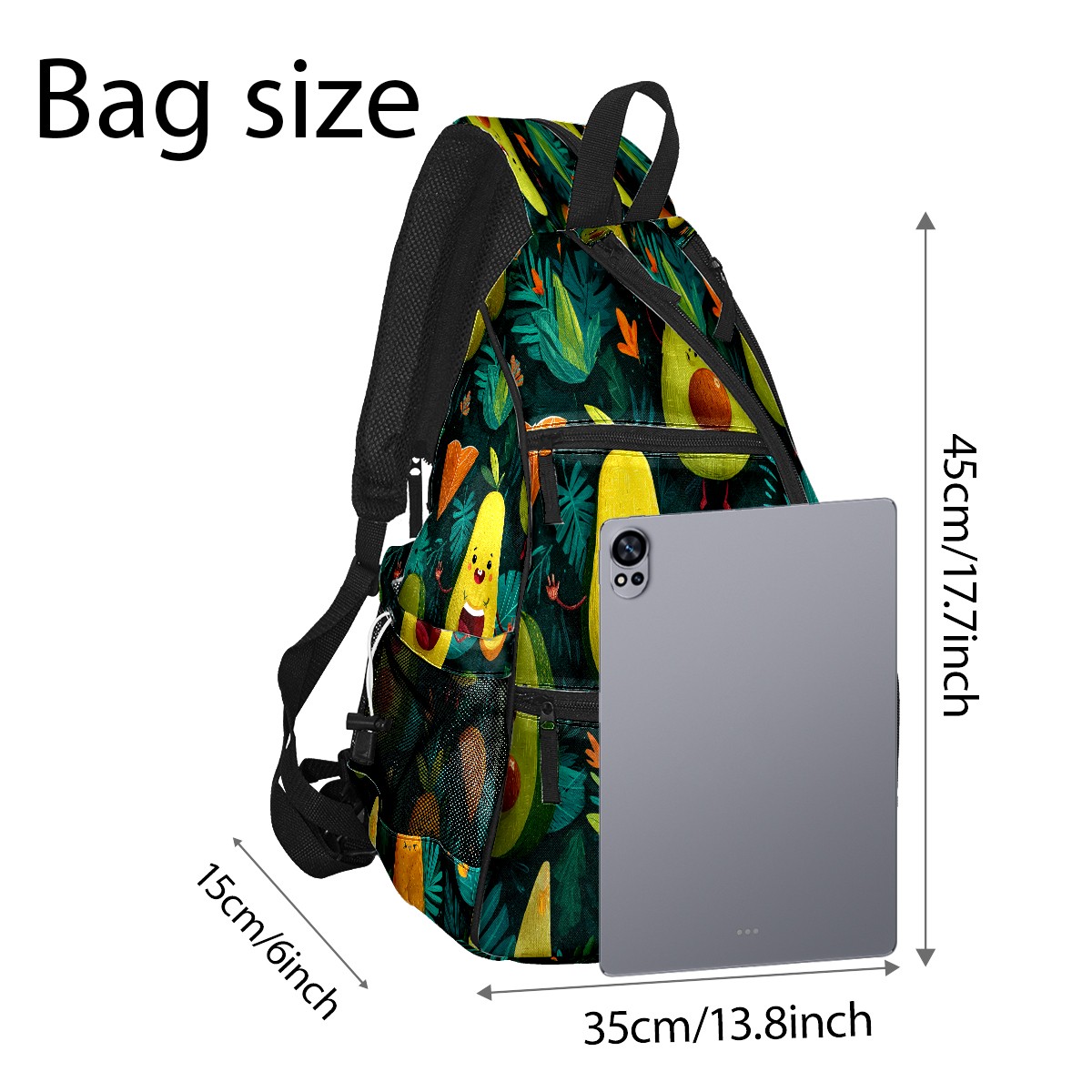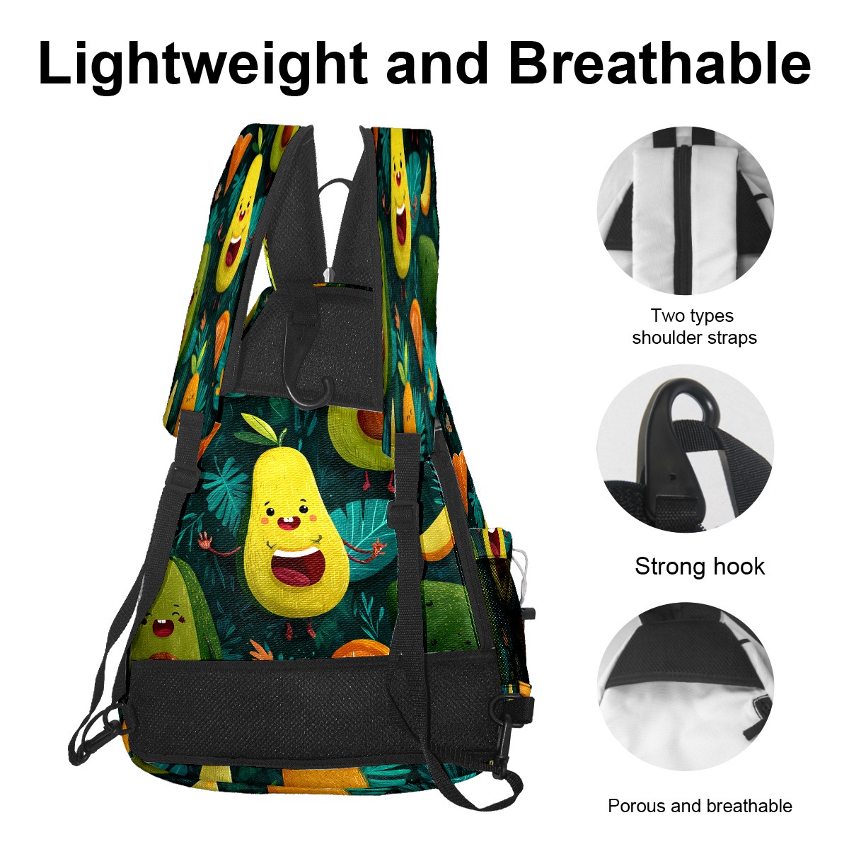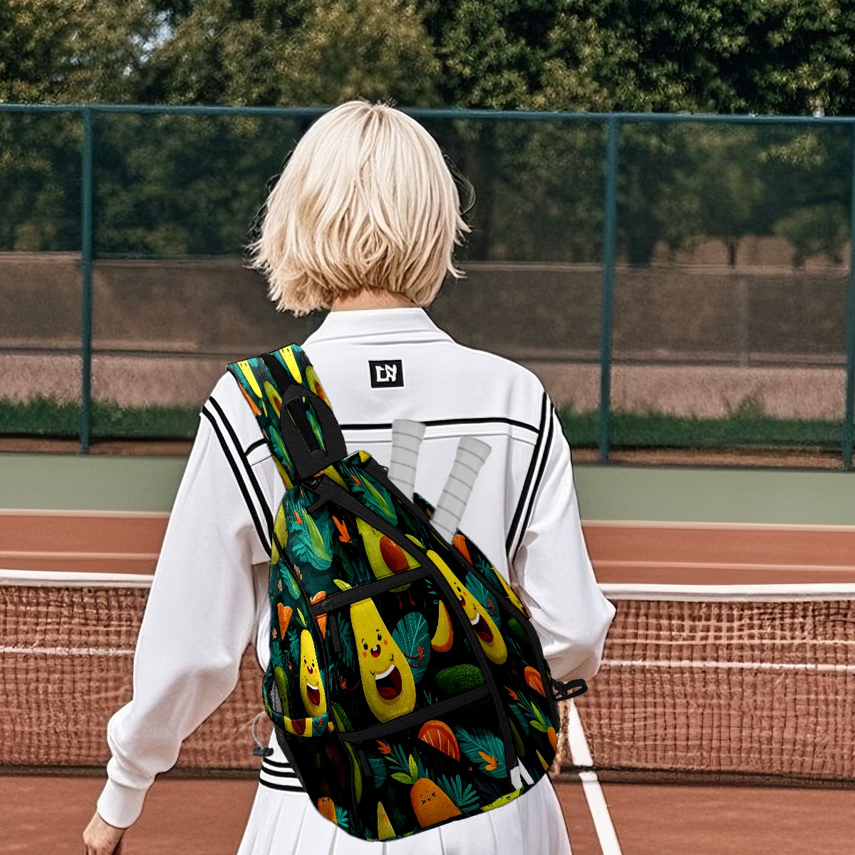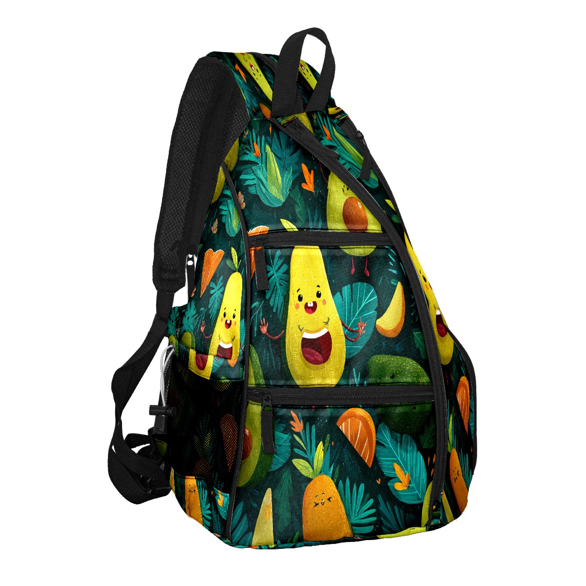 Print Pickleball Backpack Green Avocado Fruits | Padded 6-Paddle Compartment & Separate Shoe Bag | Multi-Pocket Sports & Gym Backpack for Tennis, Travel, Commute