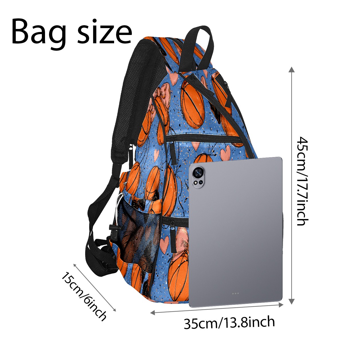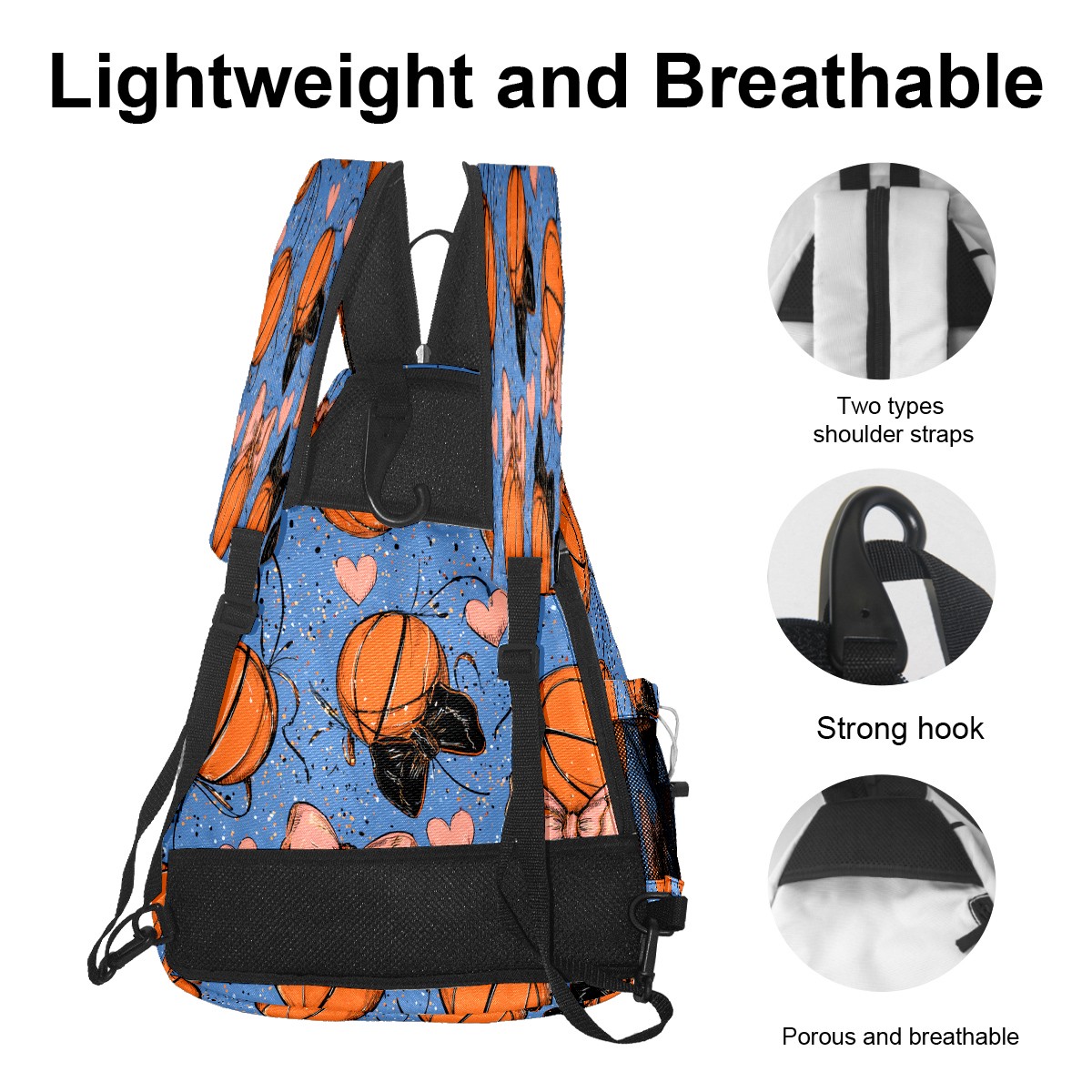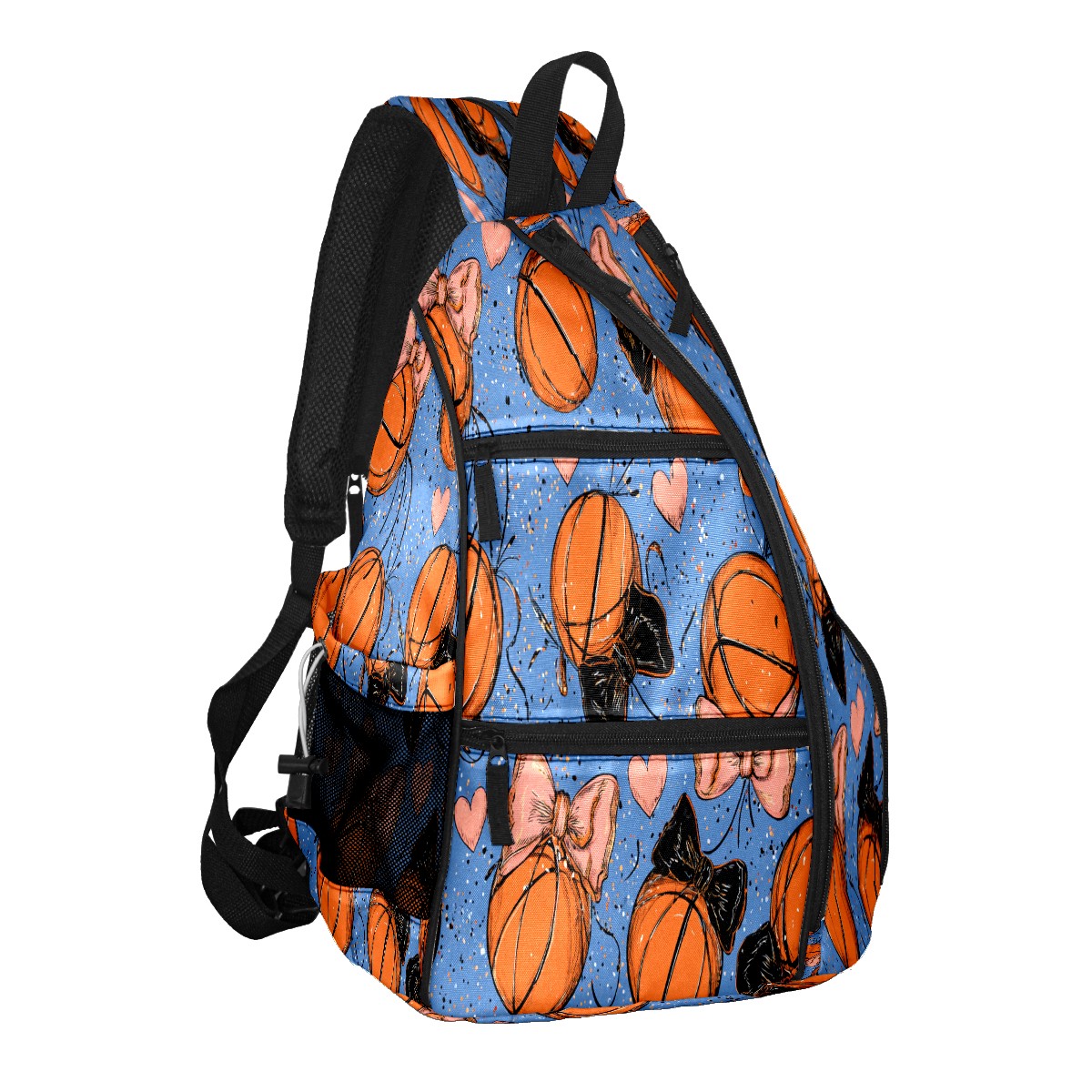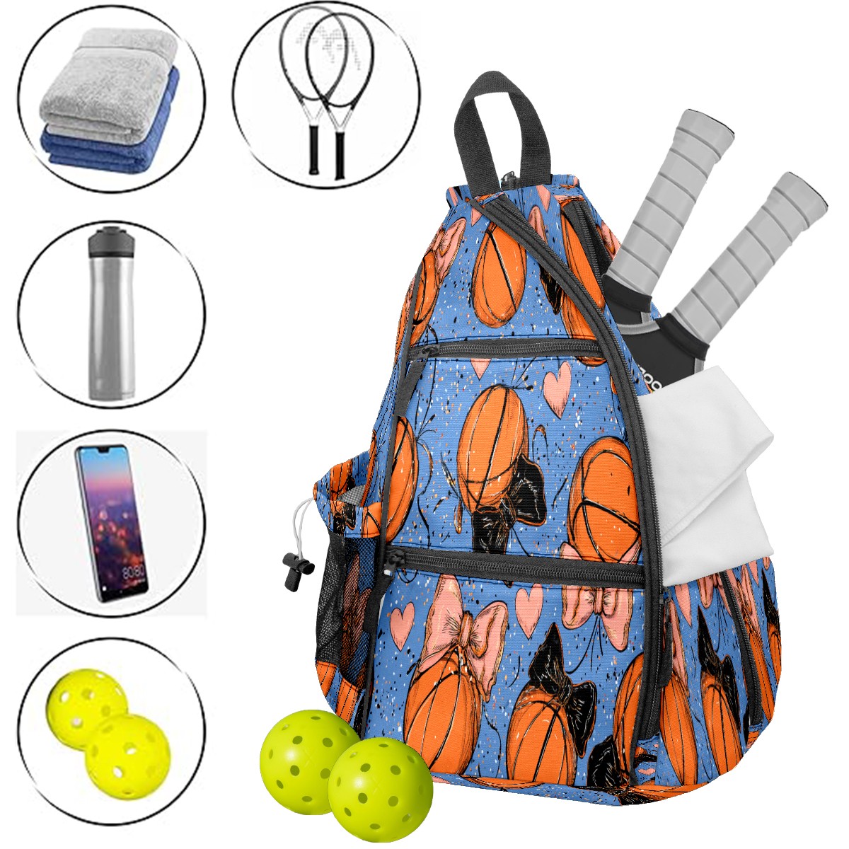 Print Pickleball Backpack Blue Basketballs Bows | Padded 6-Paddle Compartment & Separate Shoe Bag | Multi-Pocket Sports & Gym Backpack for Tennis, Travel, Commute