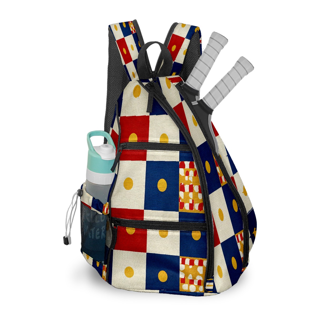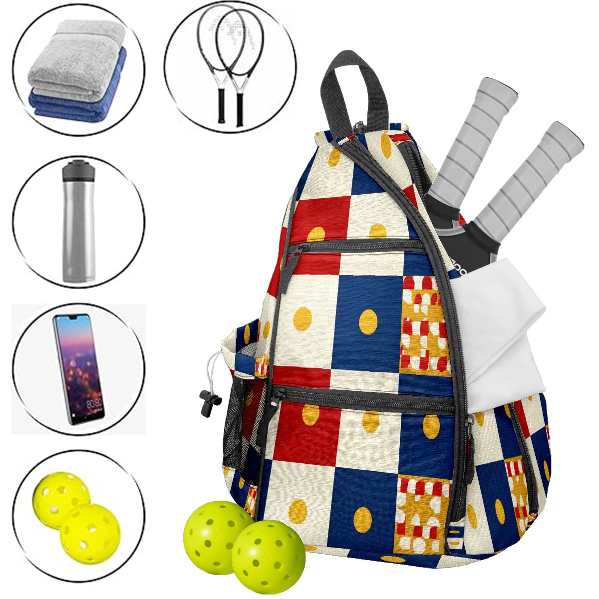 Print Pickleball Backpack Multicolor Checker | Padded 6-Paddle Compartment & Separate Shoe Bag | Multi-Pocket Sports & Gym Backpack for Tennis, Travel, Commute