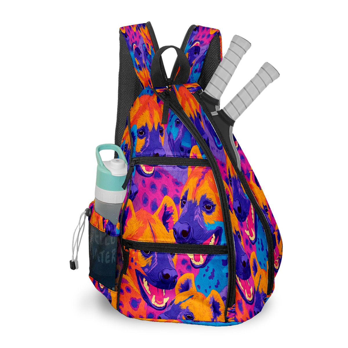 Print Pickleball Backpack Orange Hyenas | Padded 6-Paddle Compartment & Separate Shoe Bag | Multi-Pocket Sports & Gym Backpack for Tennis, Travel, Commute