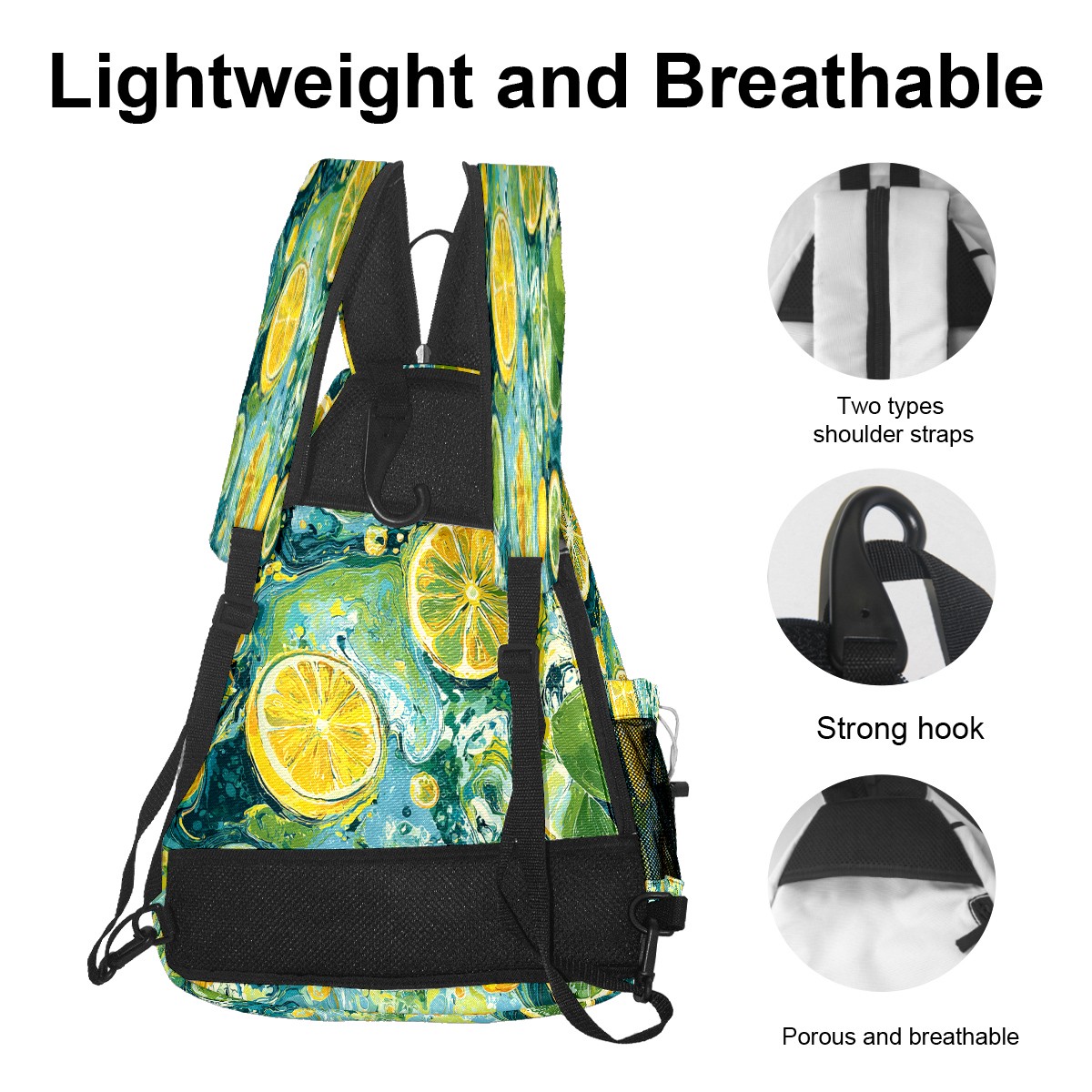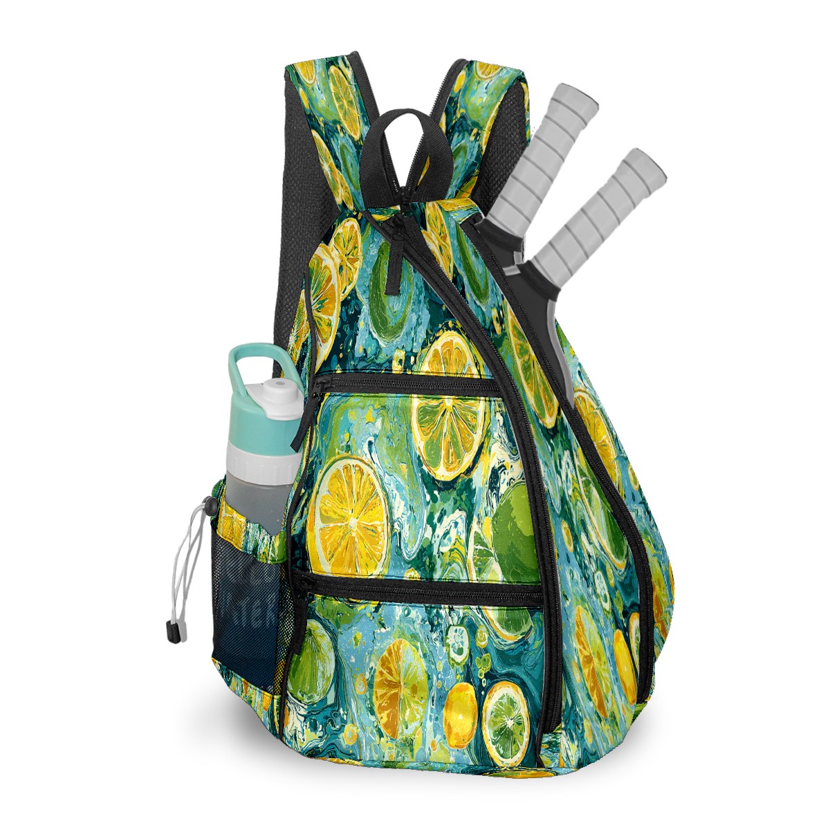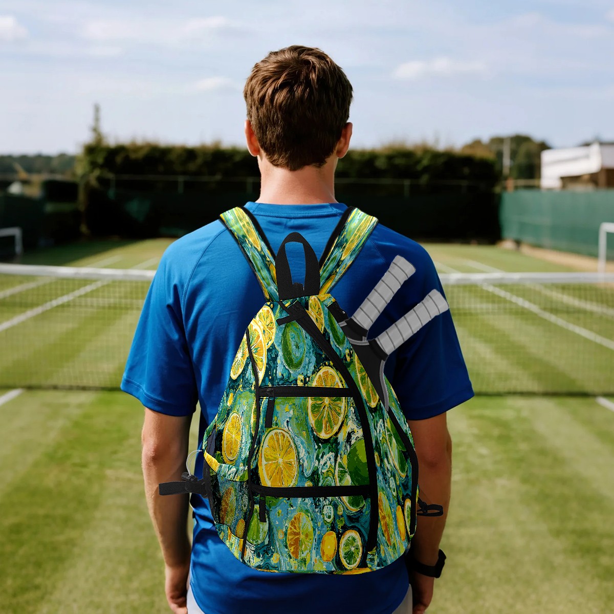 Print Pickleball Backpack Green Lemon Pattern | Padded 6-Paddle Compartment & Separate Shoe Bag | Multi-Pocket Sports & Gym Backpack for Tennis, Travel, Commute