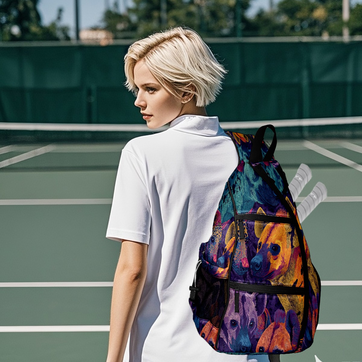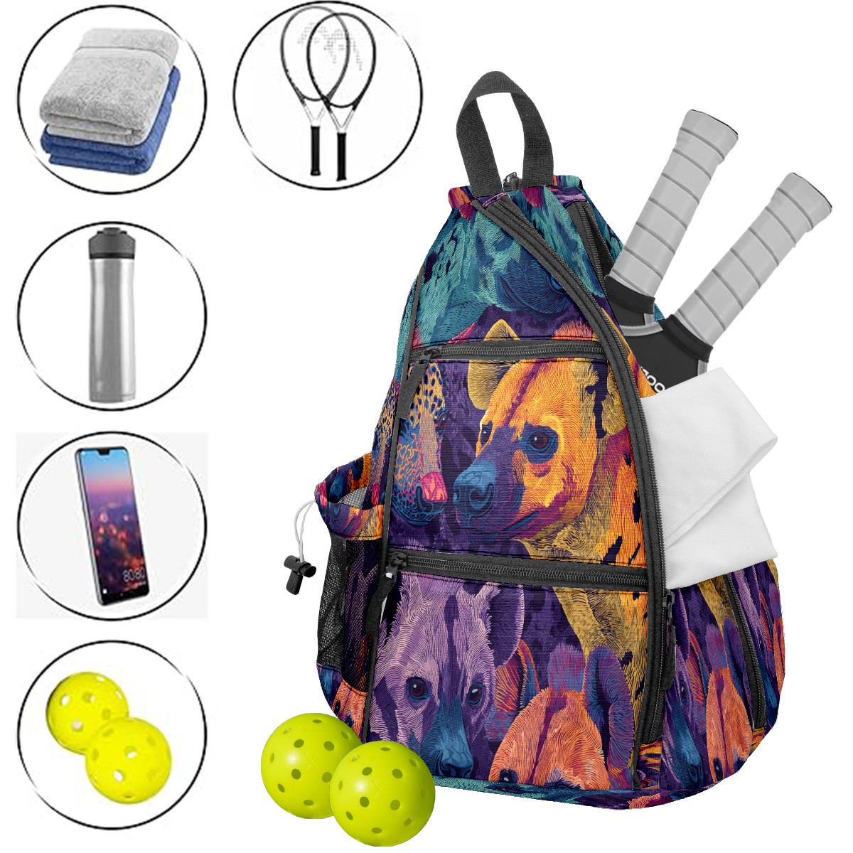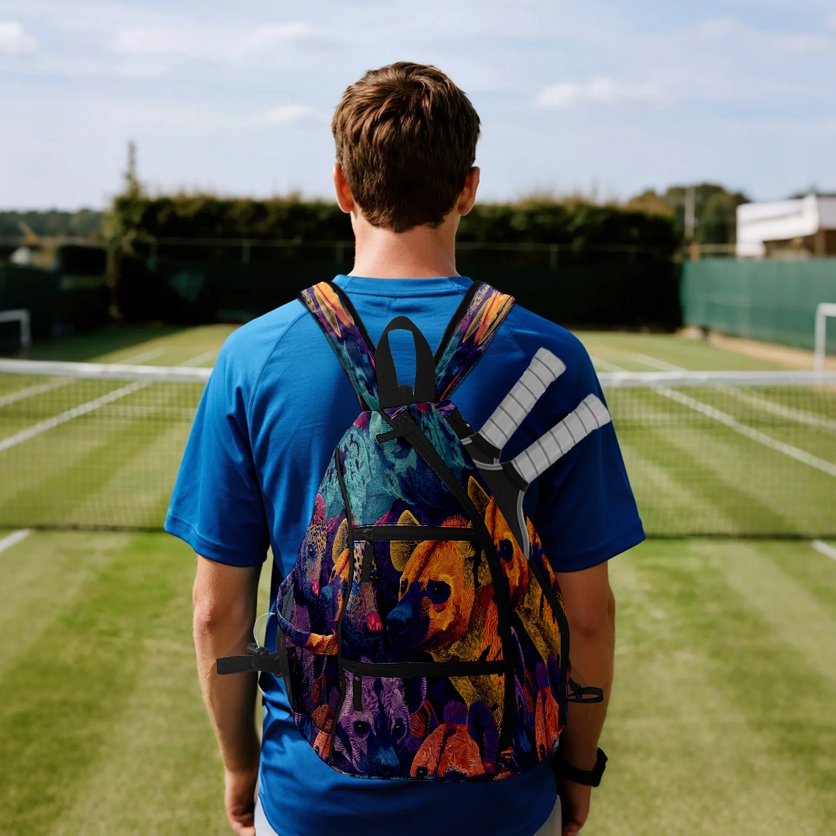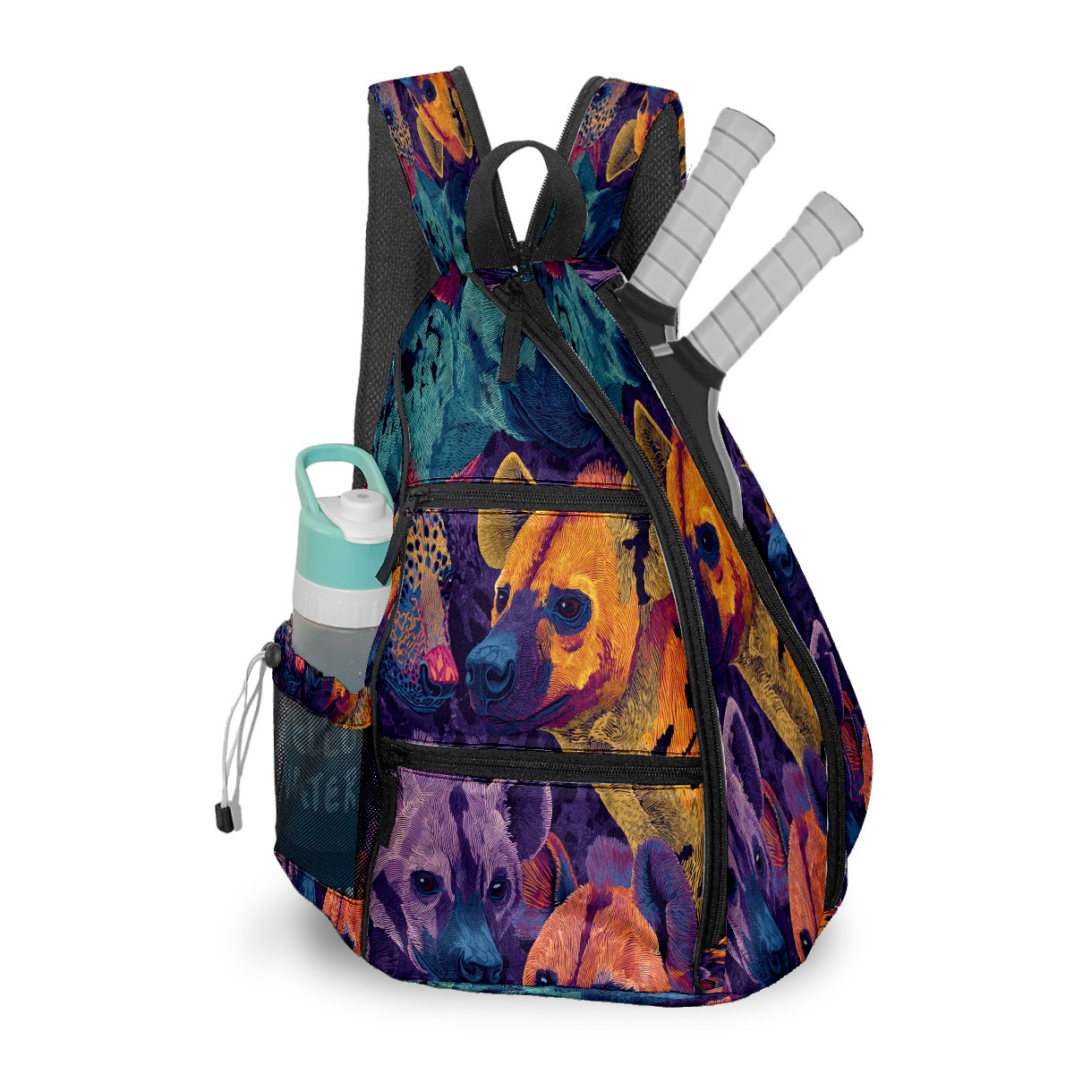 Print Pickleball Backpack Blue Hyenas | Padded 6-Paddle Compartment & Separate Shoe Bag | Multi-Pocket Sports & Gym Backpack for Tennis, Travel, Commute