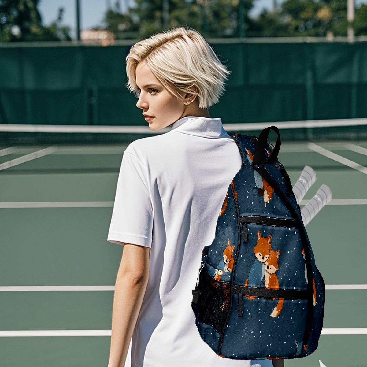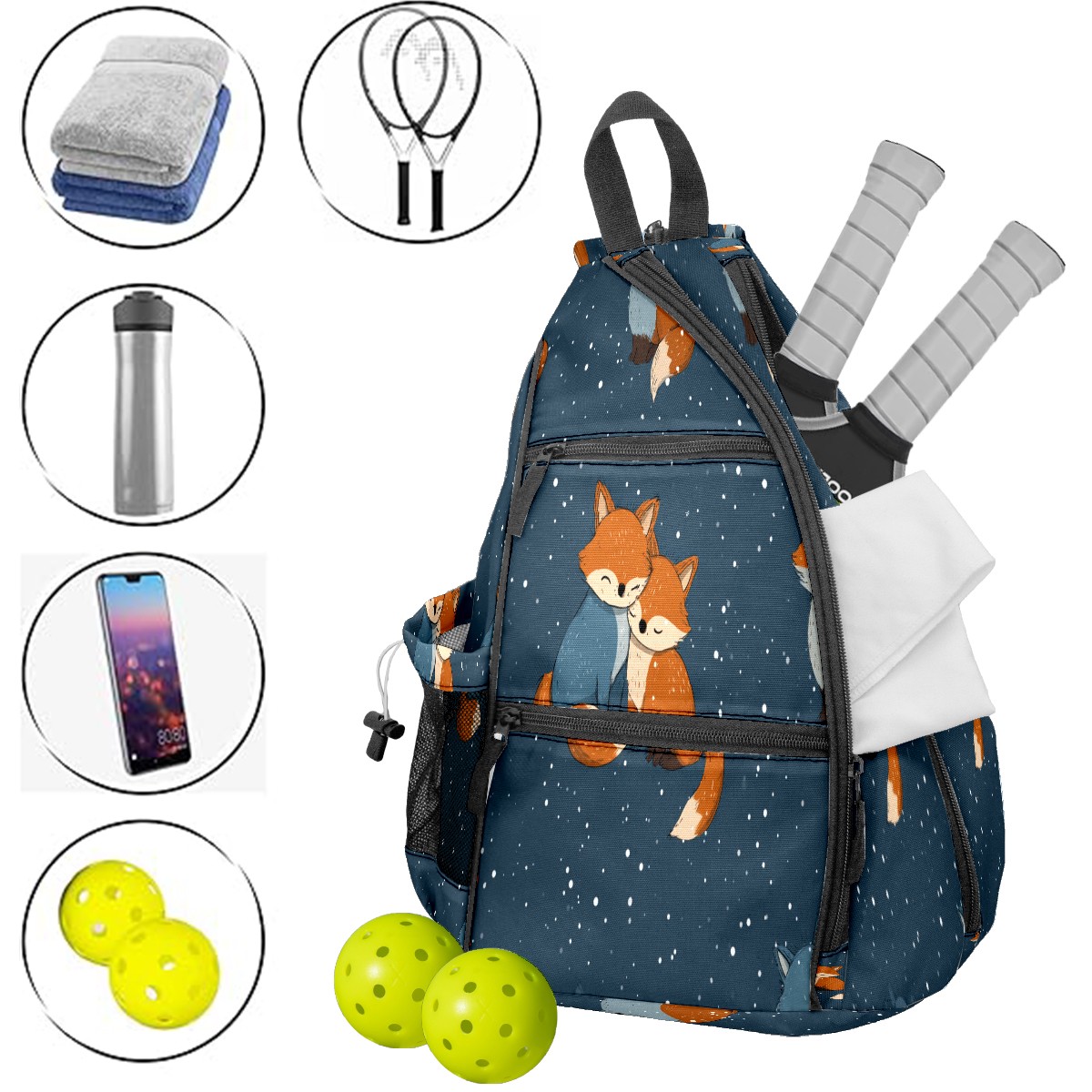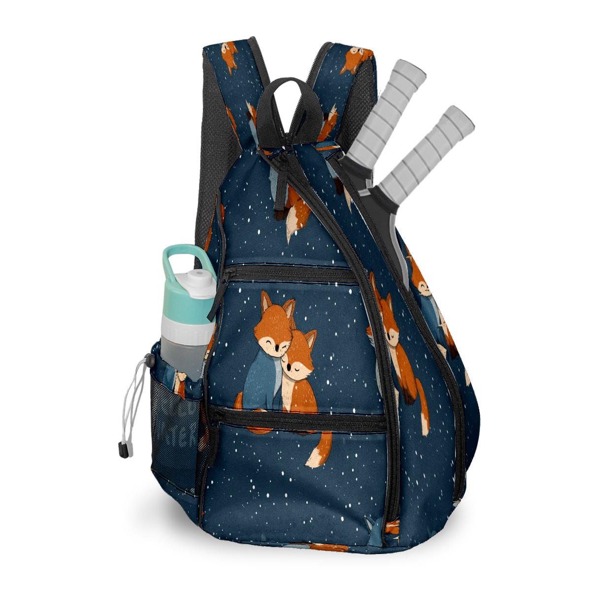 Print Pickleball Backpack Blue Foxes | Padded 6-Paddle Compartment & Separate Shoe Bag | Multi-Pocket Sports & Gym Backpack for Tennis, Travel, Commute