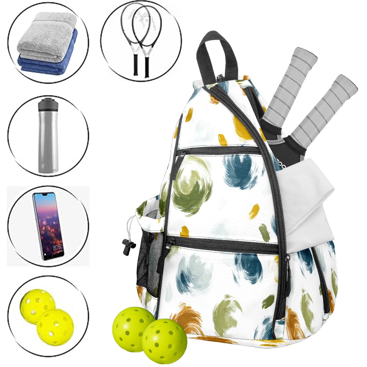 Print Pickleball Backpack Beige Color Dots | Padded 6-Paddle Compartment & Separate Shoe Bag | Multi-Pocket Sports & Gym Backpack for Tennis, Travel, Commute