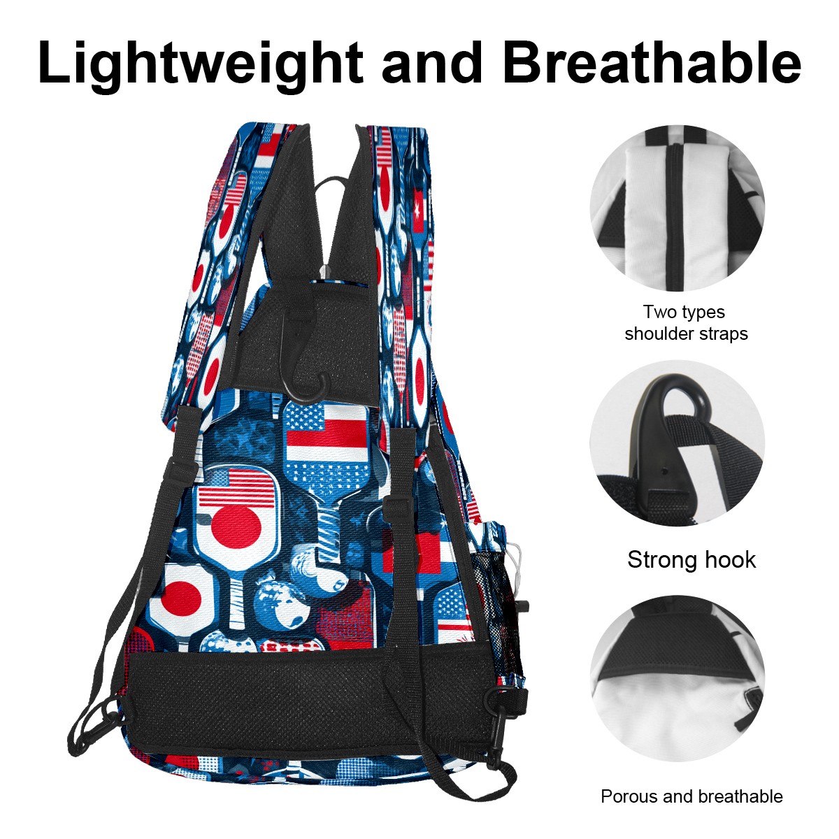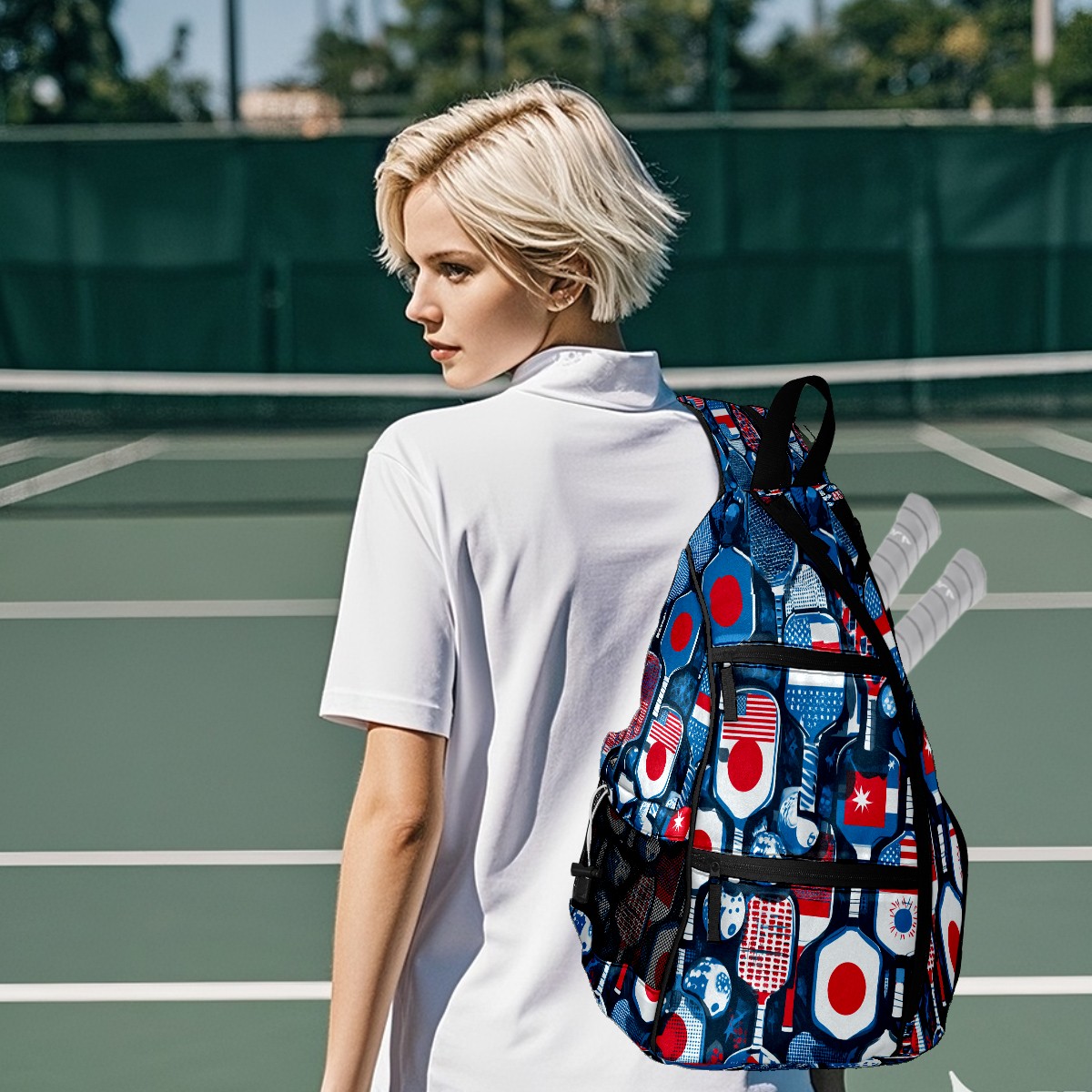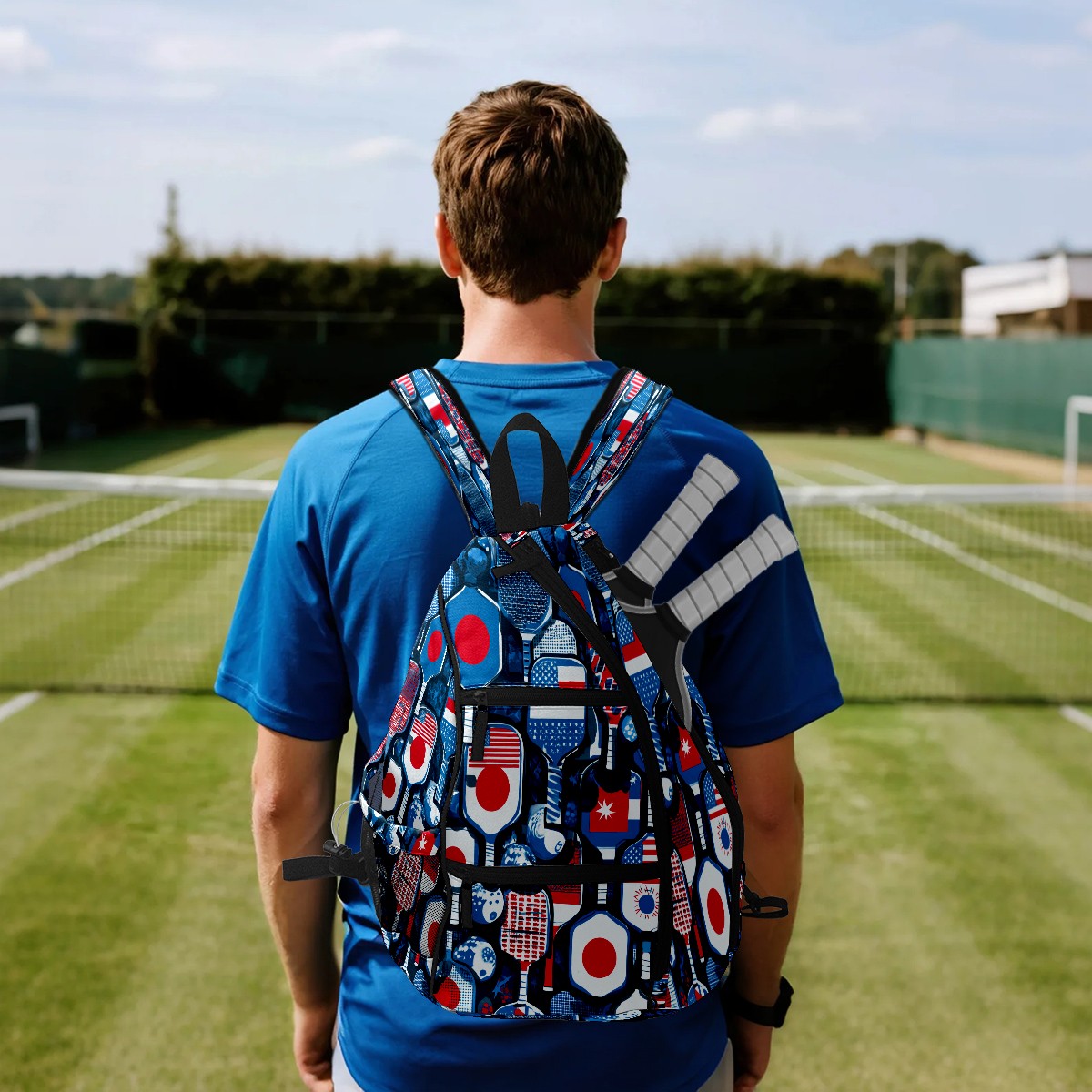 Print Pickleball Backpack Multicolor Rackets | Padded 6-Paddle Compartment & Separate Shoe Bag | Multi-Pocket Sports & Gym Backpack for Tennis, Travel, Commute