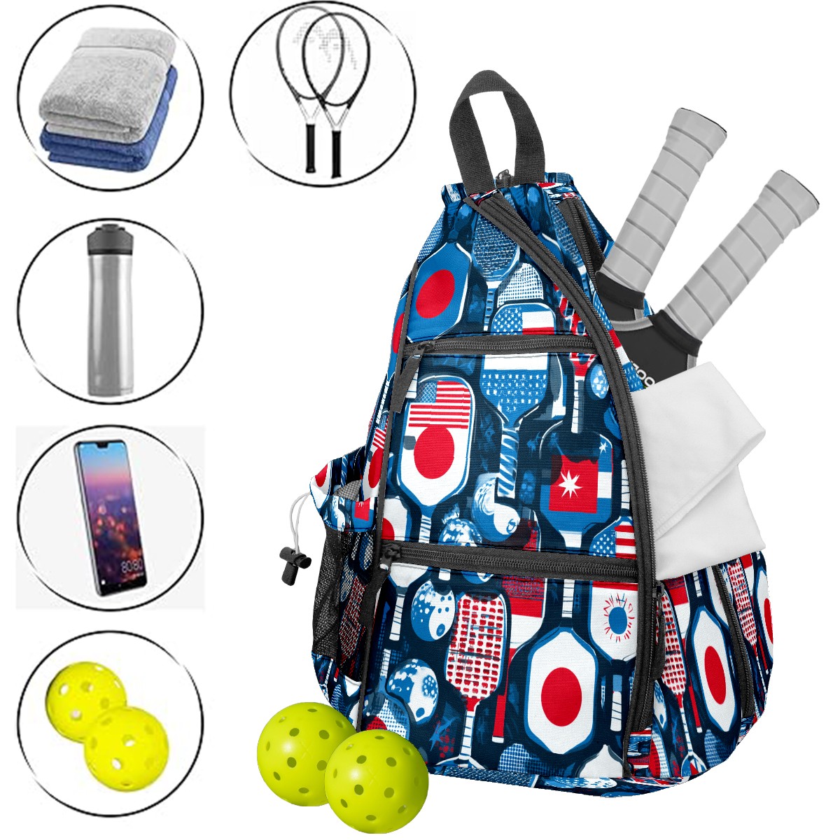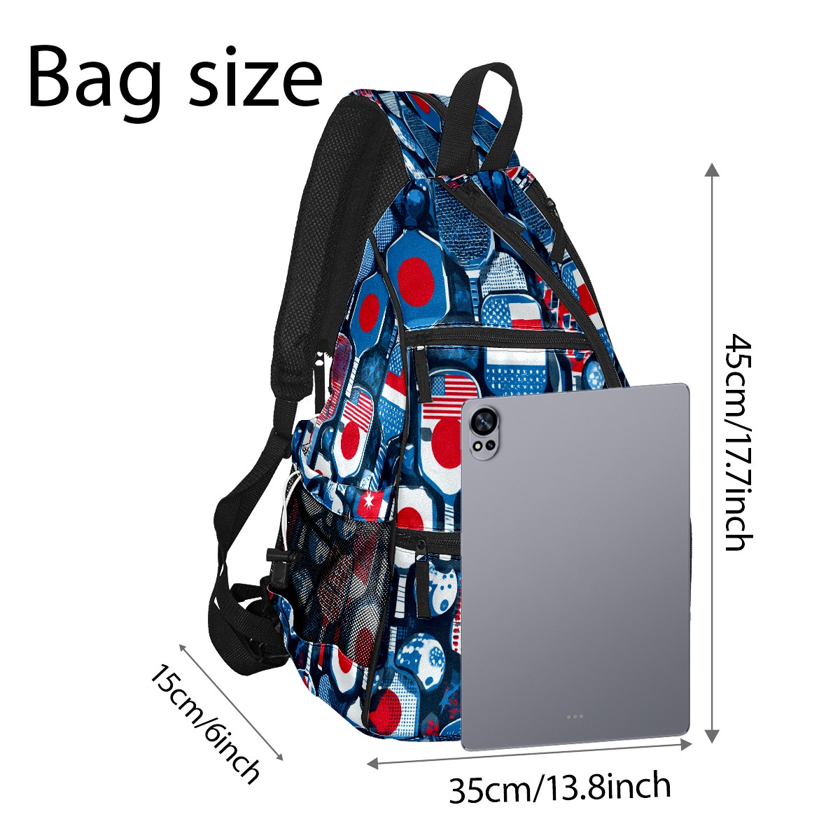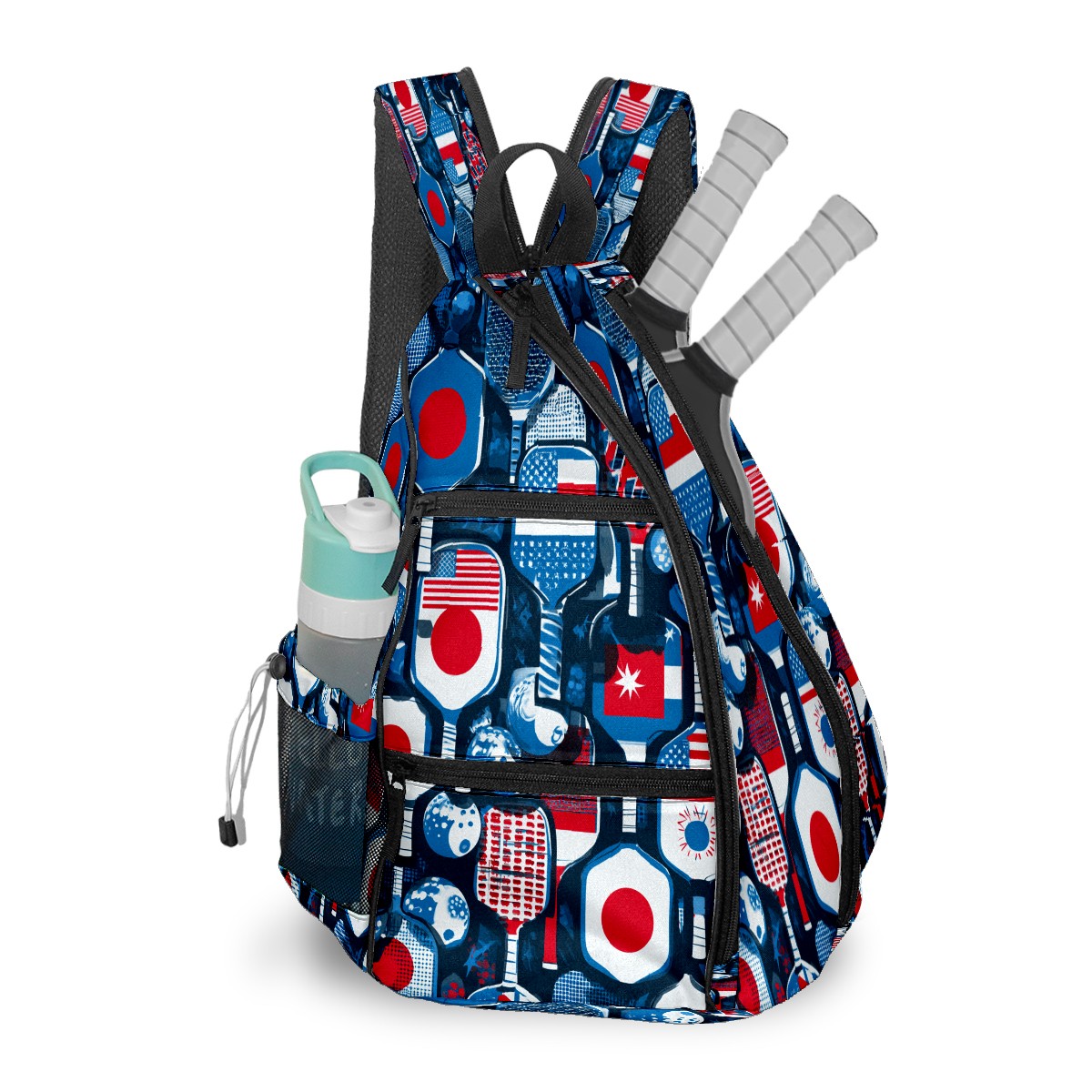 Print Pickleball Backpack Multicolor Rackets | Padded 6-Paddle Compartment & Separate Shoe Bag | Multi-Pocket Sports & Gym Backpack for Tennis, Travel, Commute