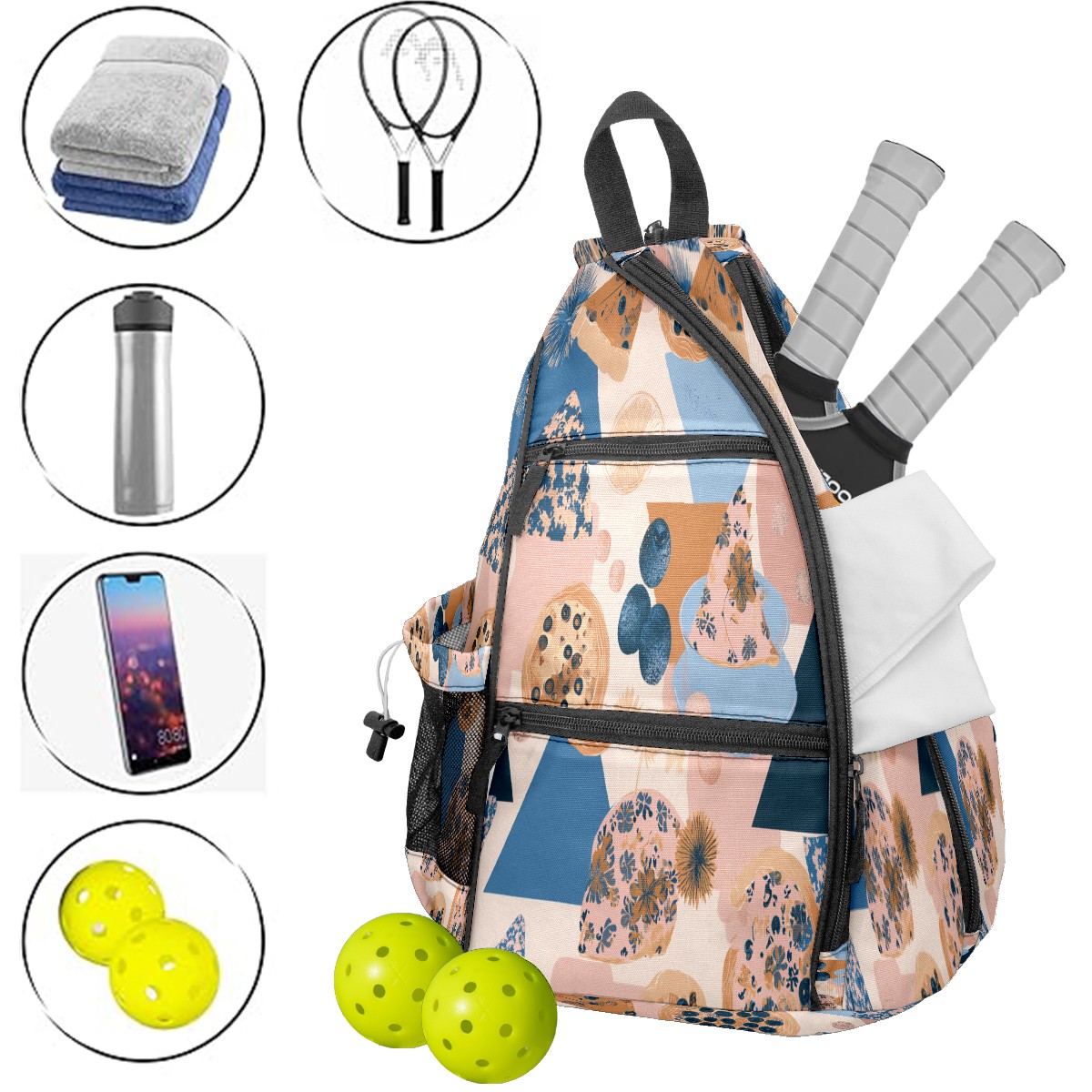 Print Pickleball Backpack Multicolor Geometric | Padded 6-Paddle Compartment & Separate Shoe Bag | Multi-Pocket Sports & Gym Backpack for Tennis, Travel, Commute