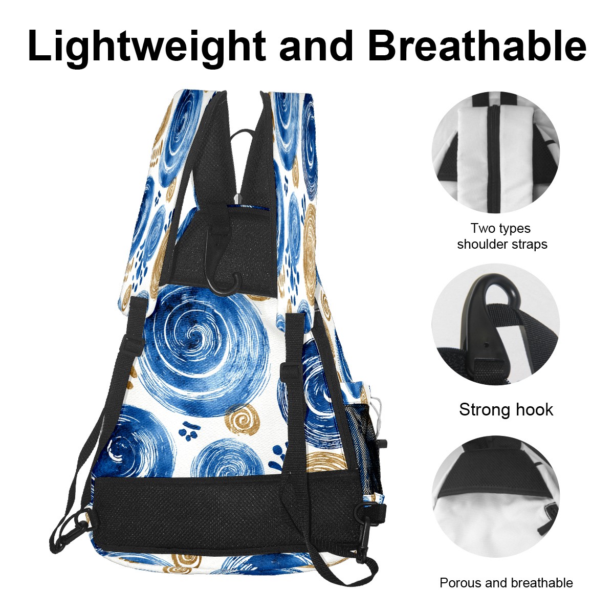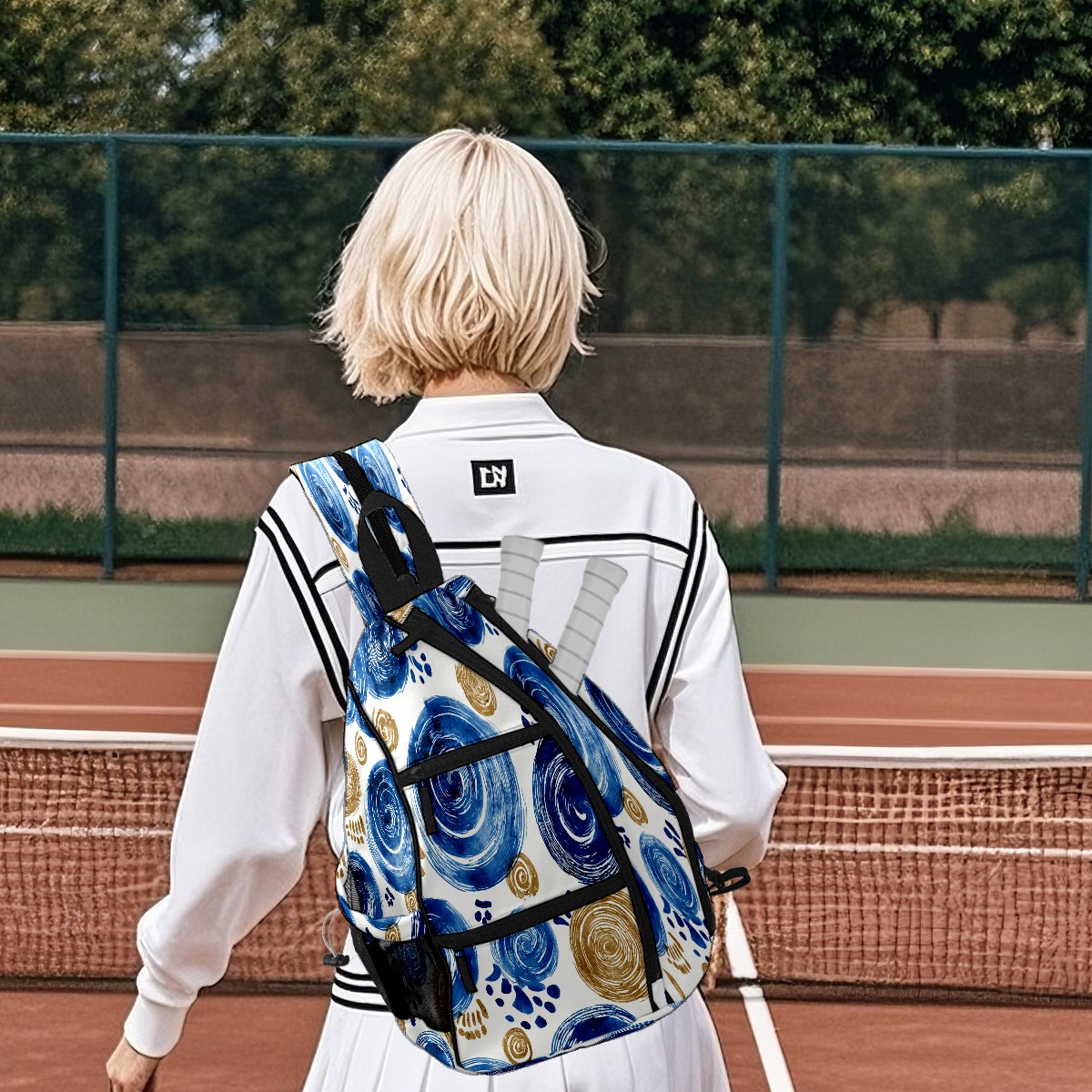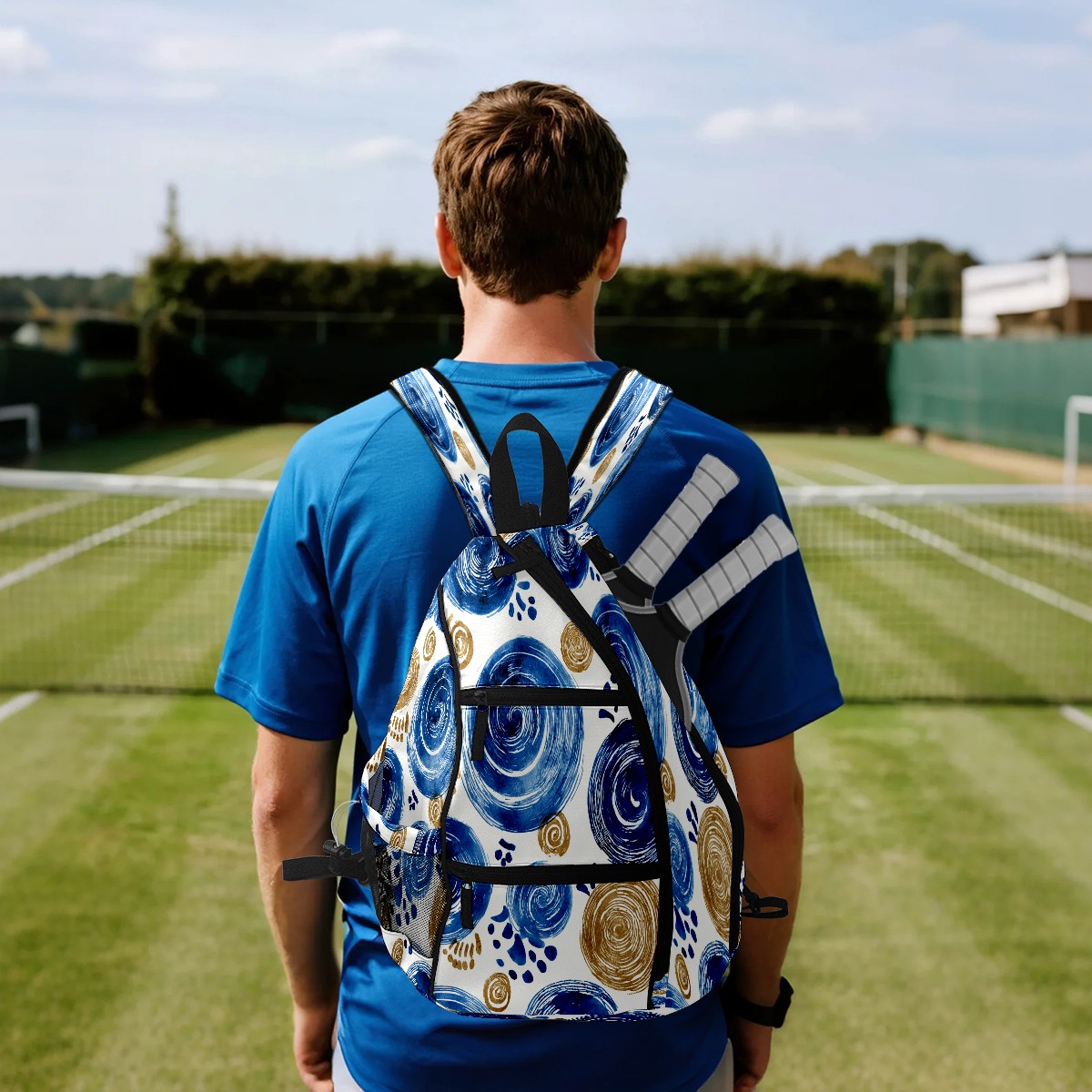 Print Pickleball Backpack Blue Swirls | Padded 6-Paddle Compartment & Separate Shoe Bag | Multi-Pocket Sports & Gym Backpack for Tennis, Travel, Commute