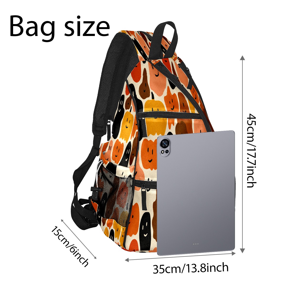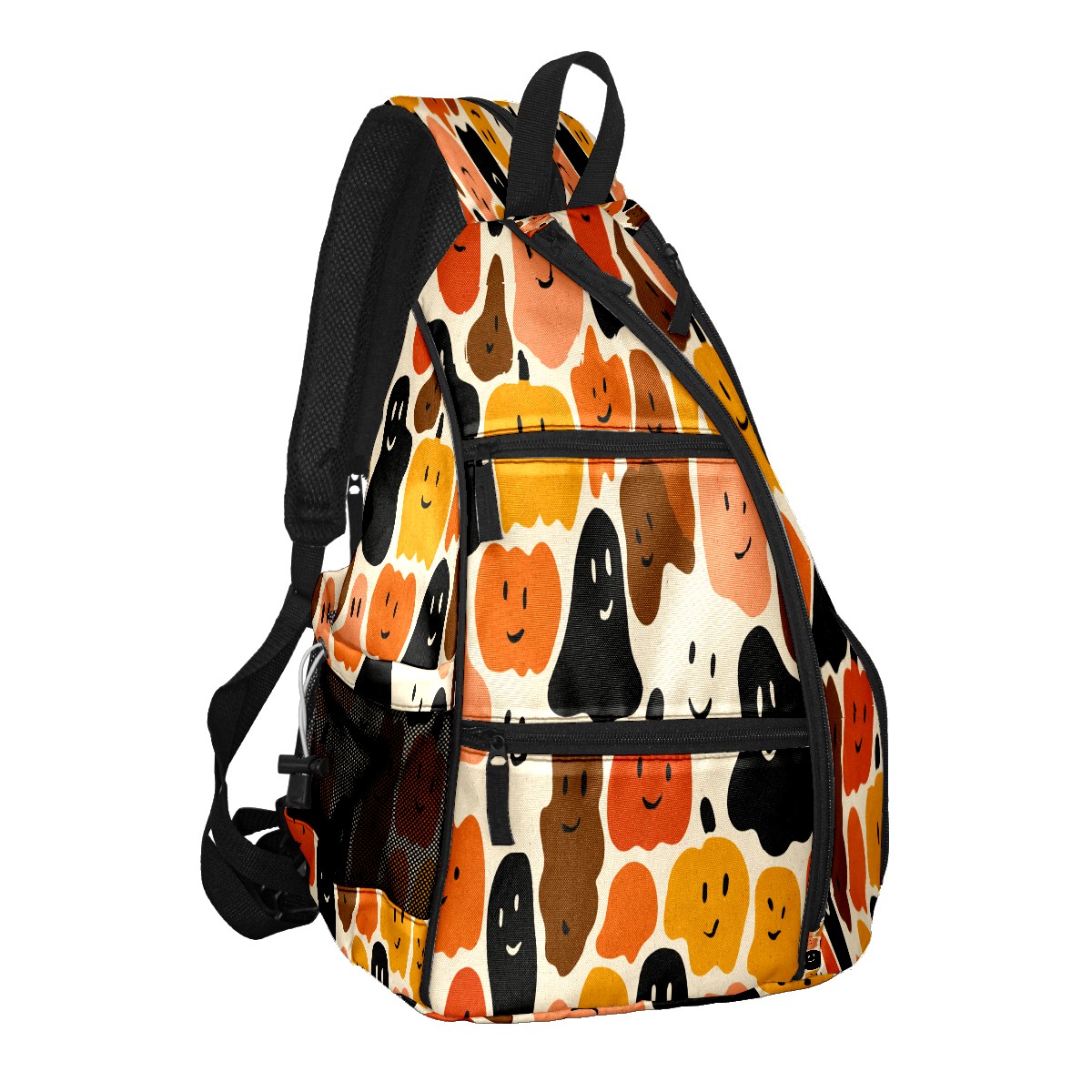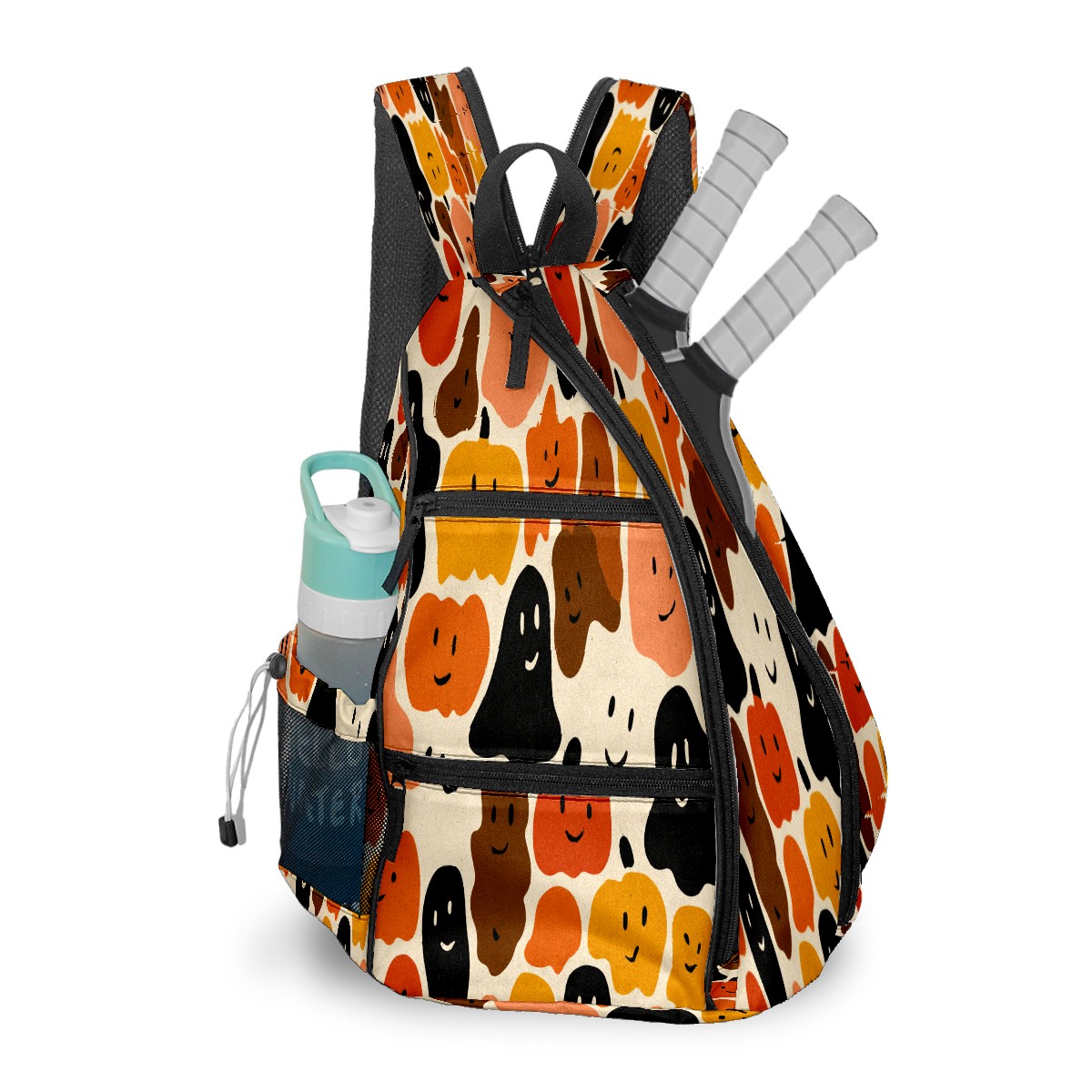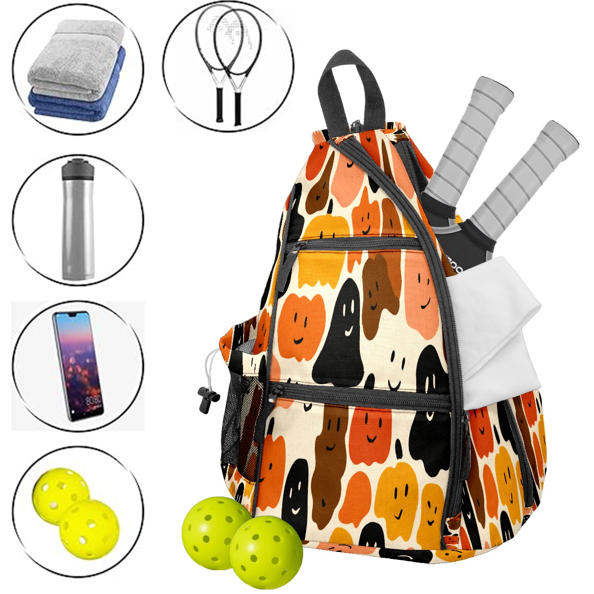 Print Pickleball Backpack Orange Halloween Faces | Padded 6-Paddle Compartment & Separate Shoe Bag | Multi-Pocket Sports & Gym Backpack for Tennis, Travel, Commute