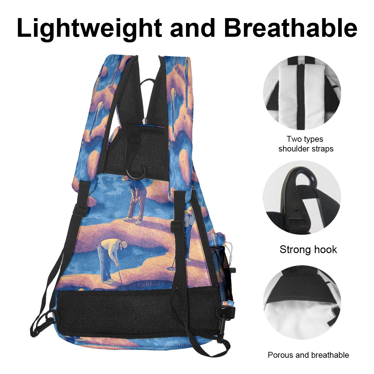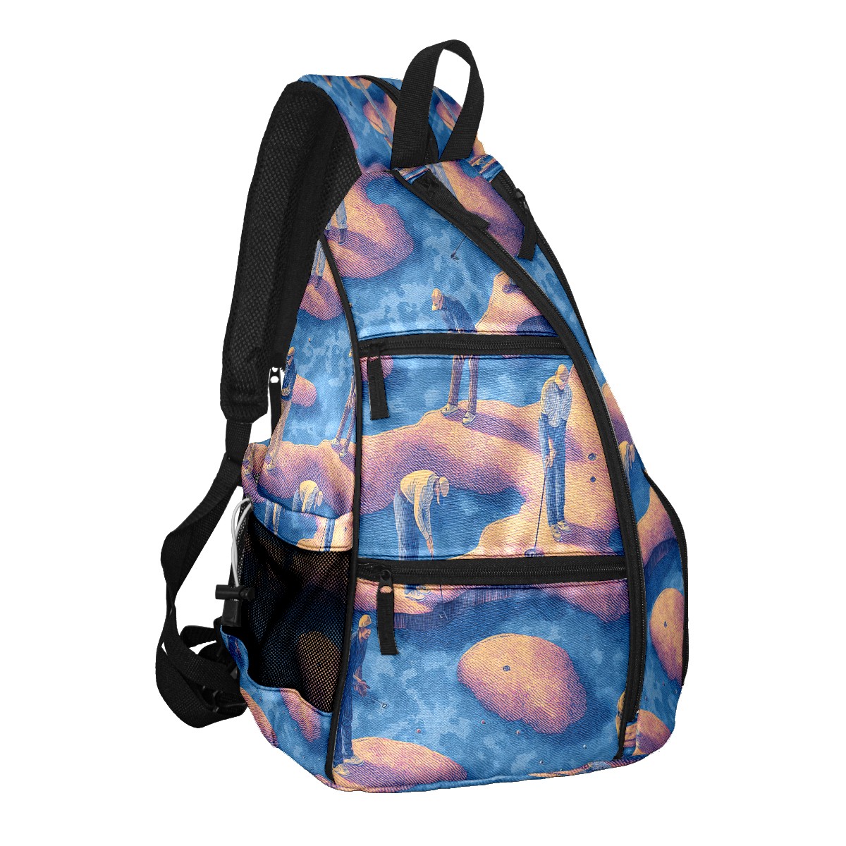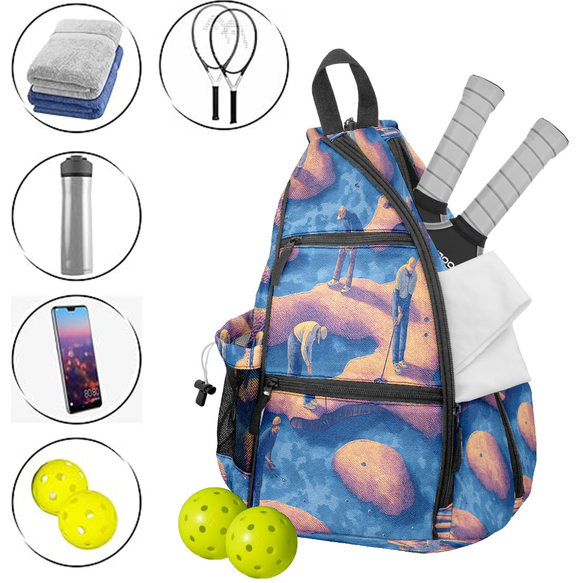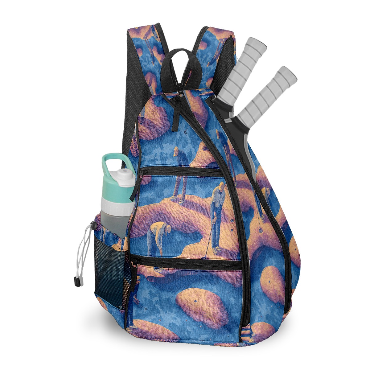 Print Pickleball Backpack Blue Golfers | Padded 6-Paddle Compartment & Separate Shoe Bag | Multi-Pocket Sports & Gym Backpack for Tennis, Travel, Commute