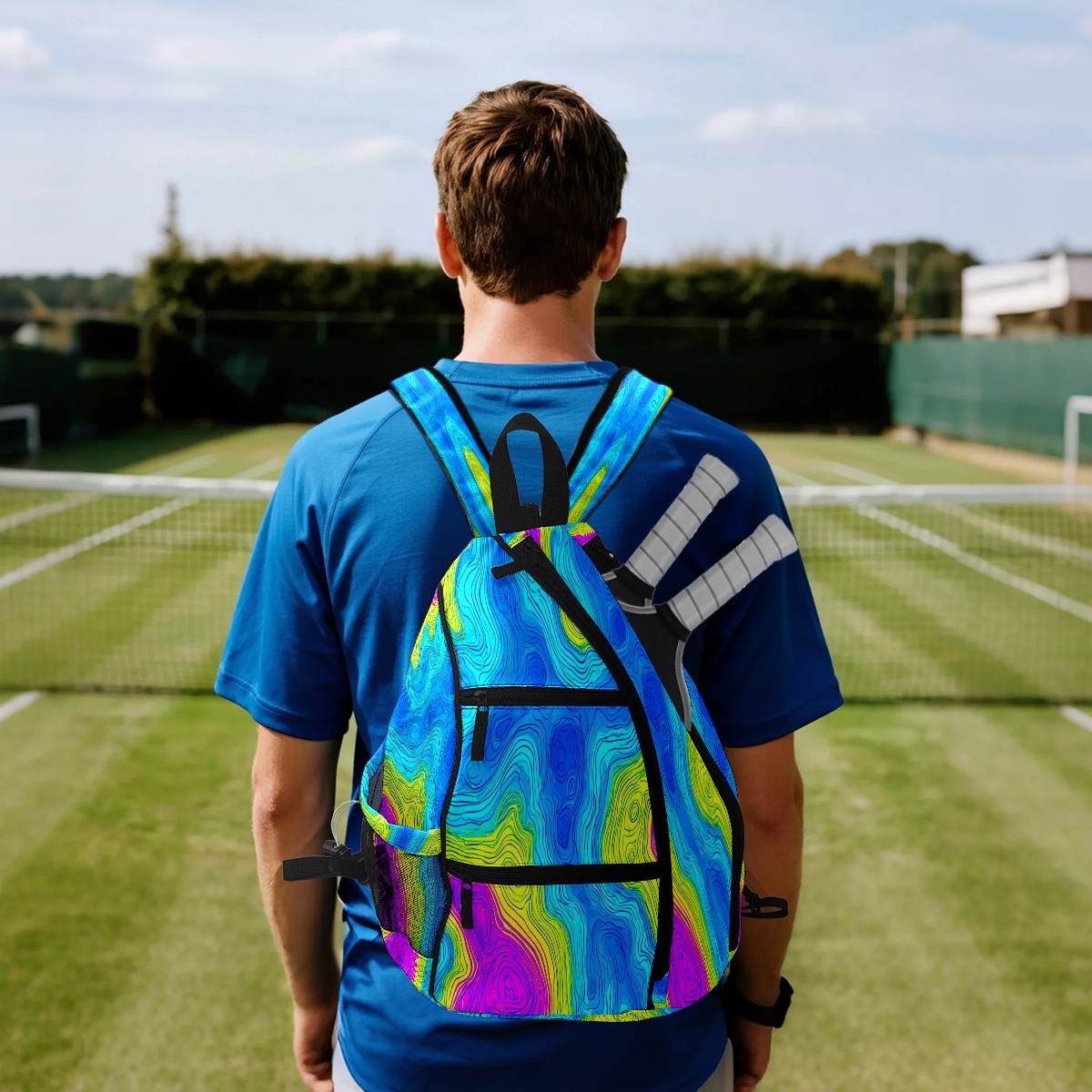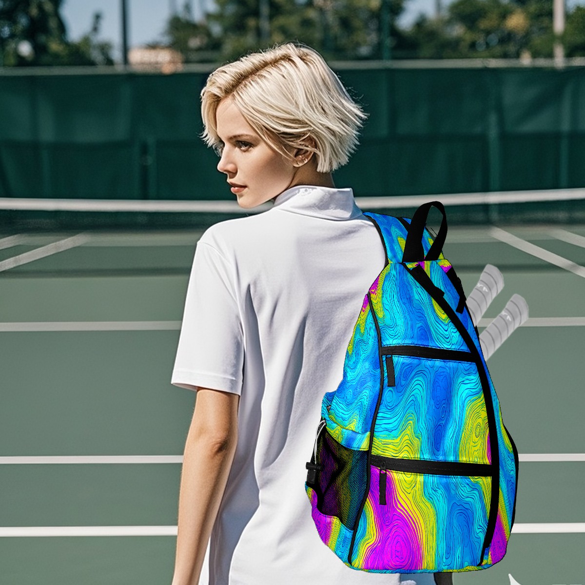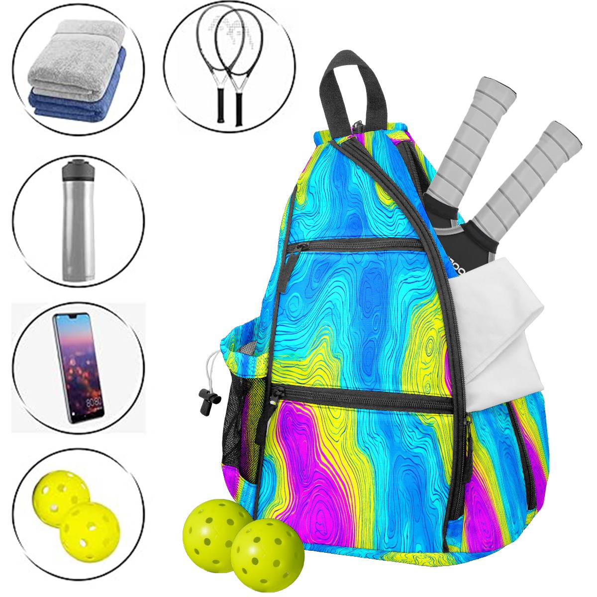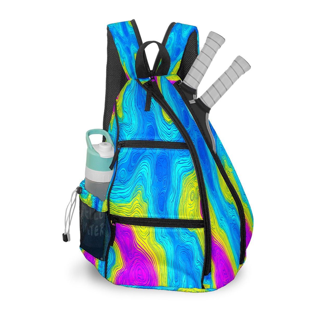 Print Pickleball Backpack Neon Color Fluid | Padded 6-Paddle Compartment & Separate Shoe Bag | Multi-Pocket Sports & Gym Backpack for Tennis, Travel, Commute