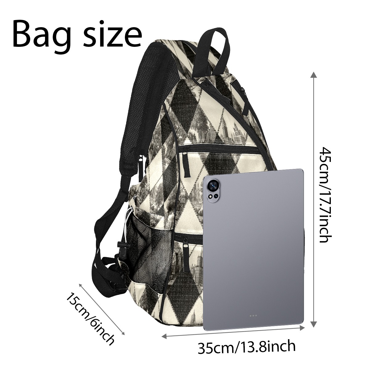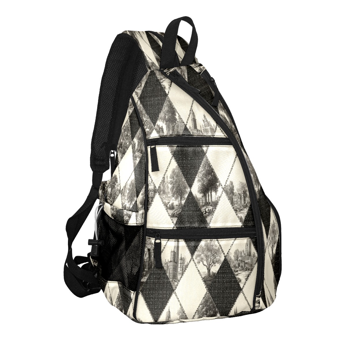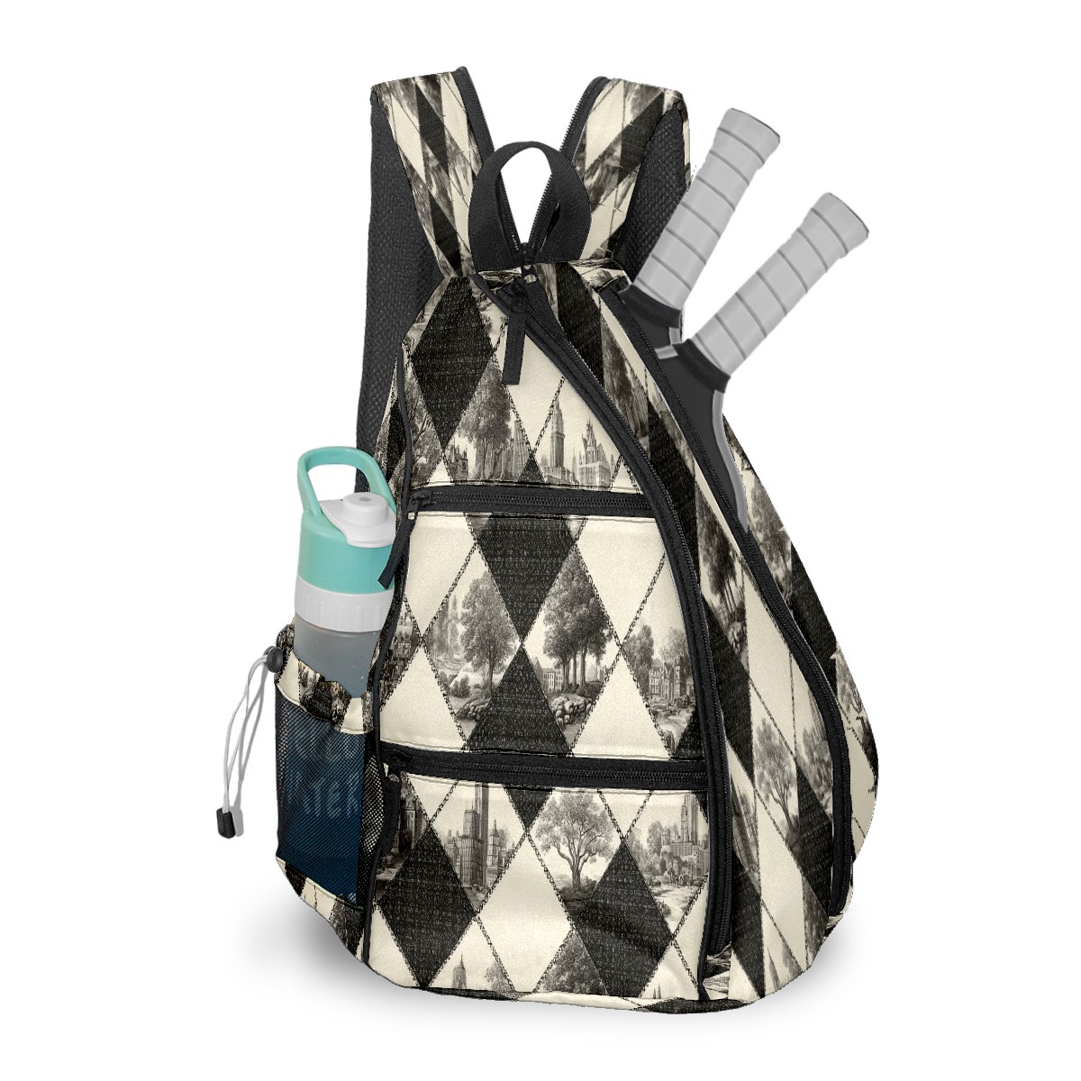 Print Pickleball Backpack Argyle BlackWhite | Padded 6-Paddle Compartment & Separate Shoe Bag | Multi-Pocket Sports & Gym Backpack for Tennis, Travel, Commute