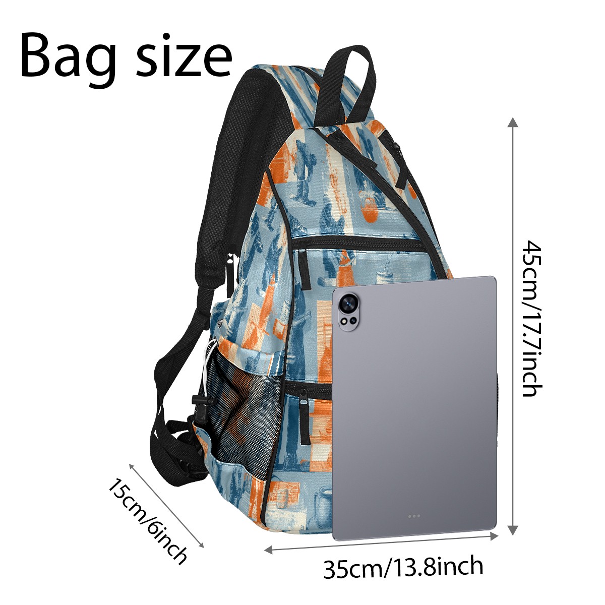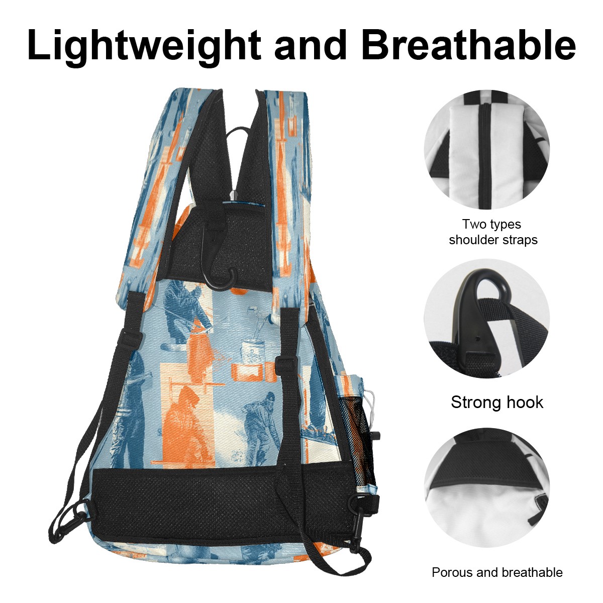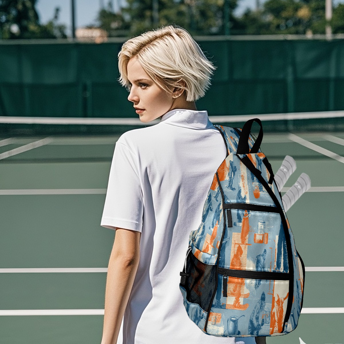 Print Pickleball Backpack Sports BlueOrange | Padded 6-Paddle Compartment & Separate Shoe Bag | Multi-Pocket Sports & Gym Backpack for Tennis, Travel, Commute