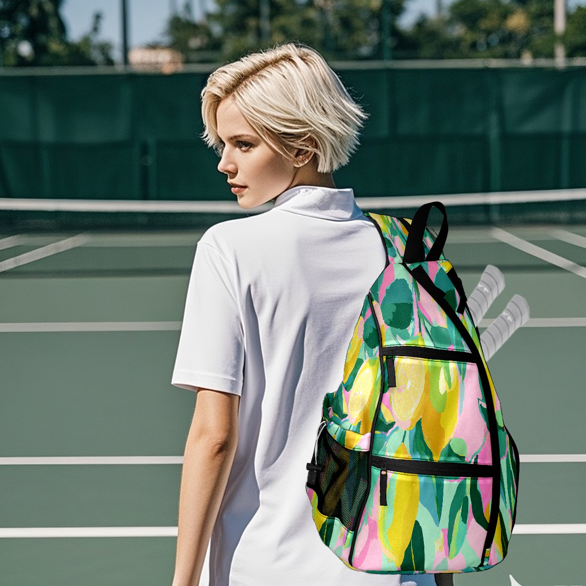 Print Pickleball Backpack Lemons PinkYellow | Padded 6-Paddle Compartment & Separate Shoe Bag | Multi-Pocket Sports & Gym Backpack for Tennis, Travel, Commute