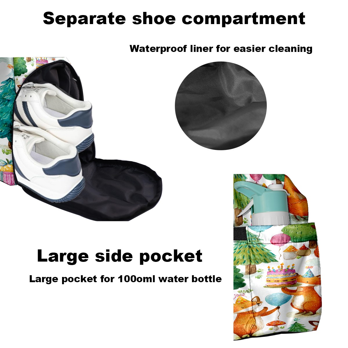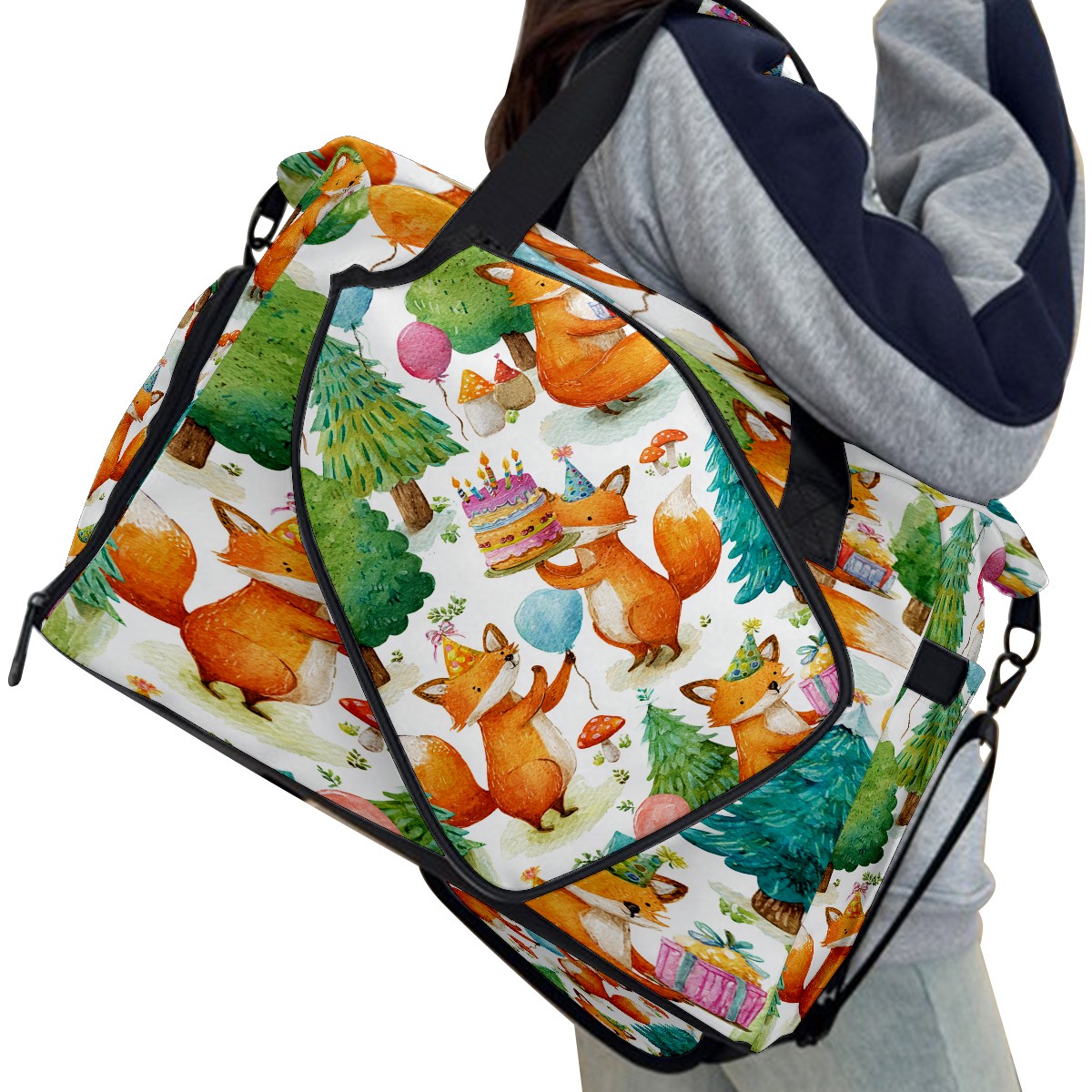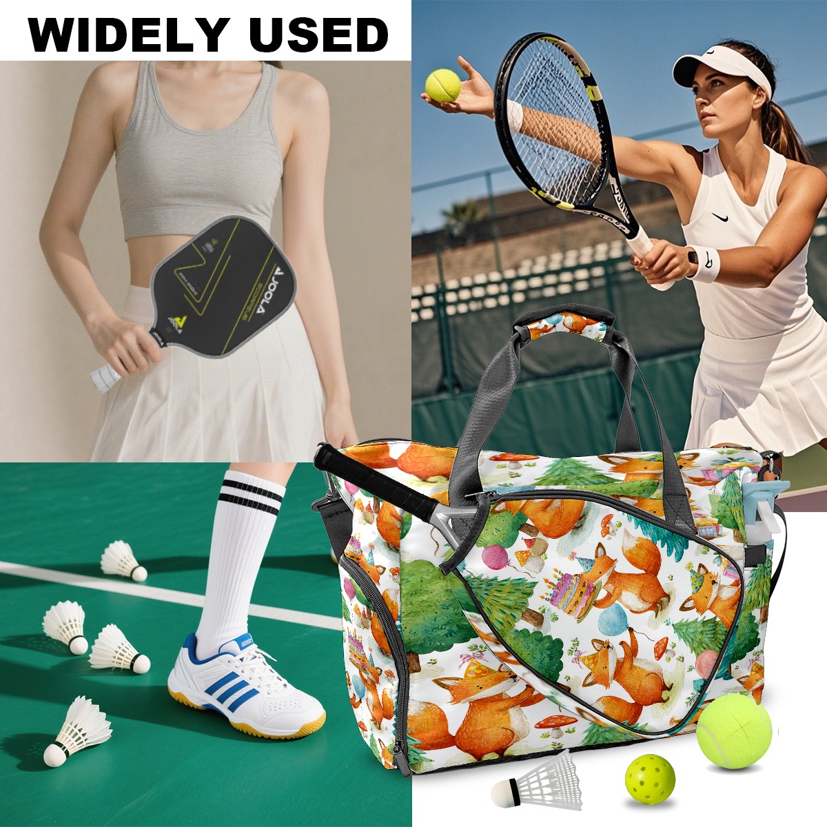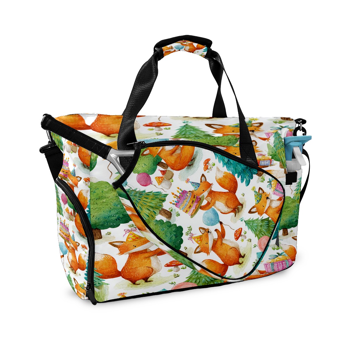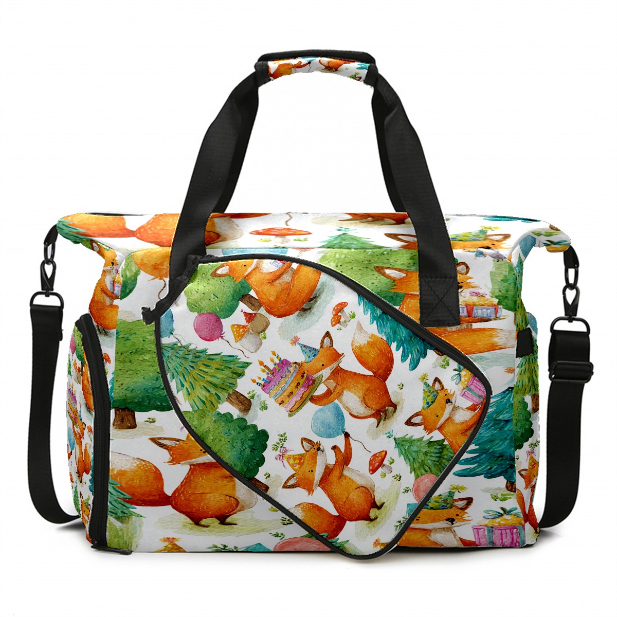 Women's Tennis Bag Large Capacity - Ventilated Shoe Compartment & Waterproof Wet Pocket, Multi-Functional Gym Duffel Bag for Tennis, Yoga, Travel (Beige Fox Forest)