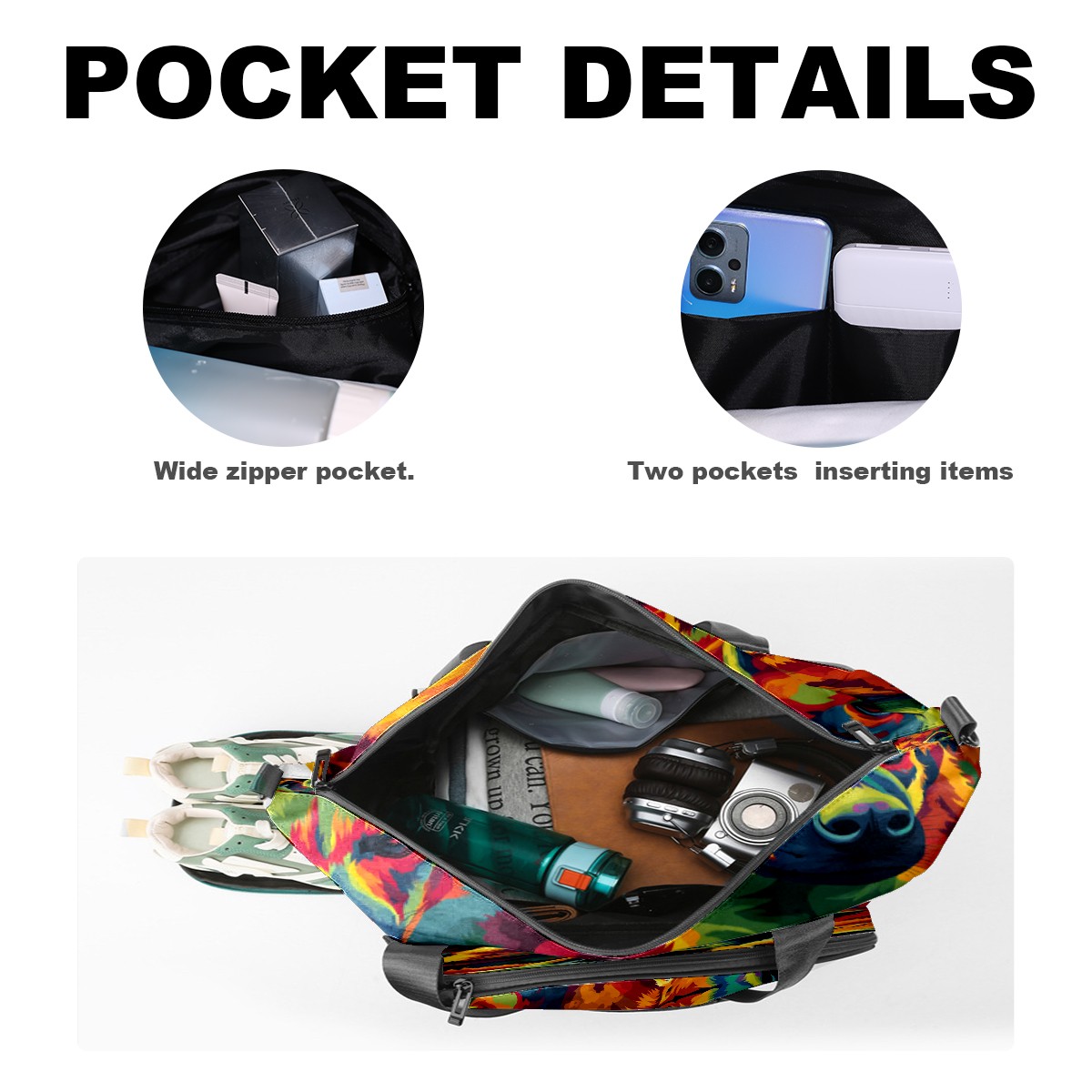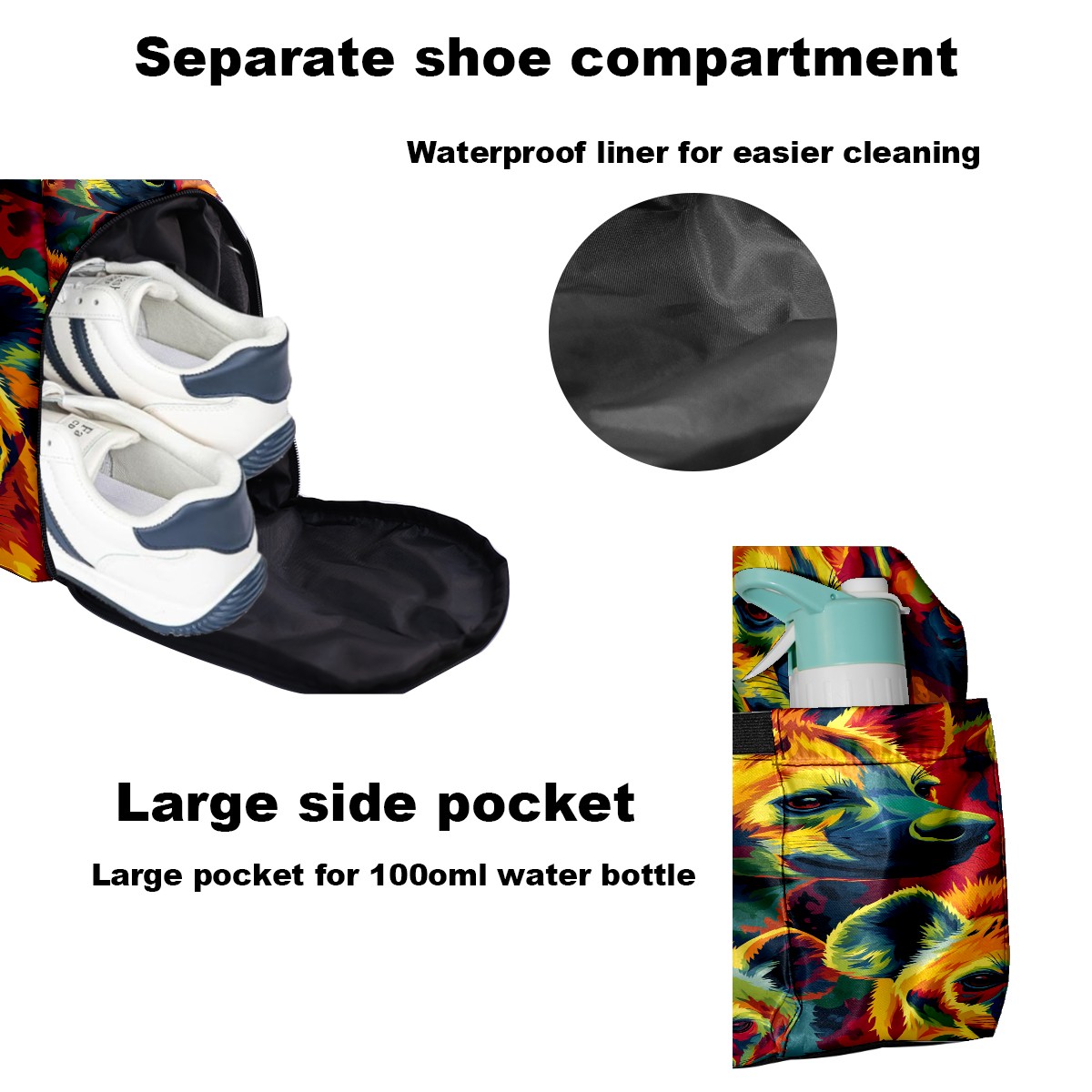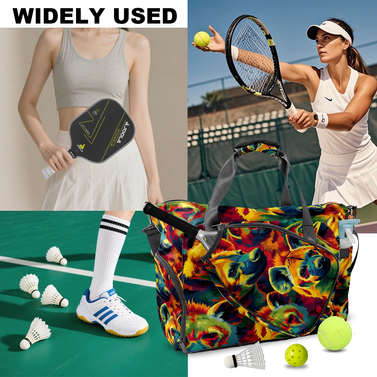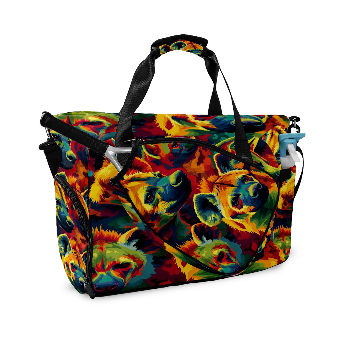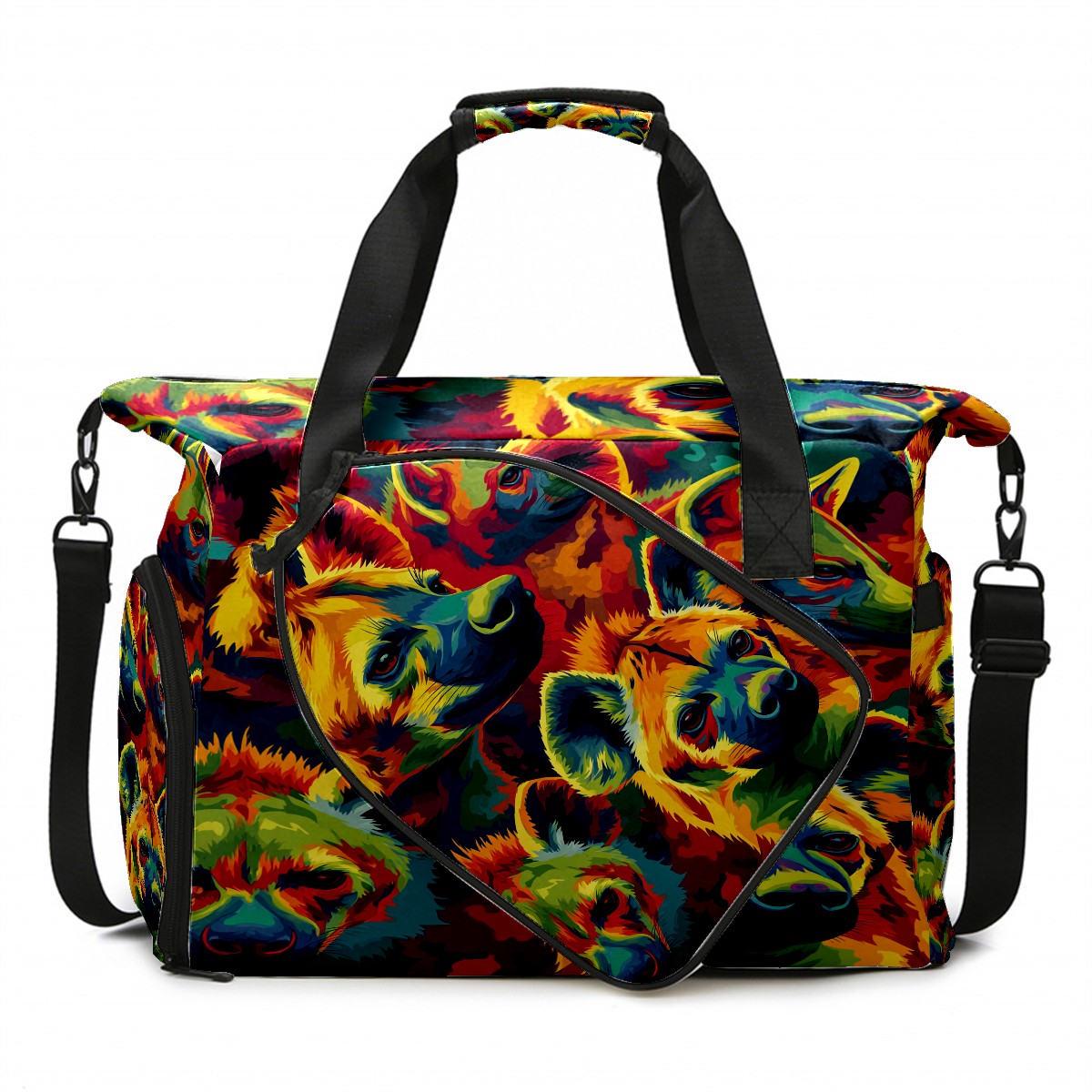Women's Tennis Bag Large Capacity - Ventilated Shoe Compartment & Waterproof Wet Pocket, Multi-Functional Gym Duffel Bag for Tennis, Yoga, Travel (Multicolor Hyenas)