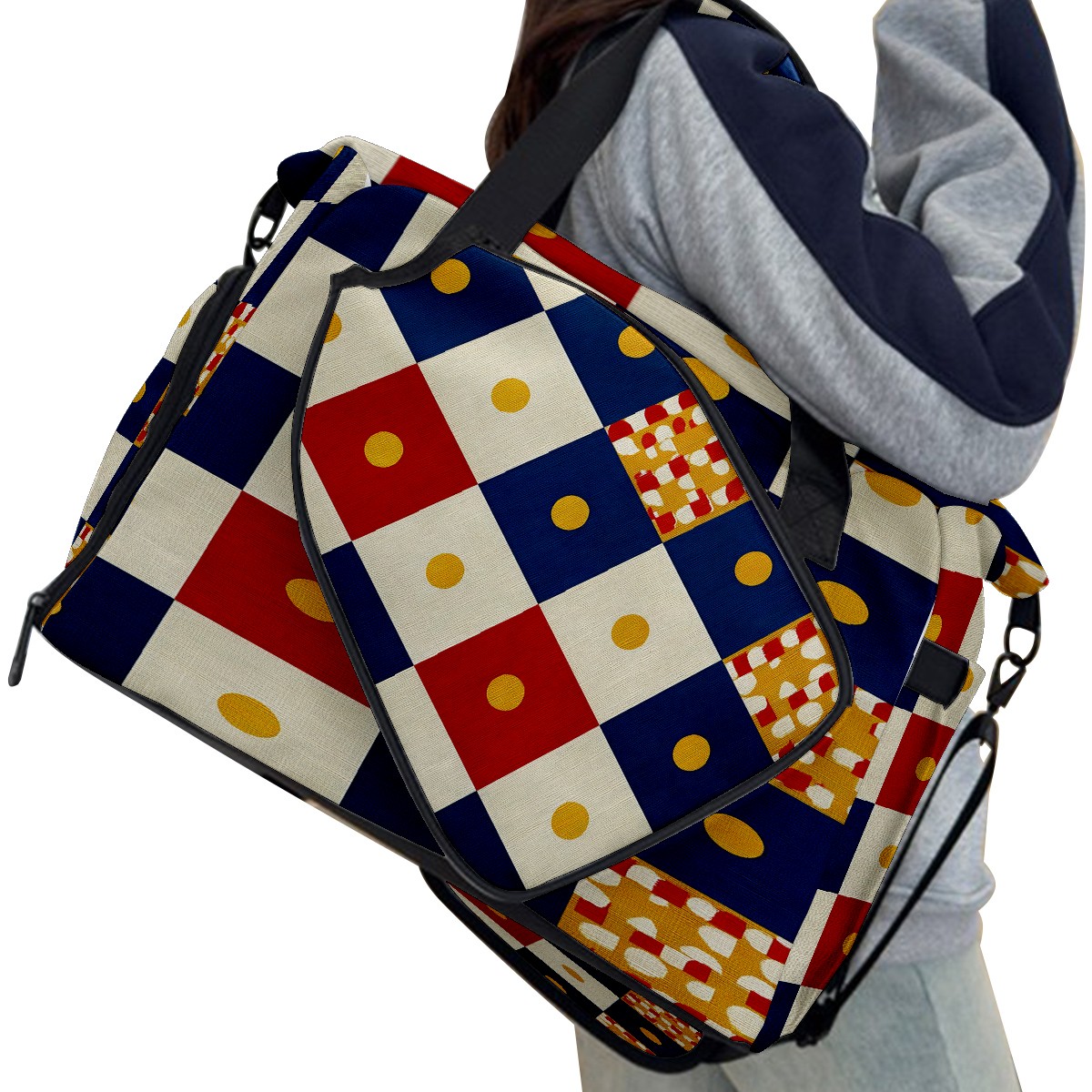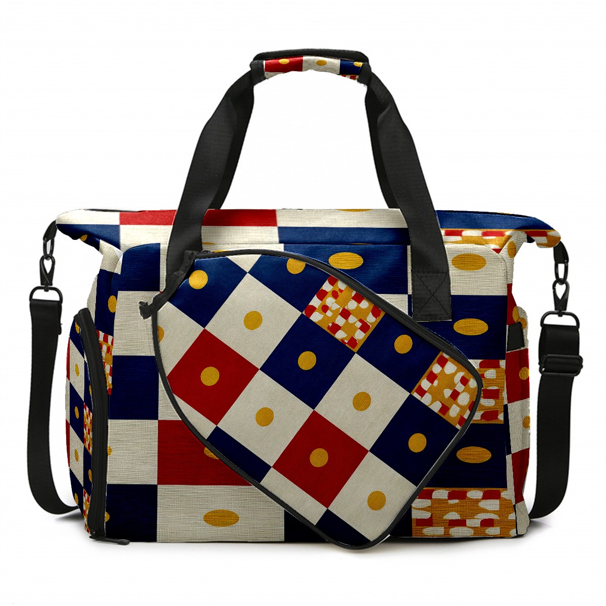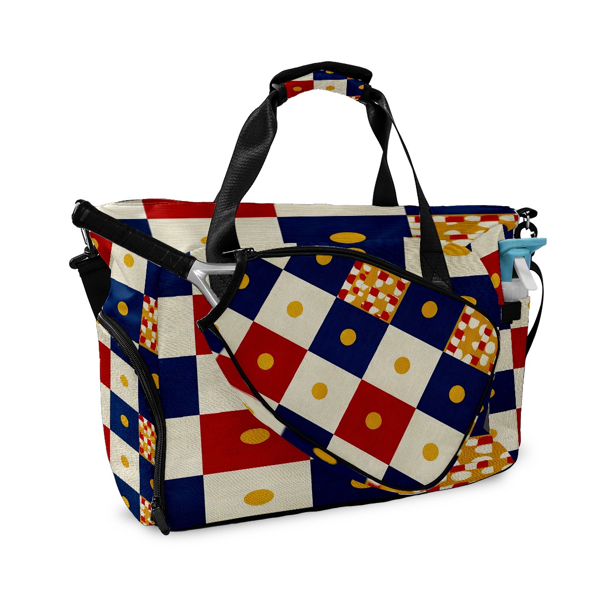 Women's Tennis Bag Large Capacity - Ventilated Shoe Compartment & Waterproof Wet Pocket, Multi-Functional Gym Duffel Bag for Tennis, Yoga, Travel (Multicolor Checker)