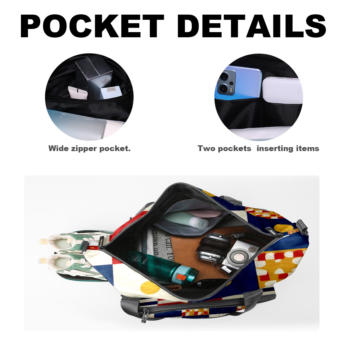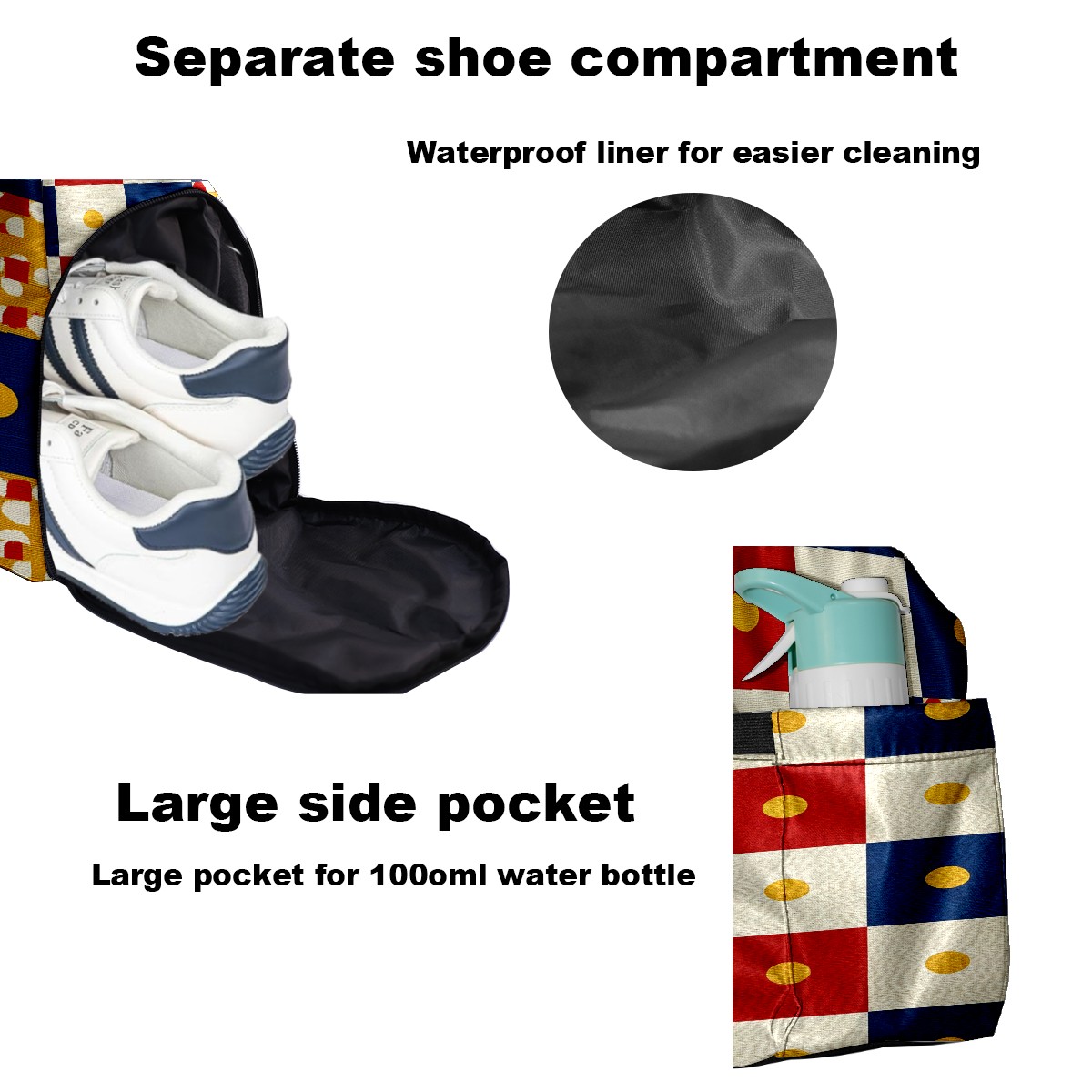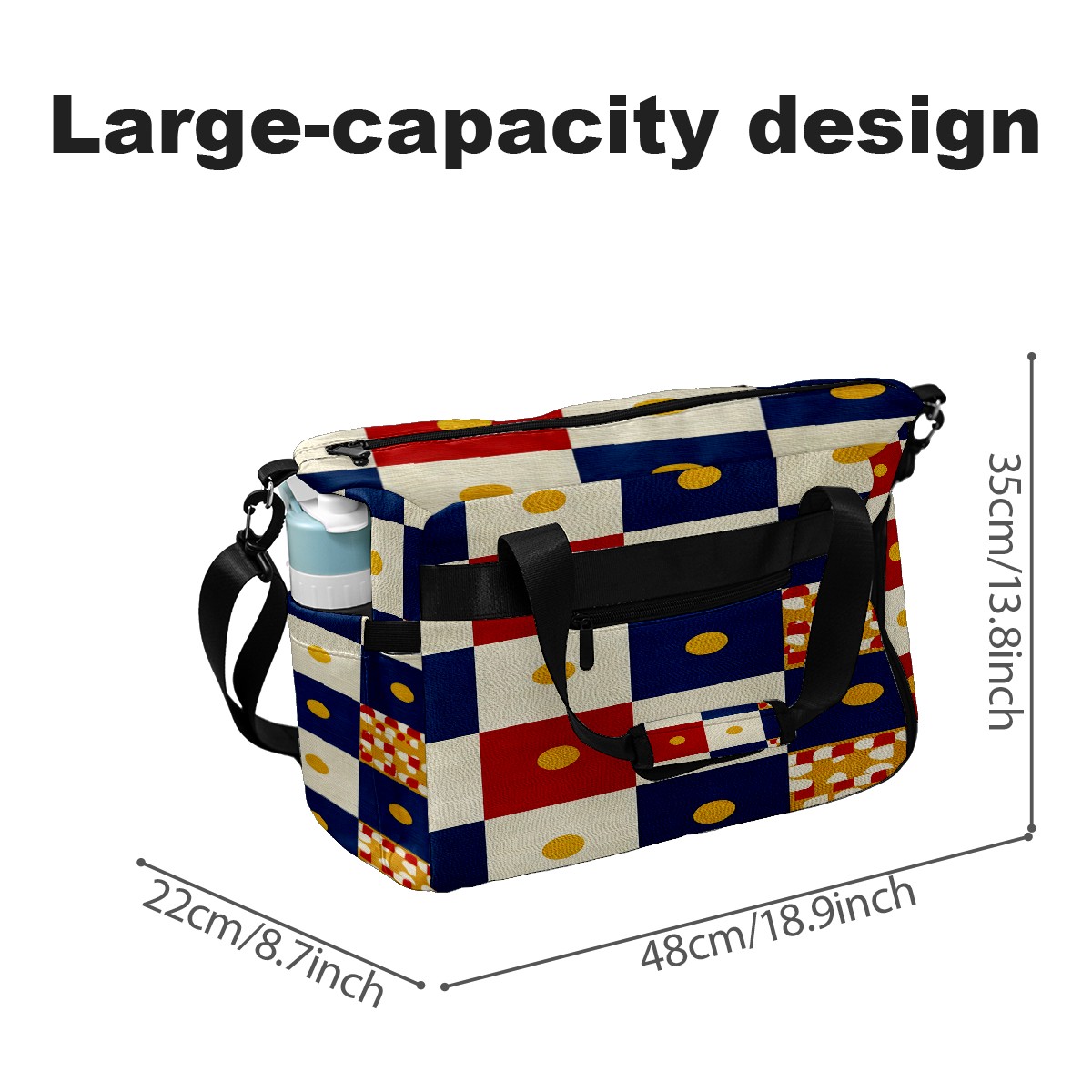 Women's Tennis Bag Large Capacity - Ventilated Shoe Compartment & Waterproof Wet Pocket, Multi-Functional Gym Duffel Bag for Tennis, Yoga, Travel (Multicolor Checker)