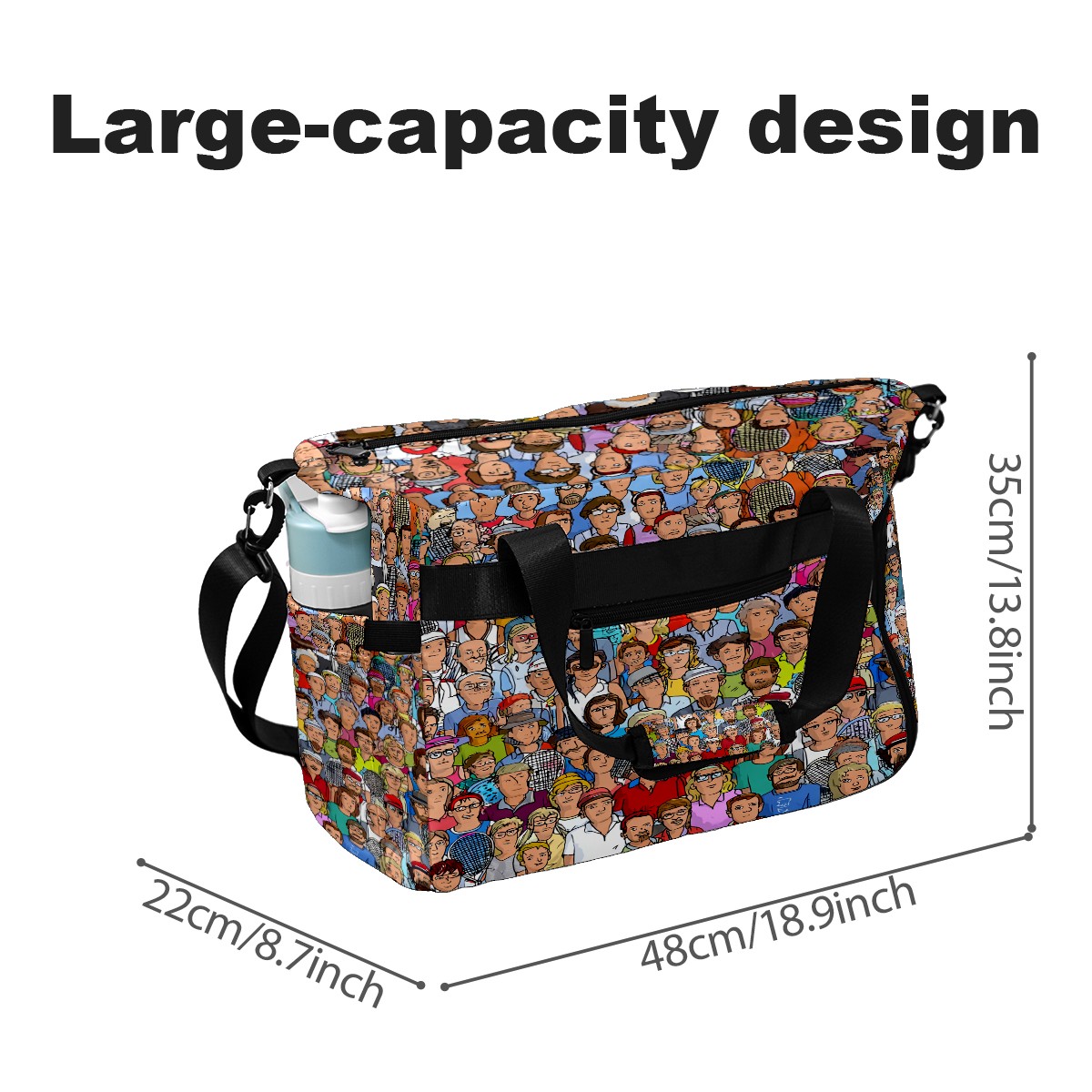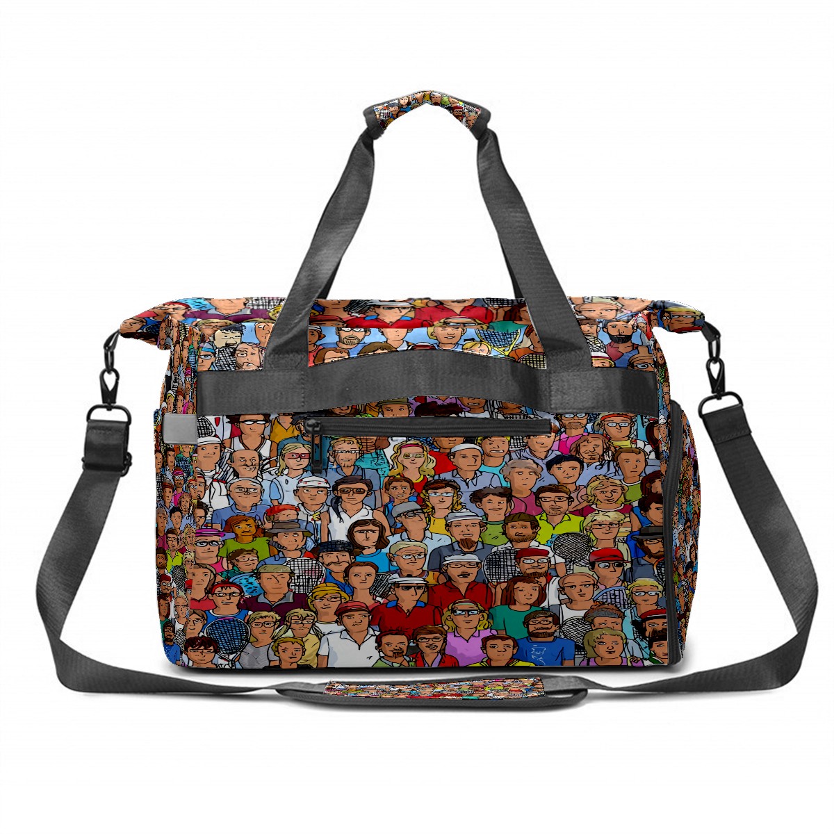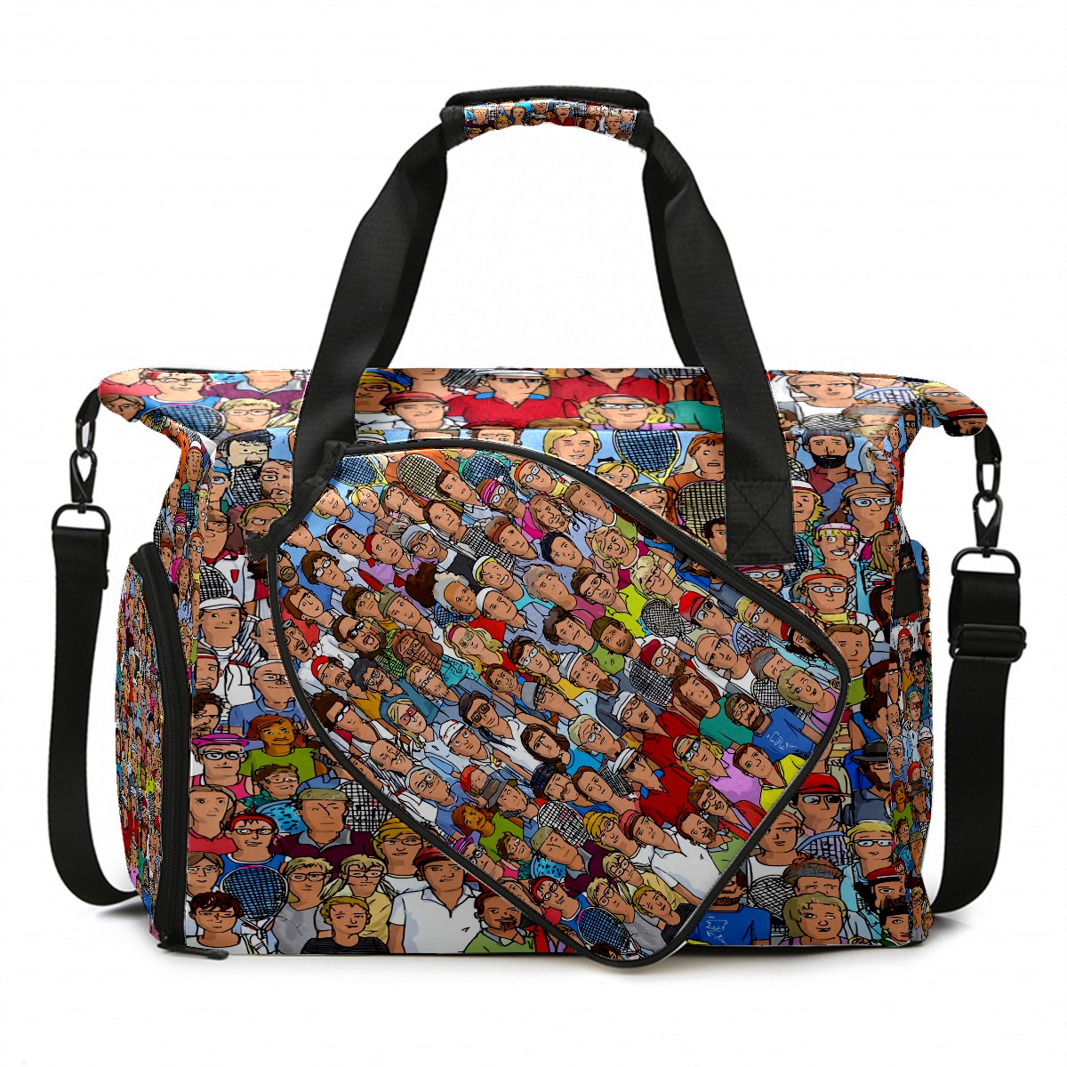 Women's Tennis Bag Large Capacity - Ventilated Shoe Compartment & Waterproof Wet Pocket, Multi-Functional Gym Duffel Bag for Tennis, Yoga, Travel (Multicolor People Crowd)