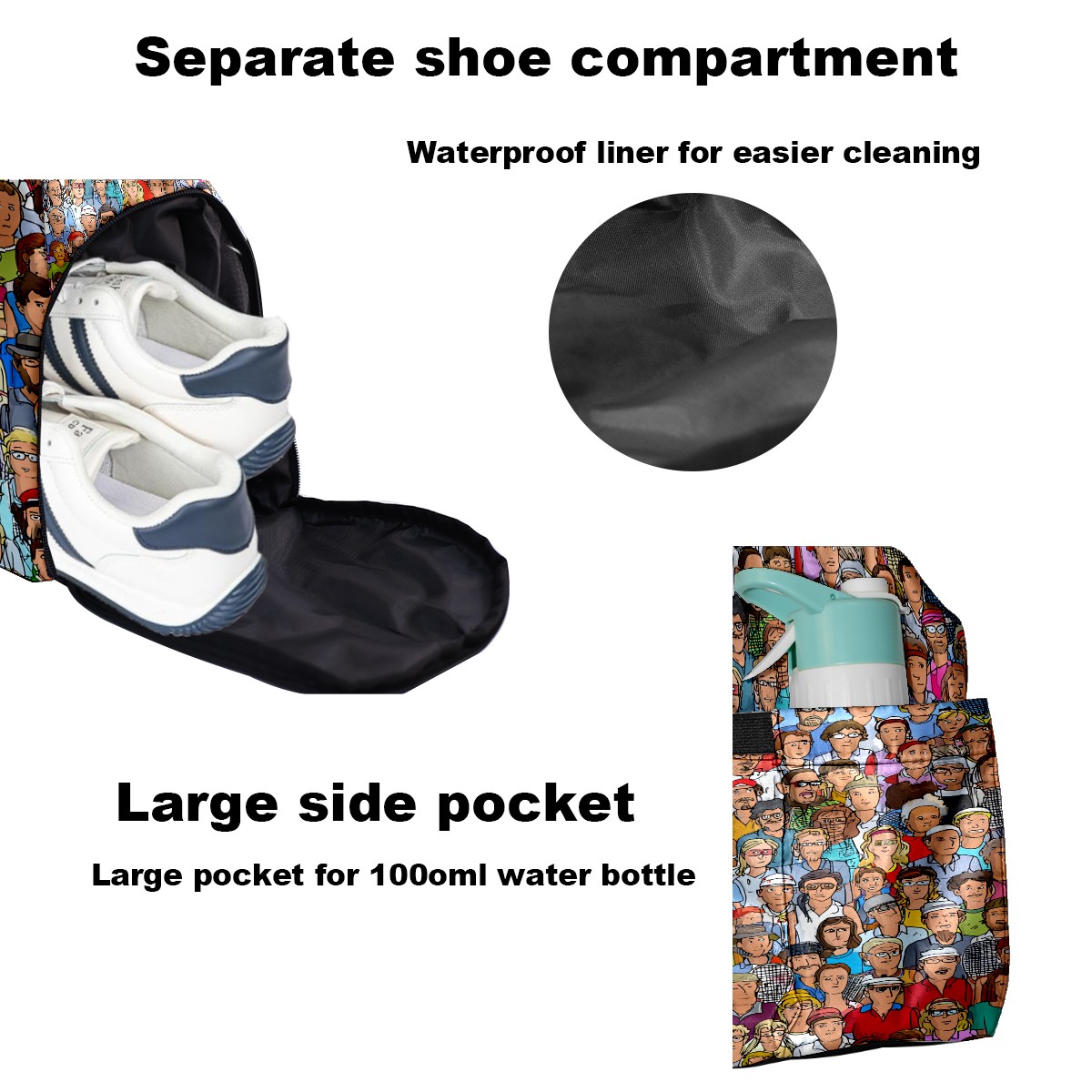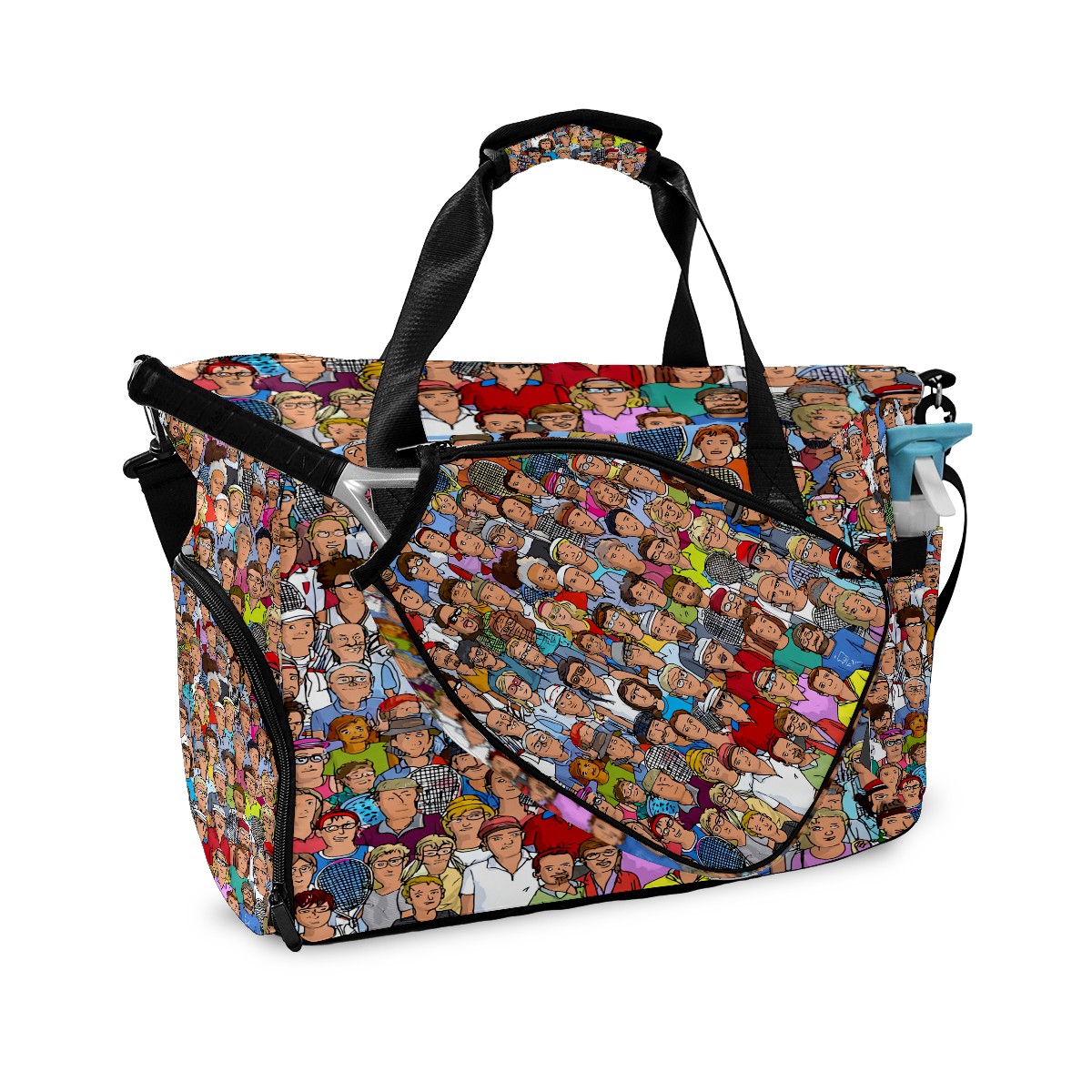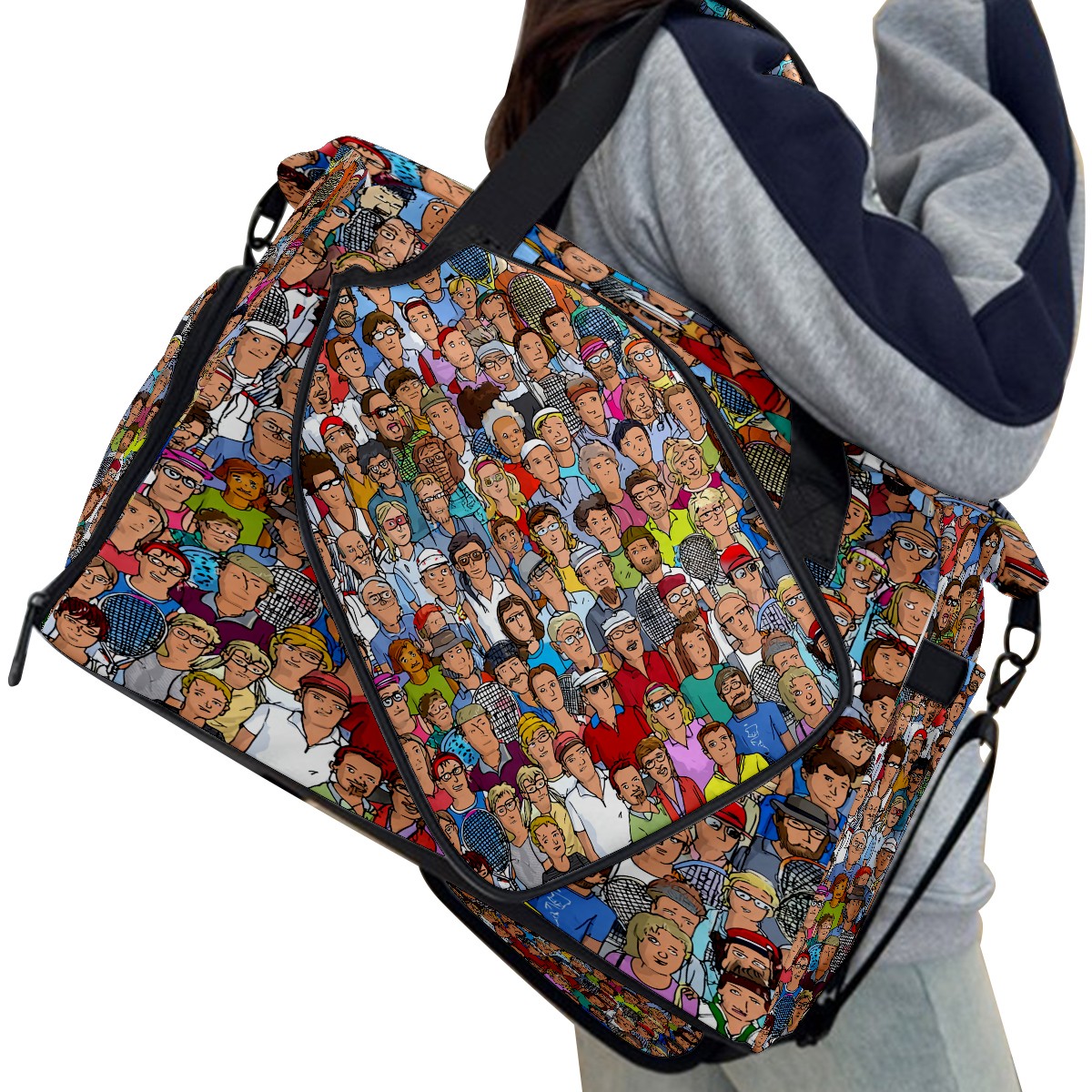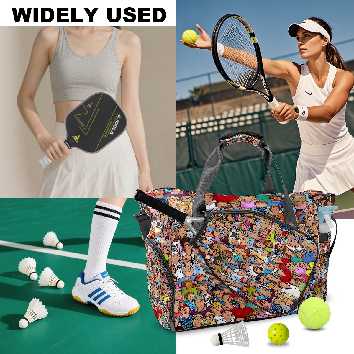 Women's Tennis Bag Large Capacity - Ventilated Shoe Compartment & Waterproof Wet Pocket, Multi-Functional Gym Duffel Bag for Tennis, Yoga, Travel (Multicolor People Crowd)
