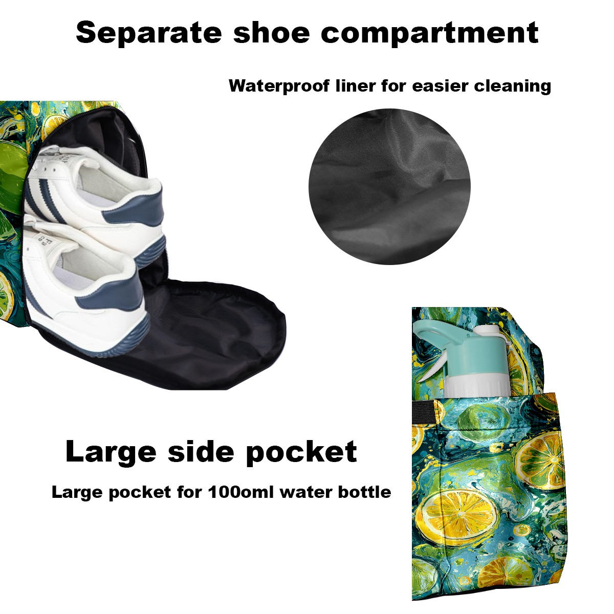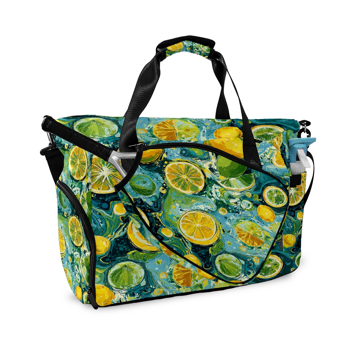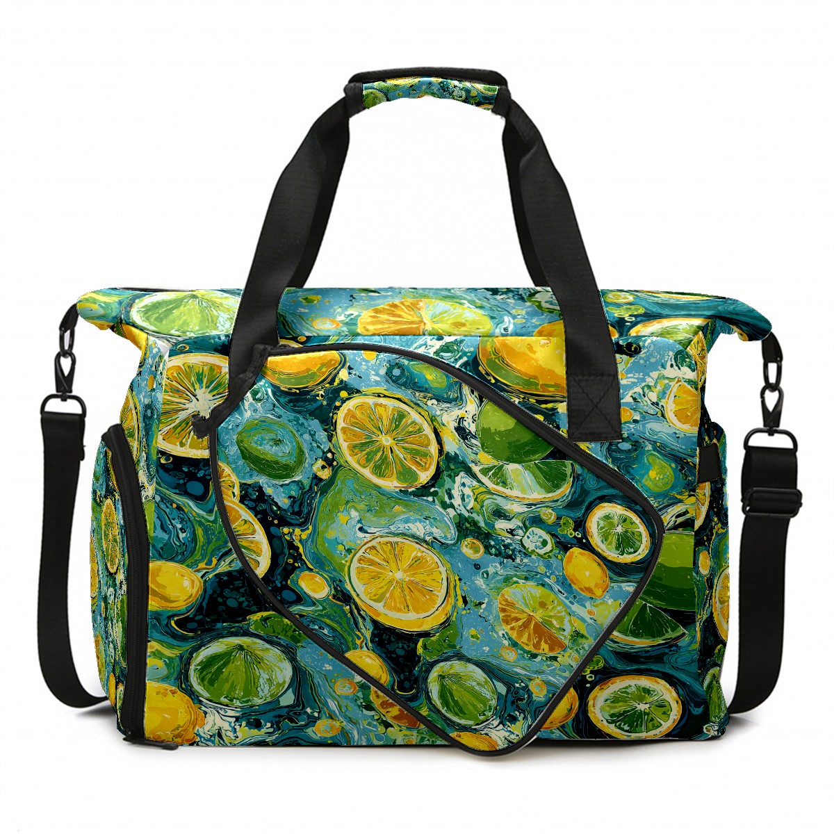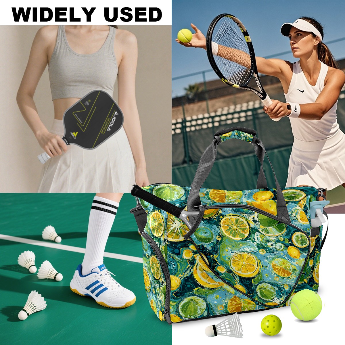 Women's Tennis Bag Large Capacity - Ventilated Shoe Compartment & Waterproof Wet Pocket, Multi-Functional Gym Duffel Bag for Tennis, Yoga, Travel (Green Lemon Pattern)