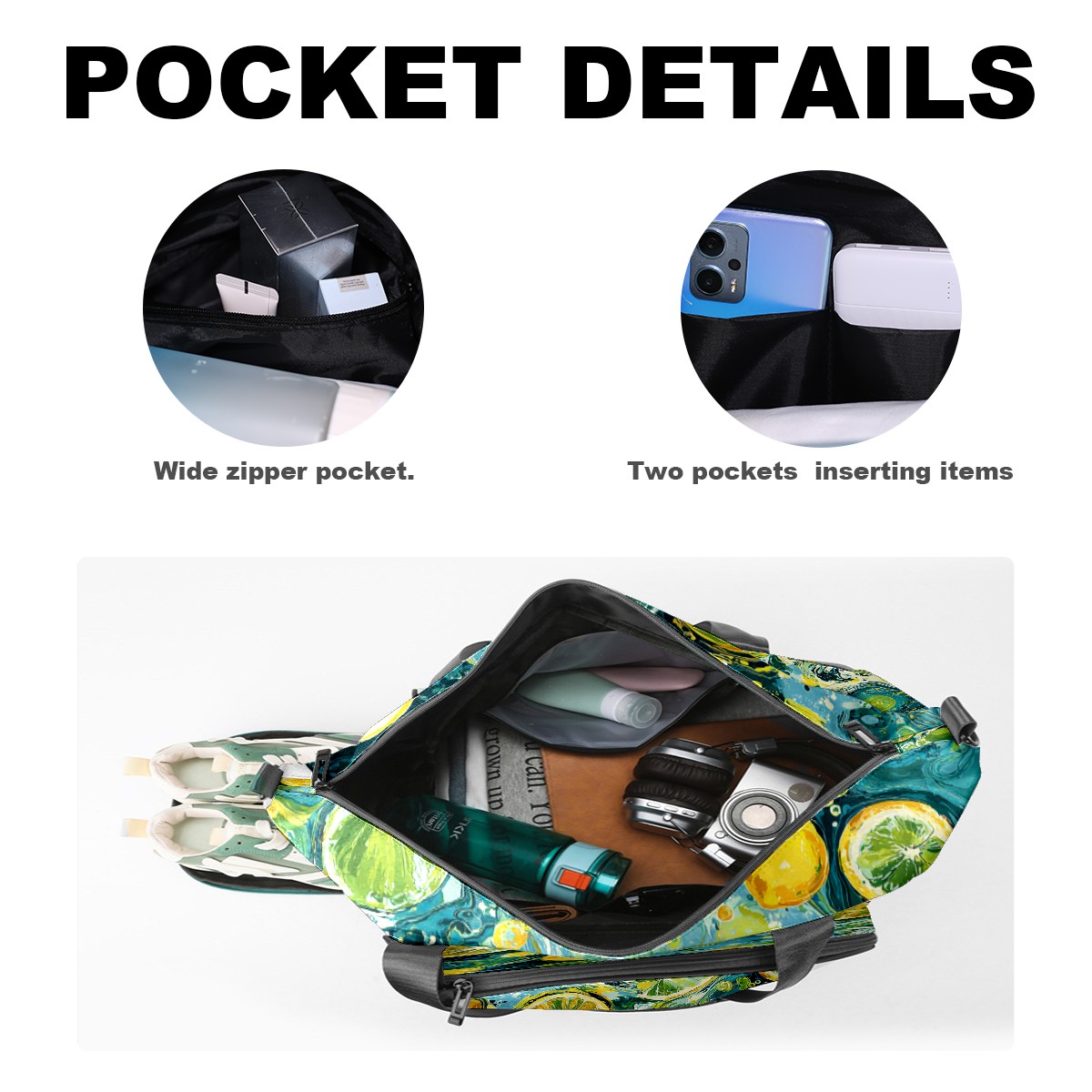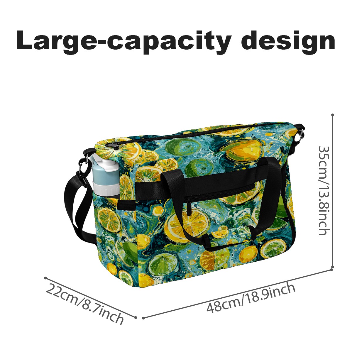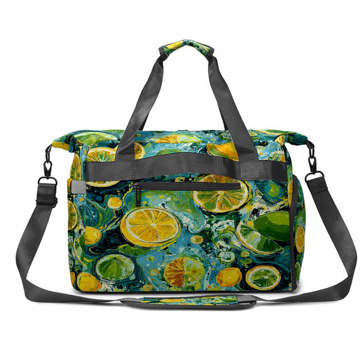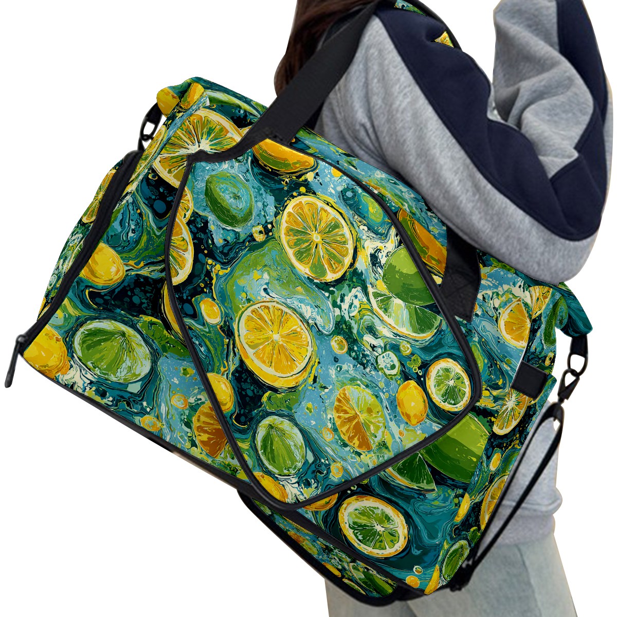 Women's Tennis Bag Large Capacity - Ventilated Shoe Compartment & Waterproof Wet Pocket, Multi-Functional Gym Duffel Bag for Tennis, Yoga, Travel (Green Lemon Pattern)