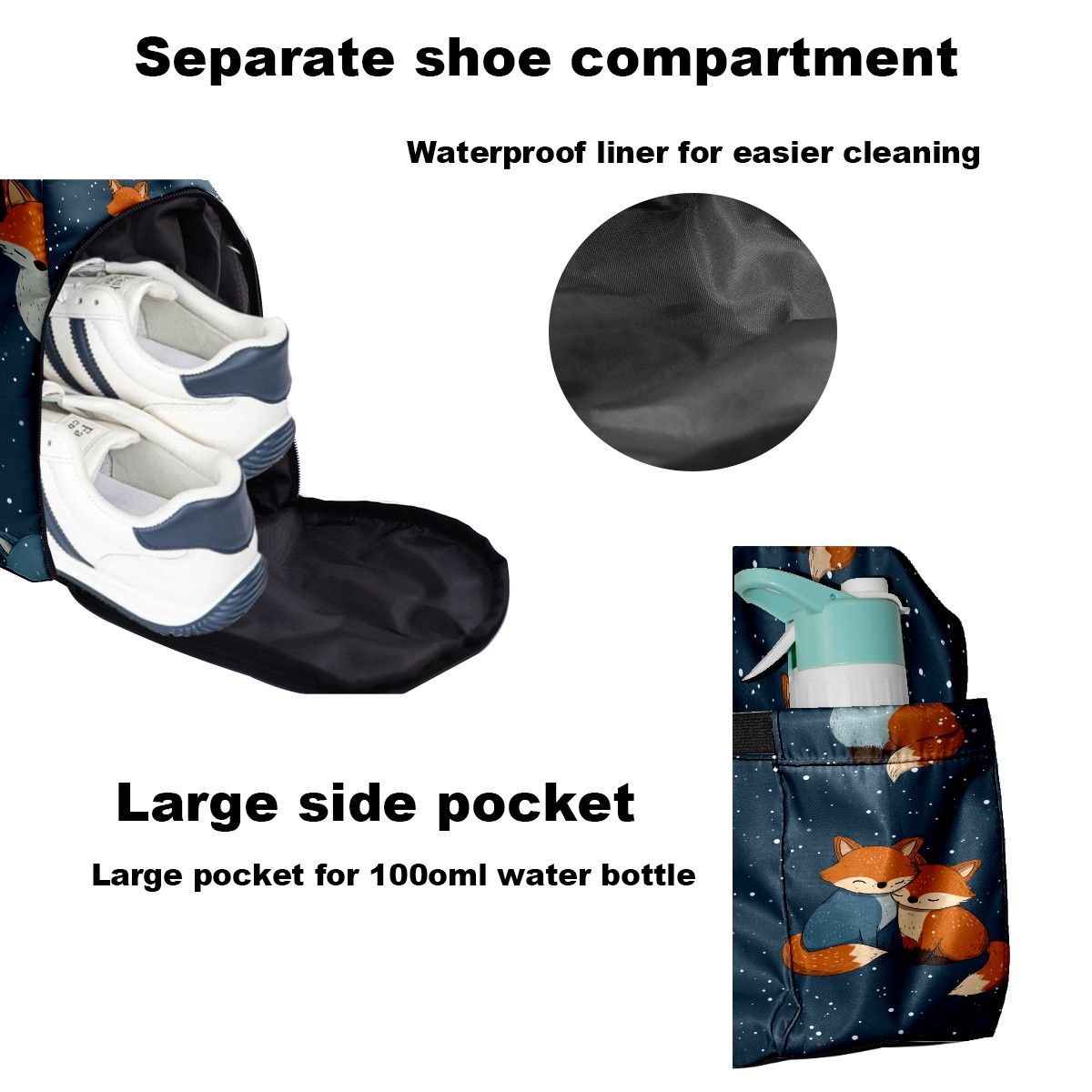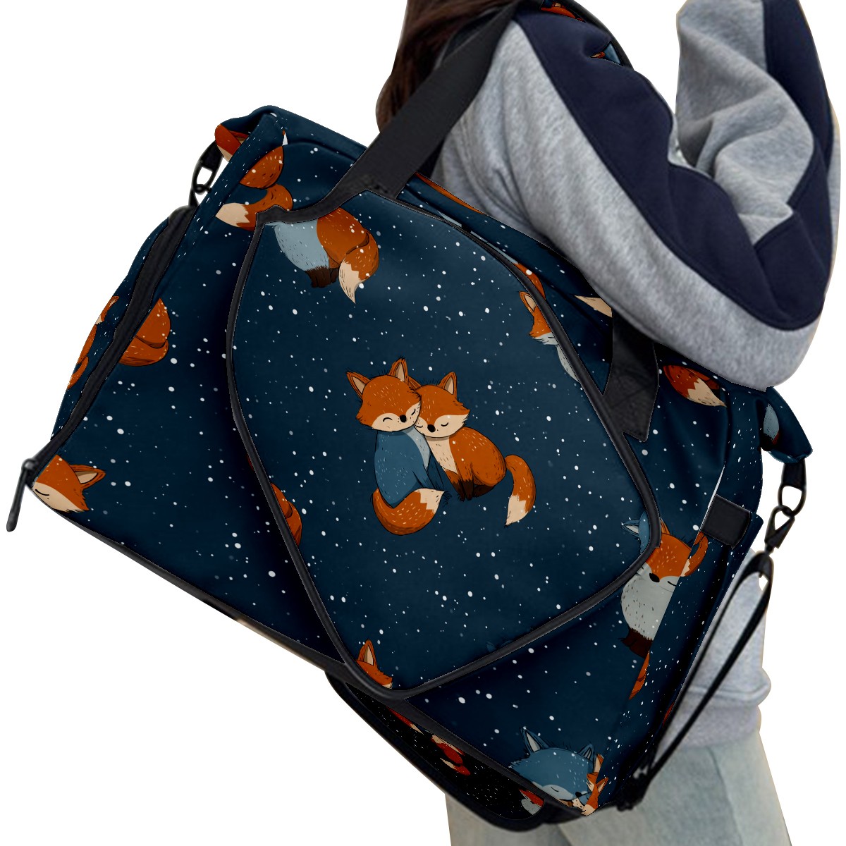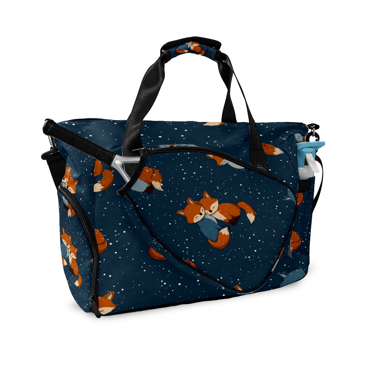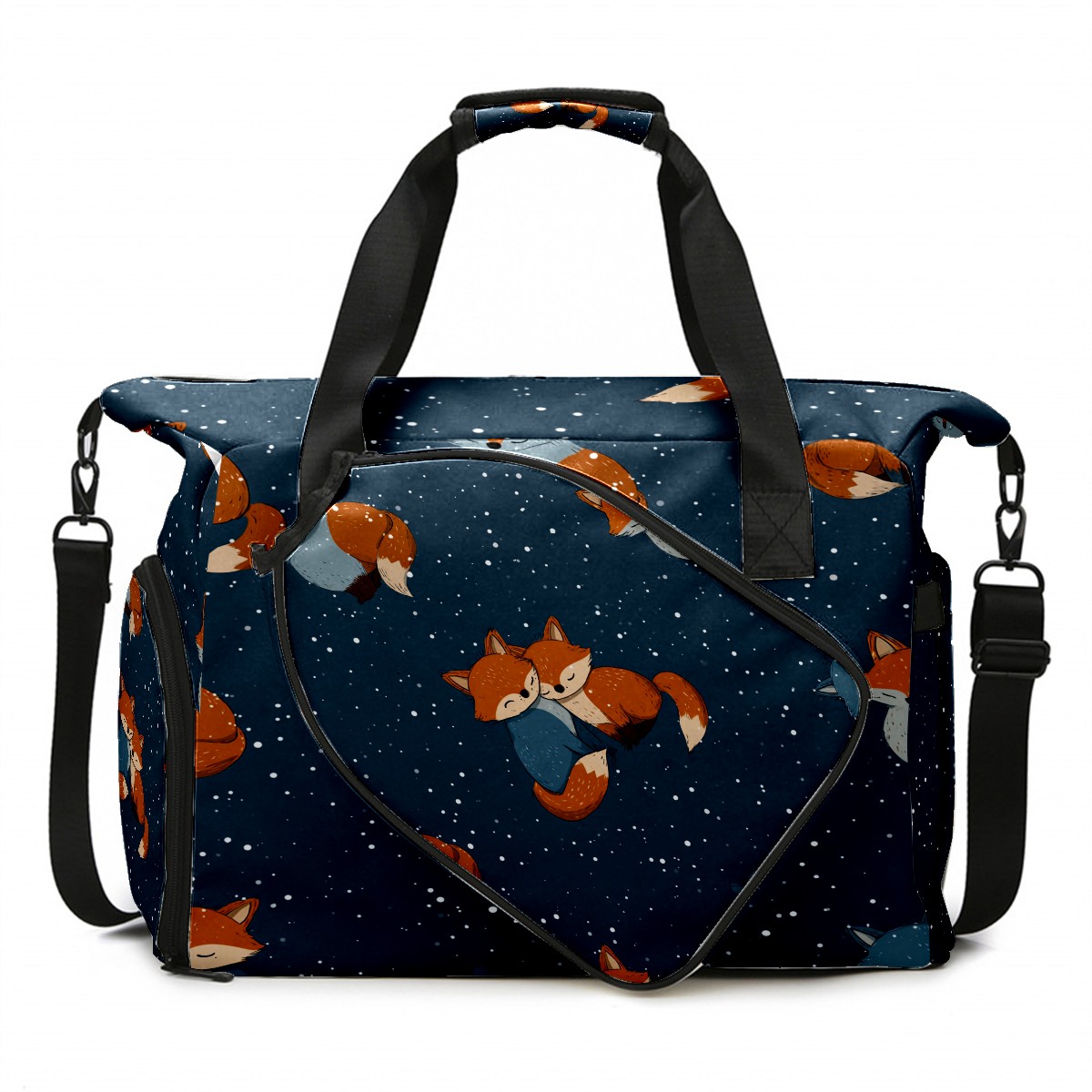 Women's Tennis Bag Large Capacity - Ventilated Shoe Compartment & Waterproof Wet Pocket, Multi-Functional Gym Duffel Bag for Tennis, Yoga, Travel (Blue Foxes)