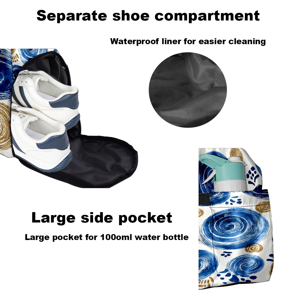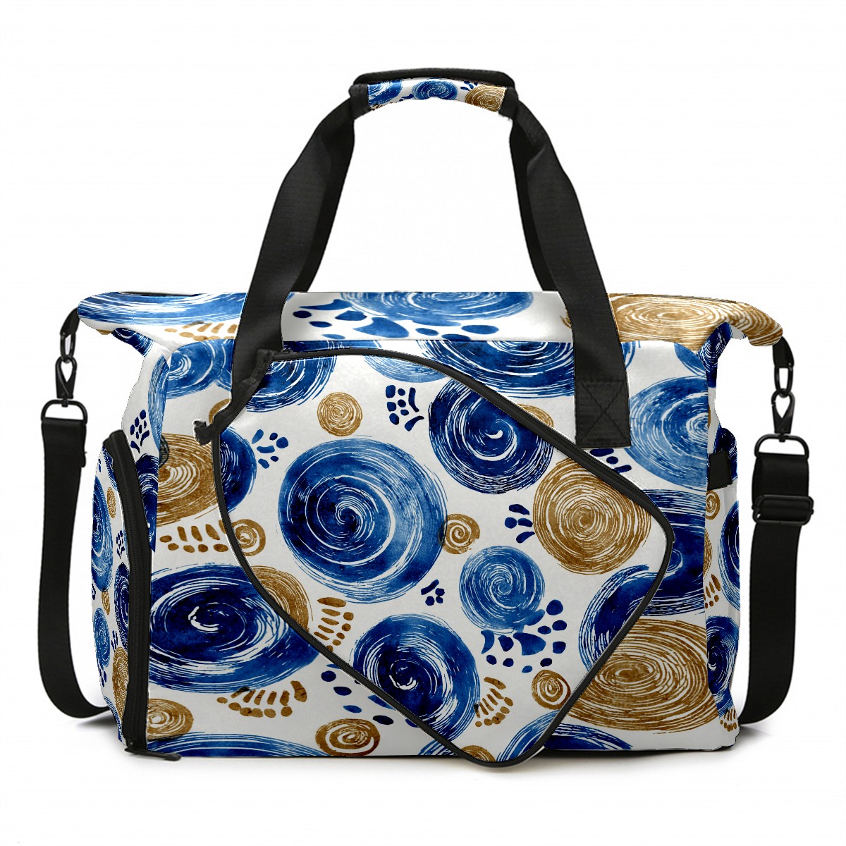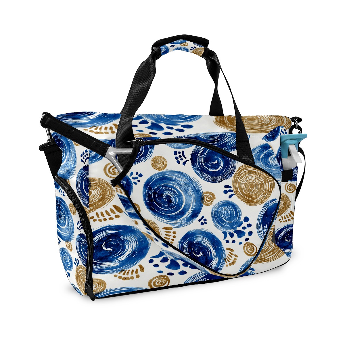 Women's Tennis Bag Large Capacity - Ventilated Shoe Compartment & Waterproof Wet Pocket, Multi-Functional Gym Duffel Bag for Tennis, Yoga, Travel (Blue Swirls)