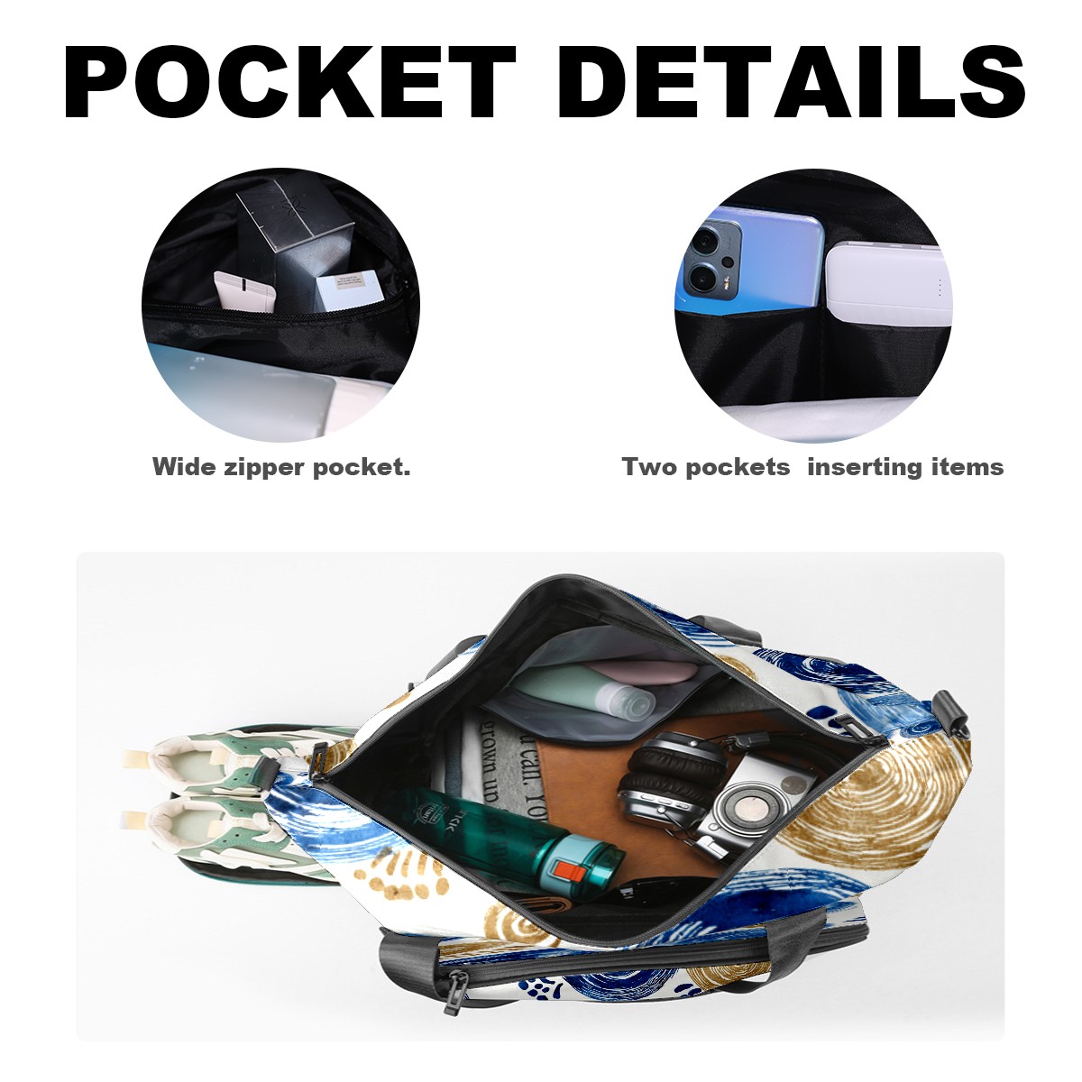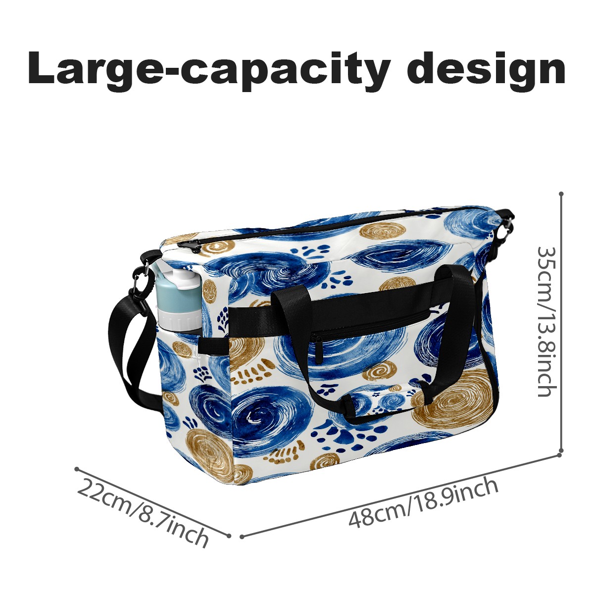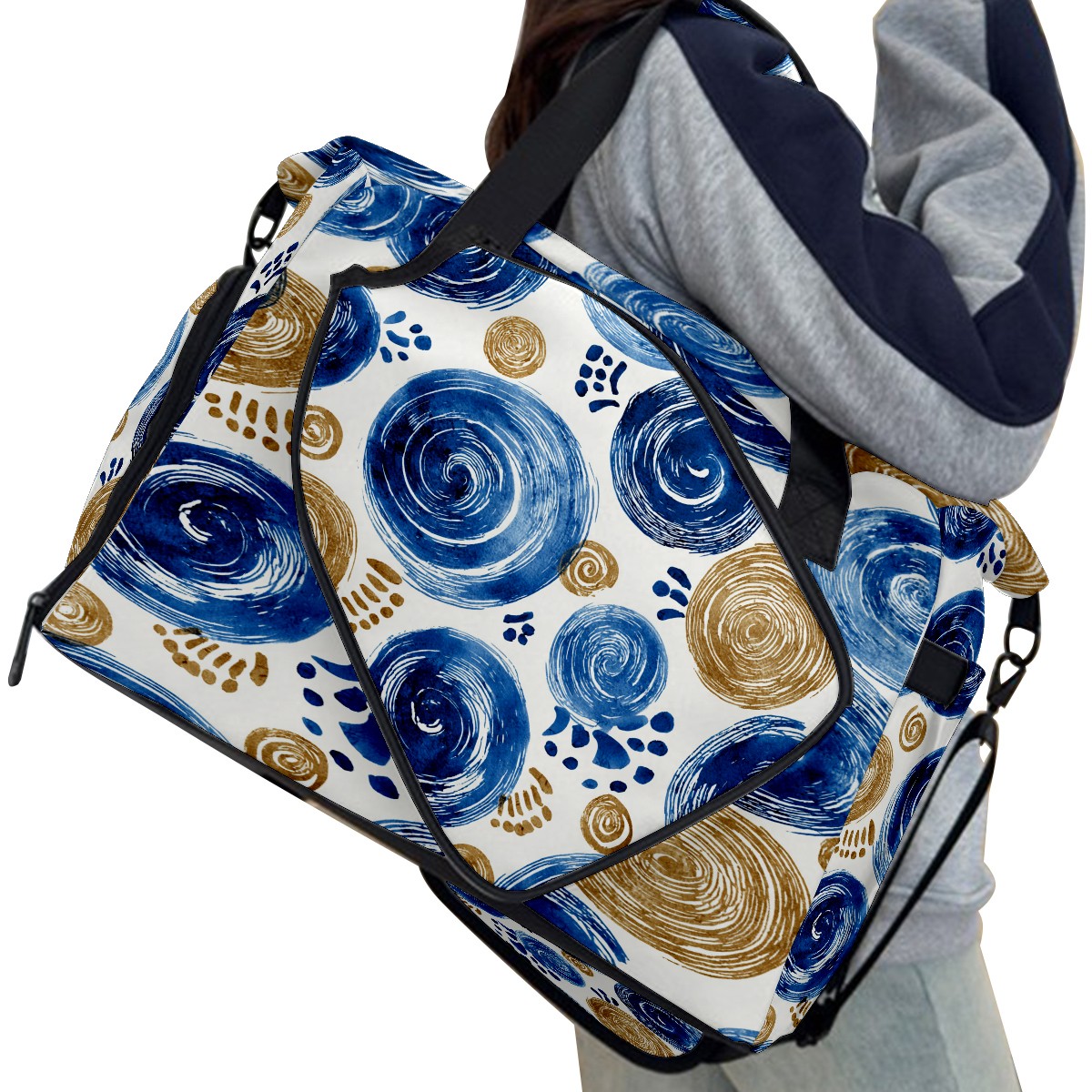 Women's Tennis Bag Large Capacity - Ventilated Shoe Compartment & Waterproof Wet Pocket, Multi-Functional Gym Duffel Bag for Tennis, Yoga, Travel (Blue Swirls)