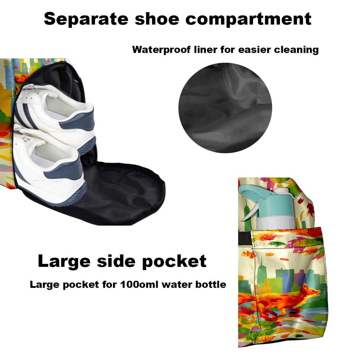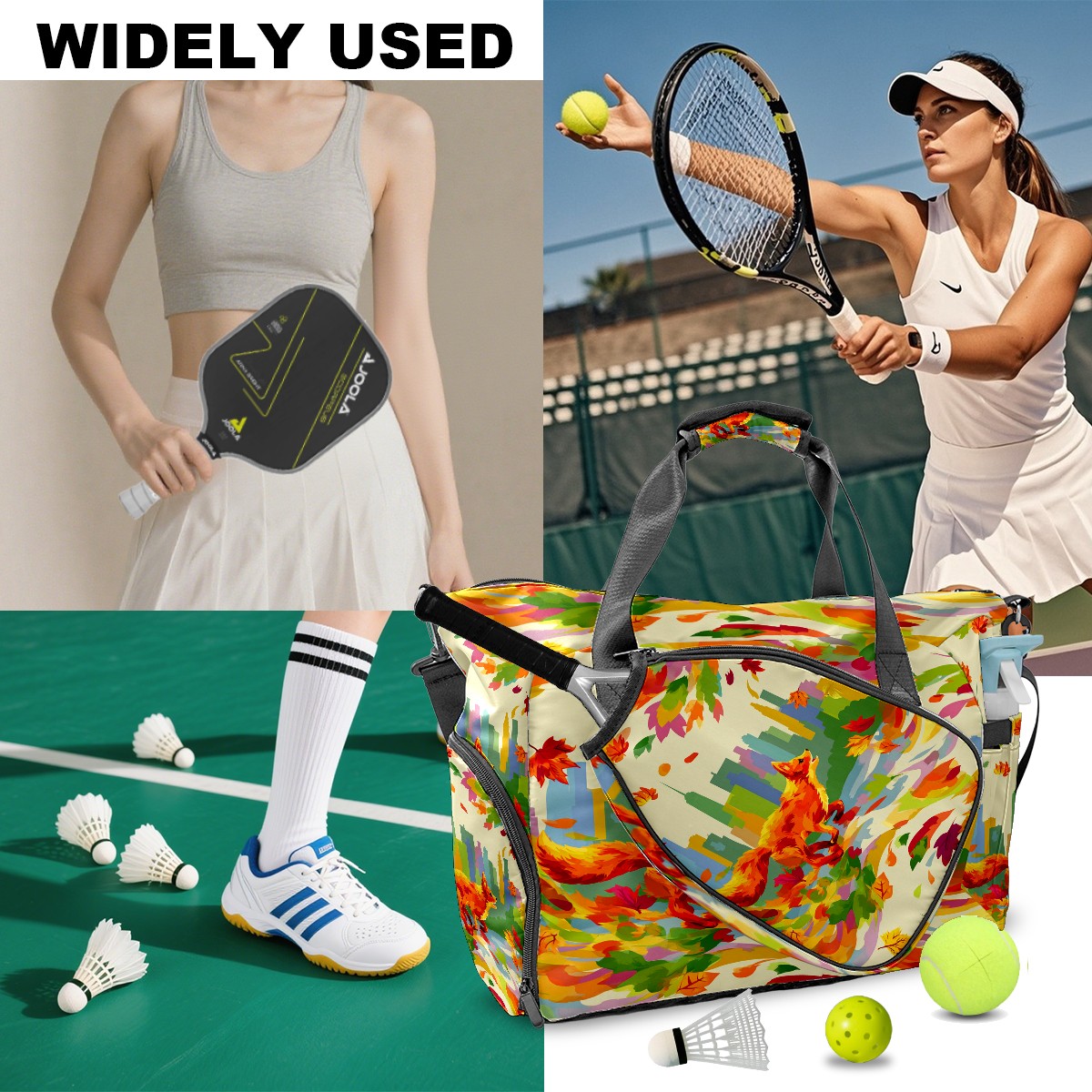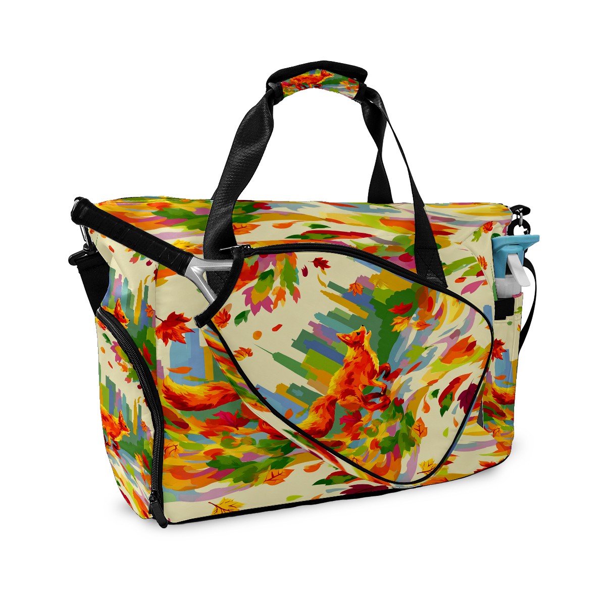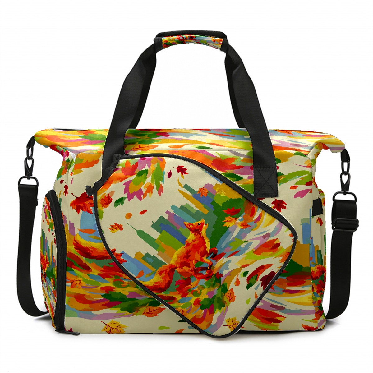Women's Tennis Bag Large Capacity - Ventilated Shoe Compartment & Waterproof Wet Pocket, Multi-Functional Gym Duffel Bag for Tennis, Yoga, Travel (Multicolor Fox City)