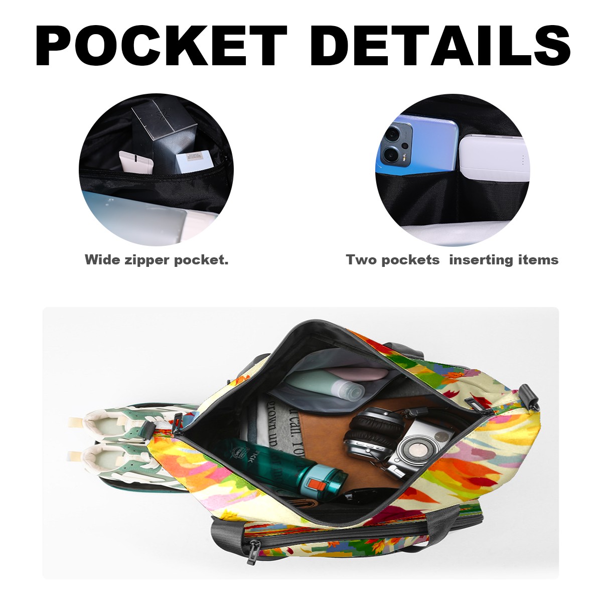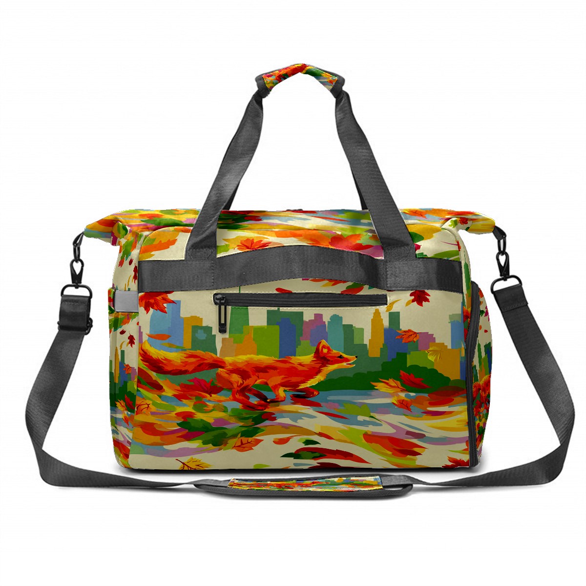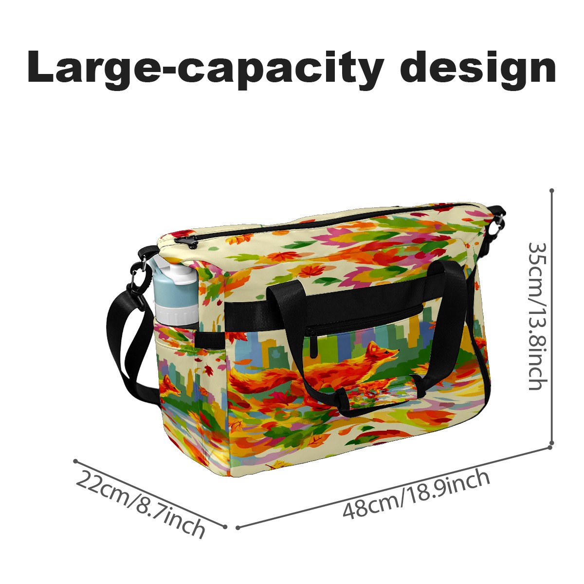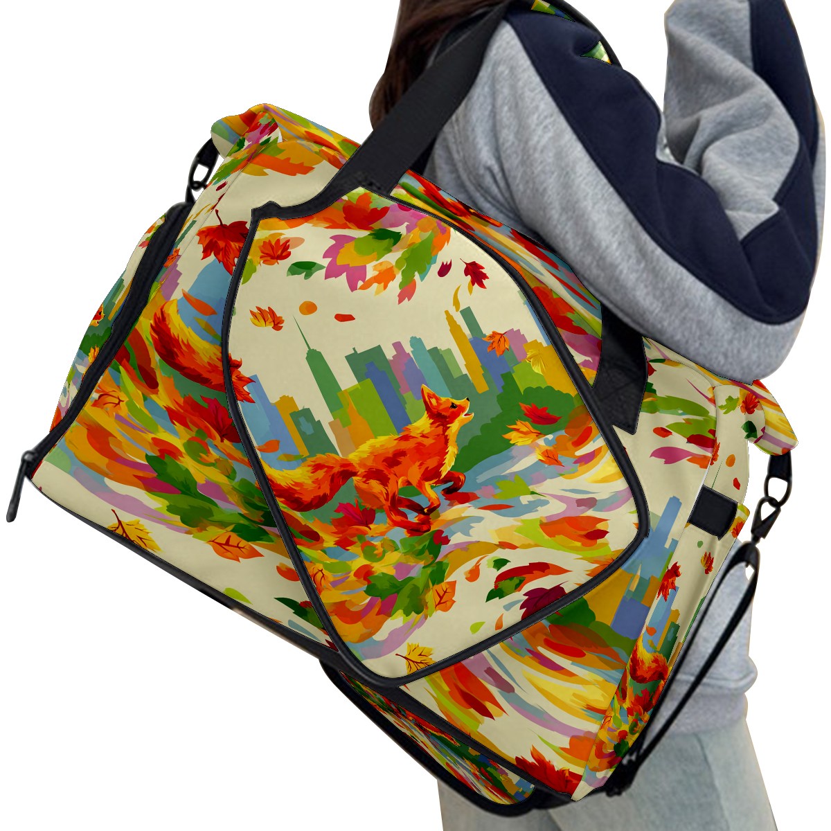 Women's Tennis Bag Large Capacity - Ventilated Shoe Compartment & Waterproof Wet Pocket, Multi-Functional Gym Duffel Bag for Tennis, Yoga, Travel (Multicolor Fox City)