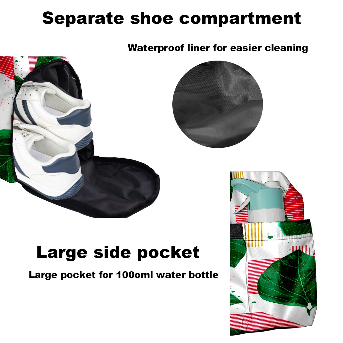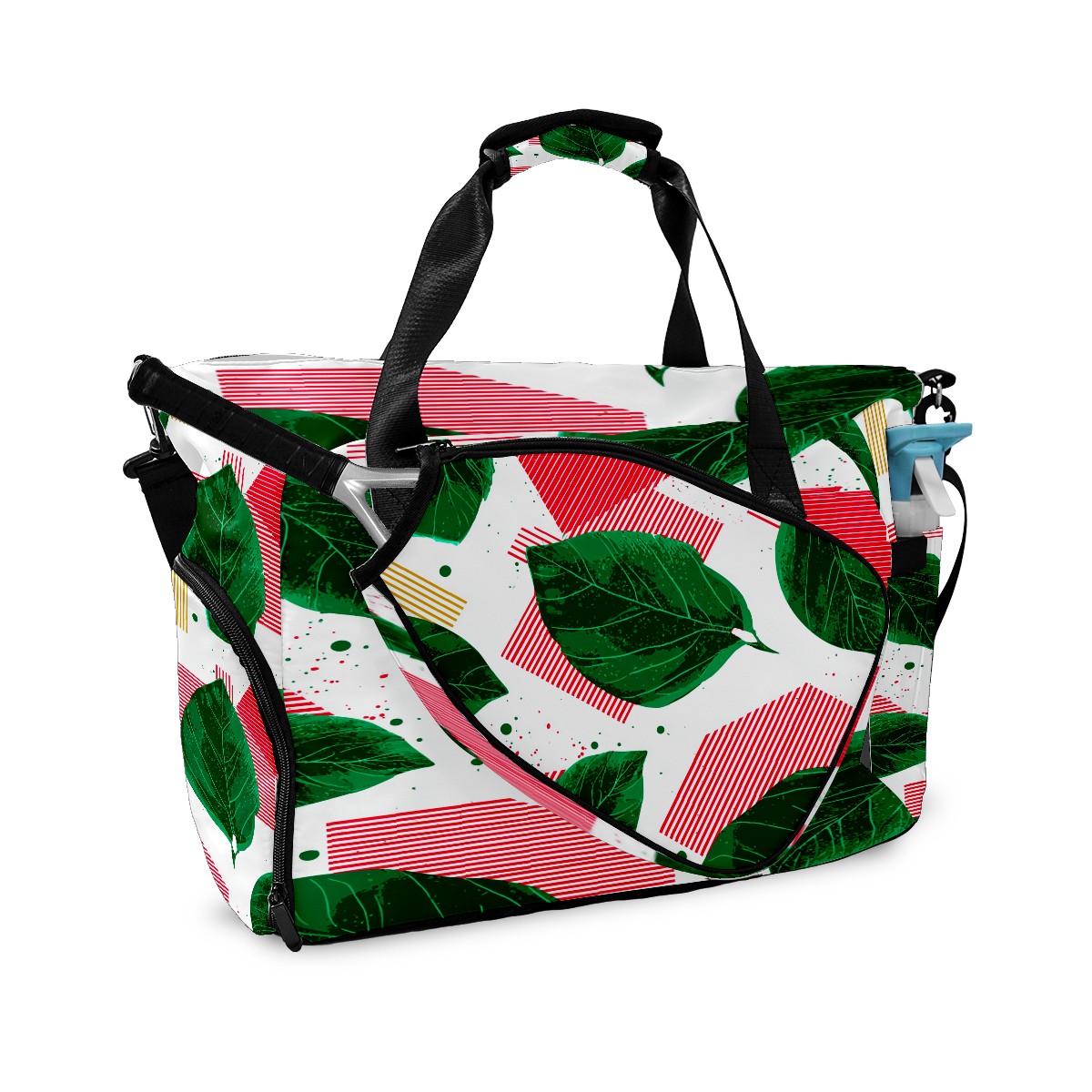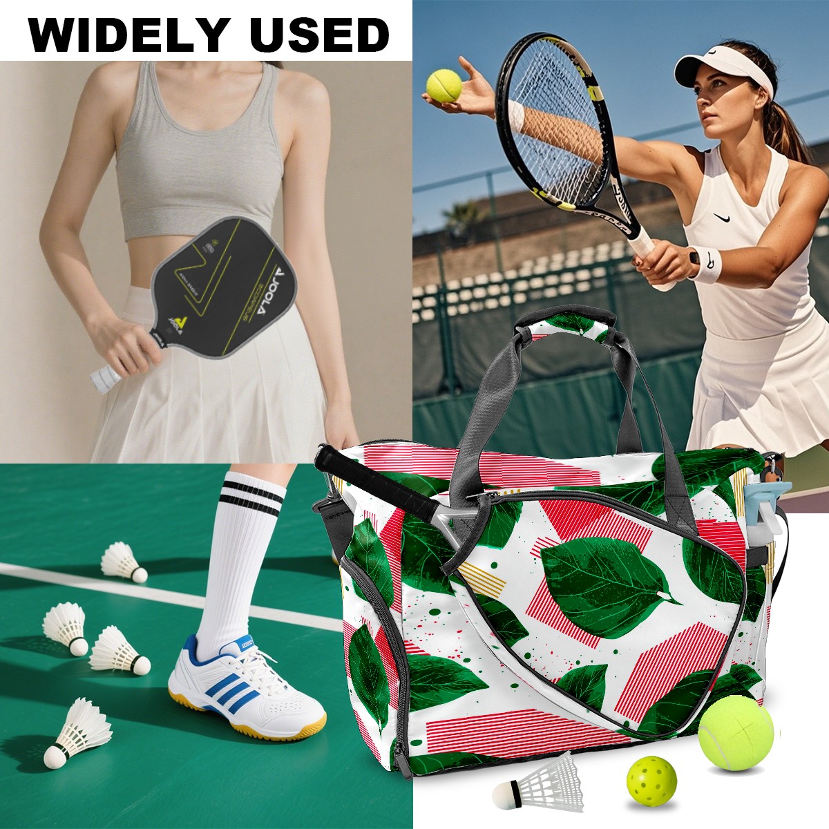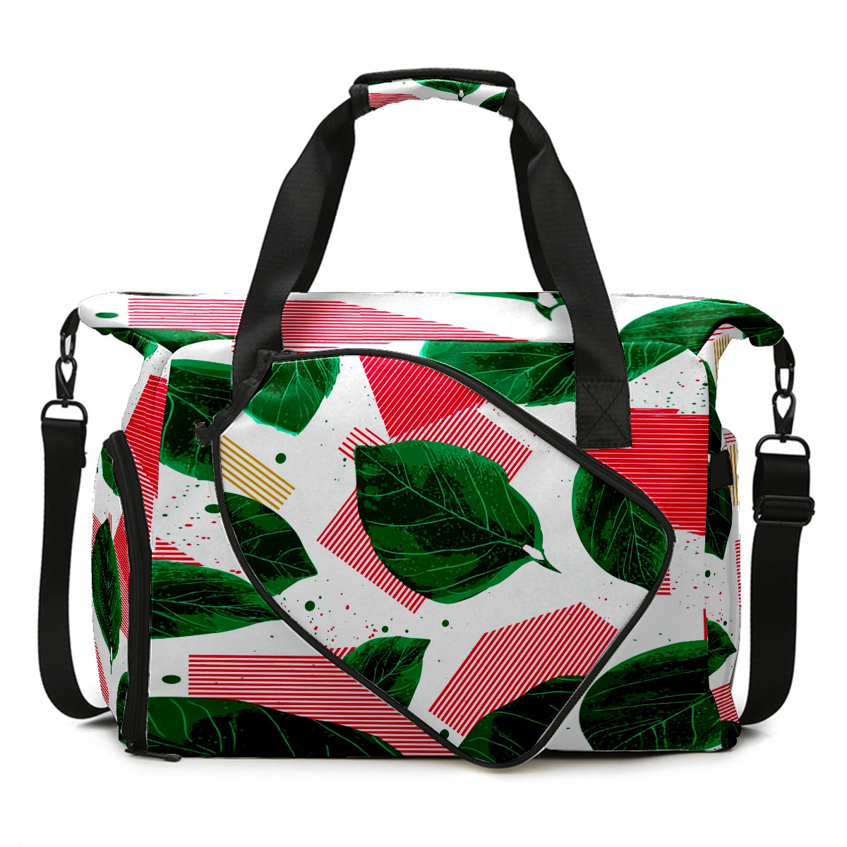 Women's Tennis Bag Large Capacity - Ventilated Shoe Compartment & Waterproof Wet Pocket, Multi-Functional Gym Duffel Bag for Tennis, Yoga, Travel (Leaves GreenPink)