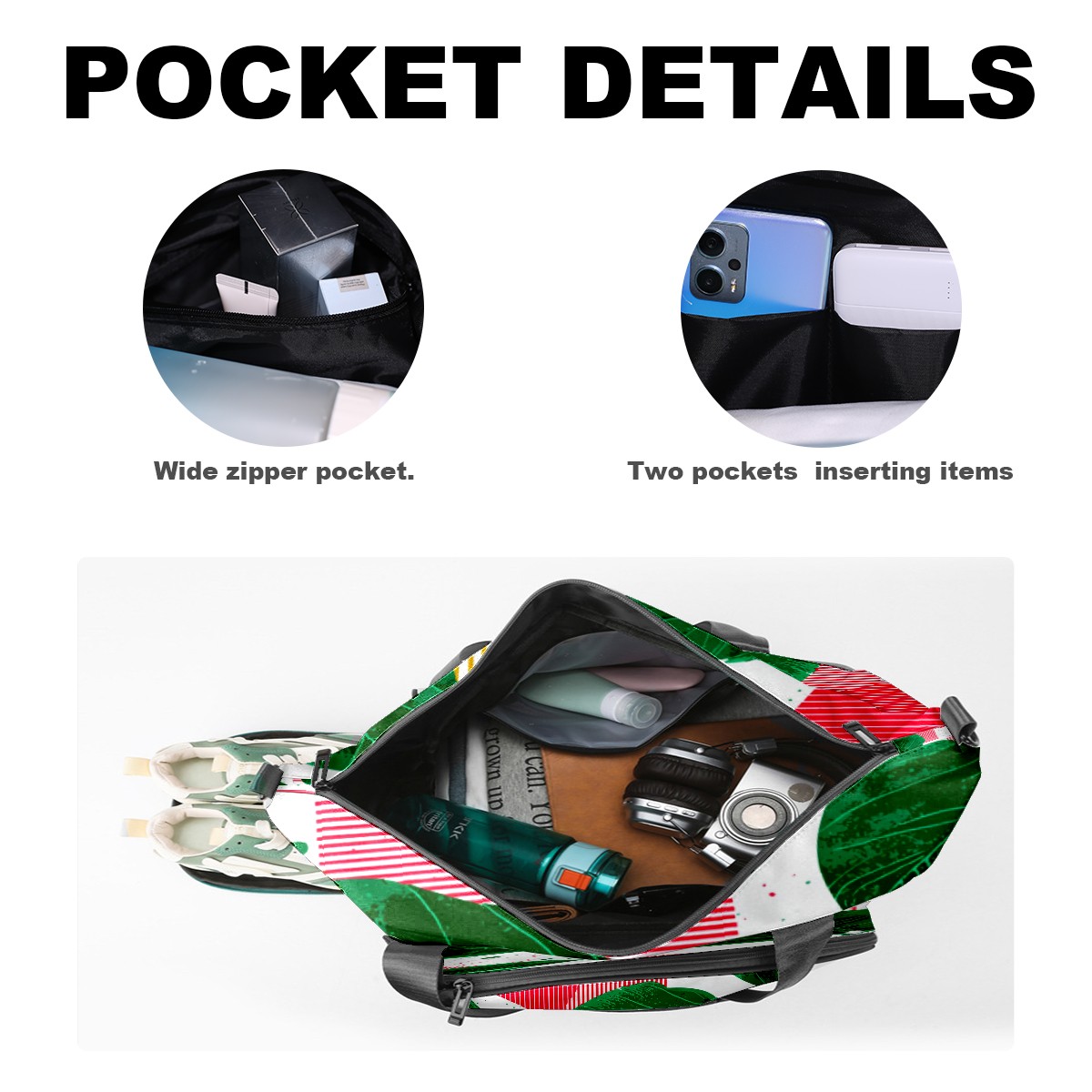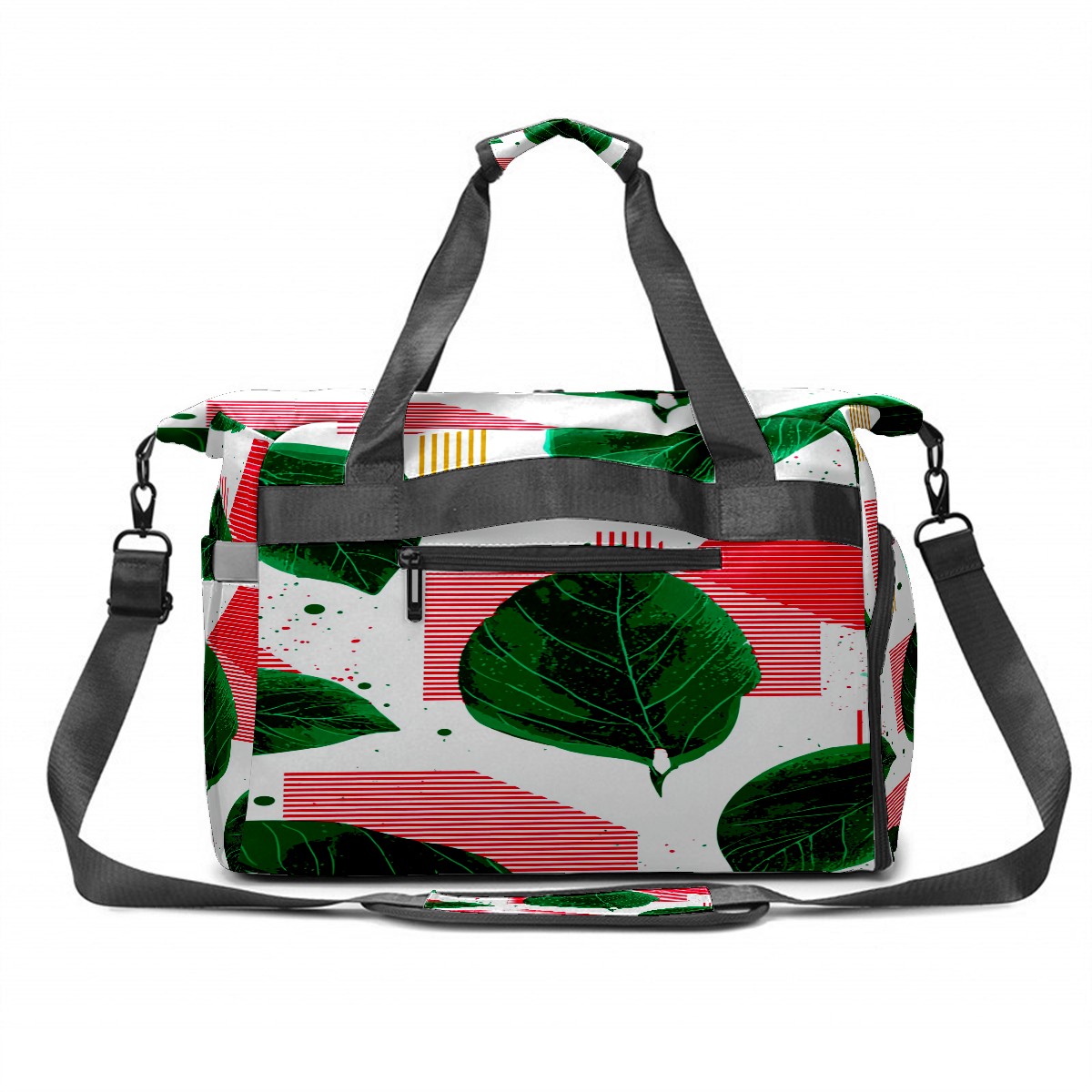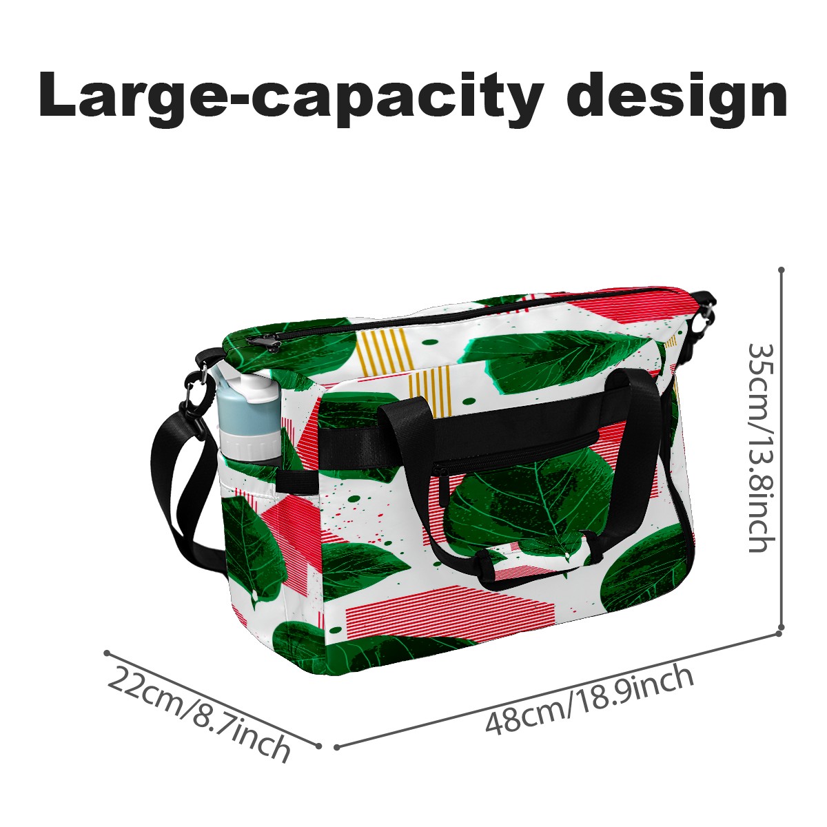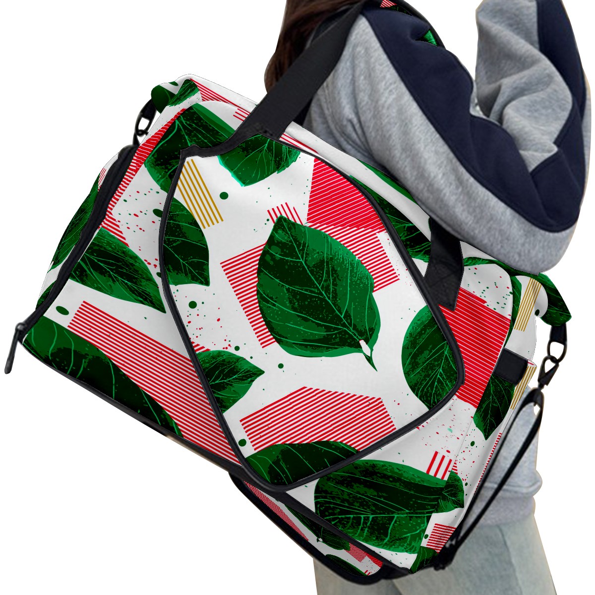 Women's Tennis Bag Large Capacity - Ventilated Shoe Compartment & Waterproof Wet Pocket, Multi-Functional Gym Duffel Bag for Tennis, Yoga, Travel (Leaves GreenPink)