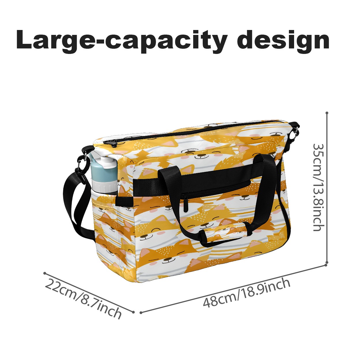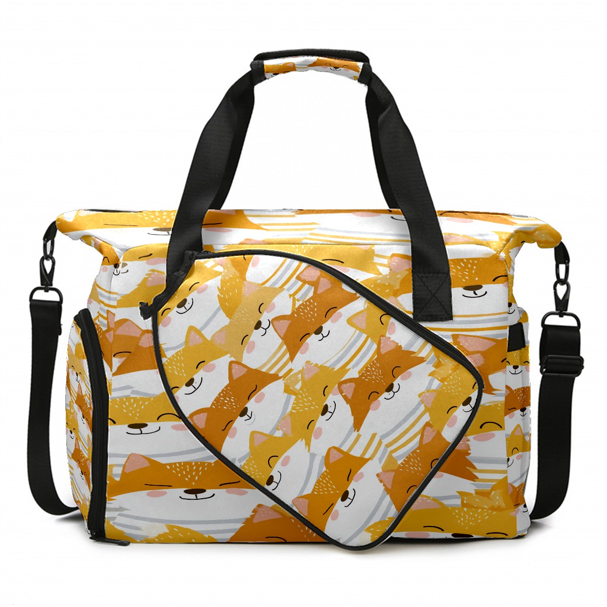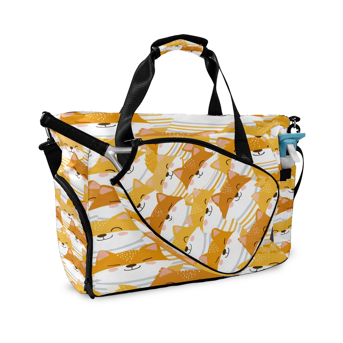 Women's Tennis Bag Large Capacity - Ventilated Shoe Compartment & Waterproof Wet Pocket, Multi-Functional Gym Duffel Bag for Tennis, Yoga, Travel (Beige Foxes)