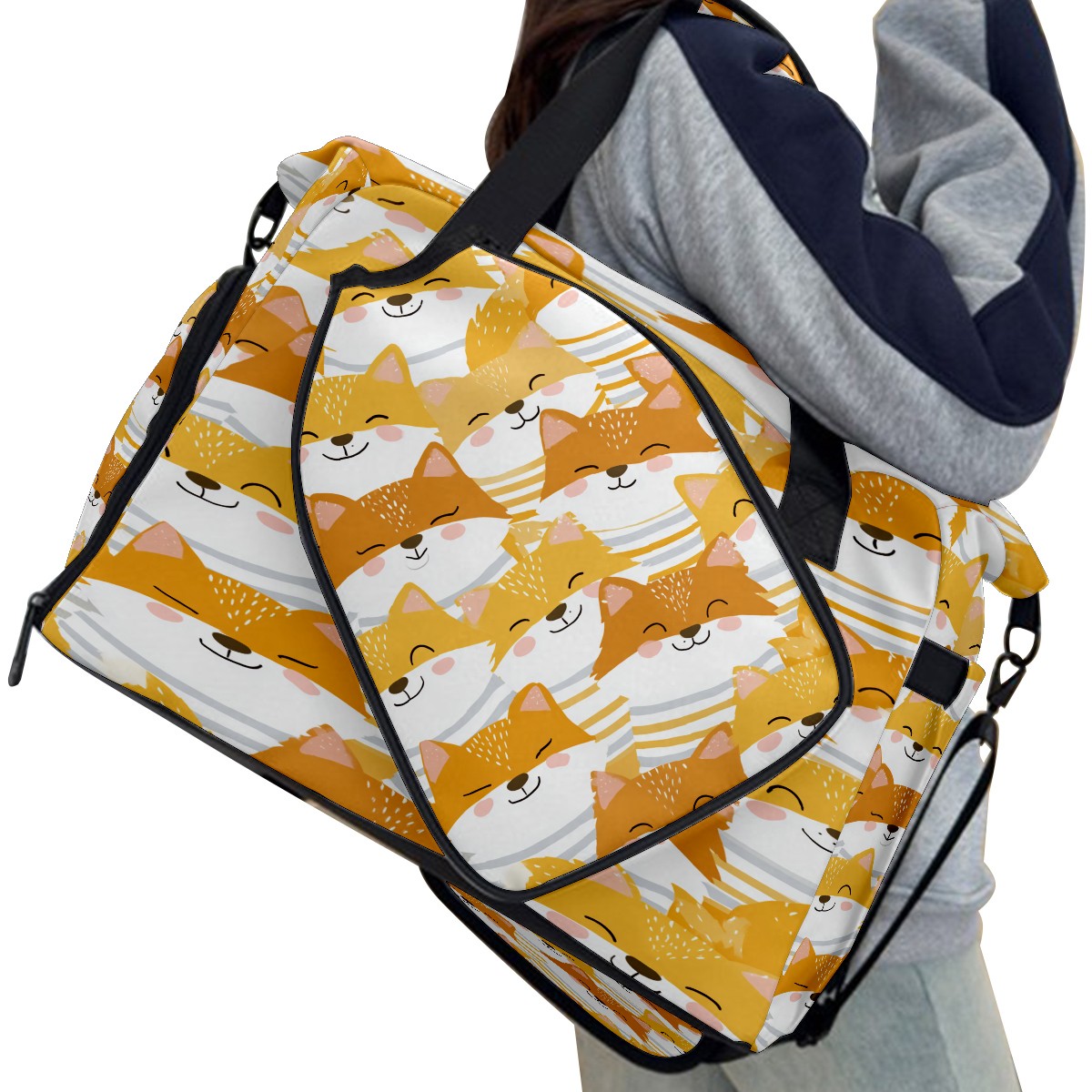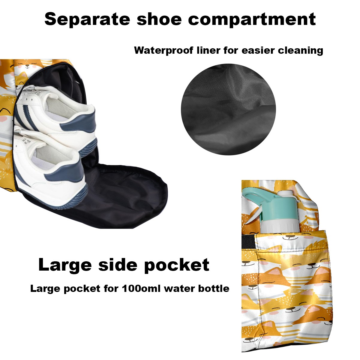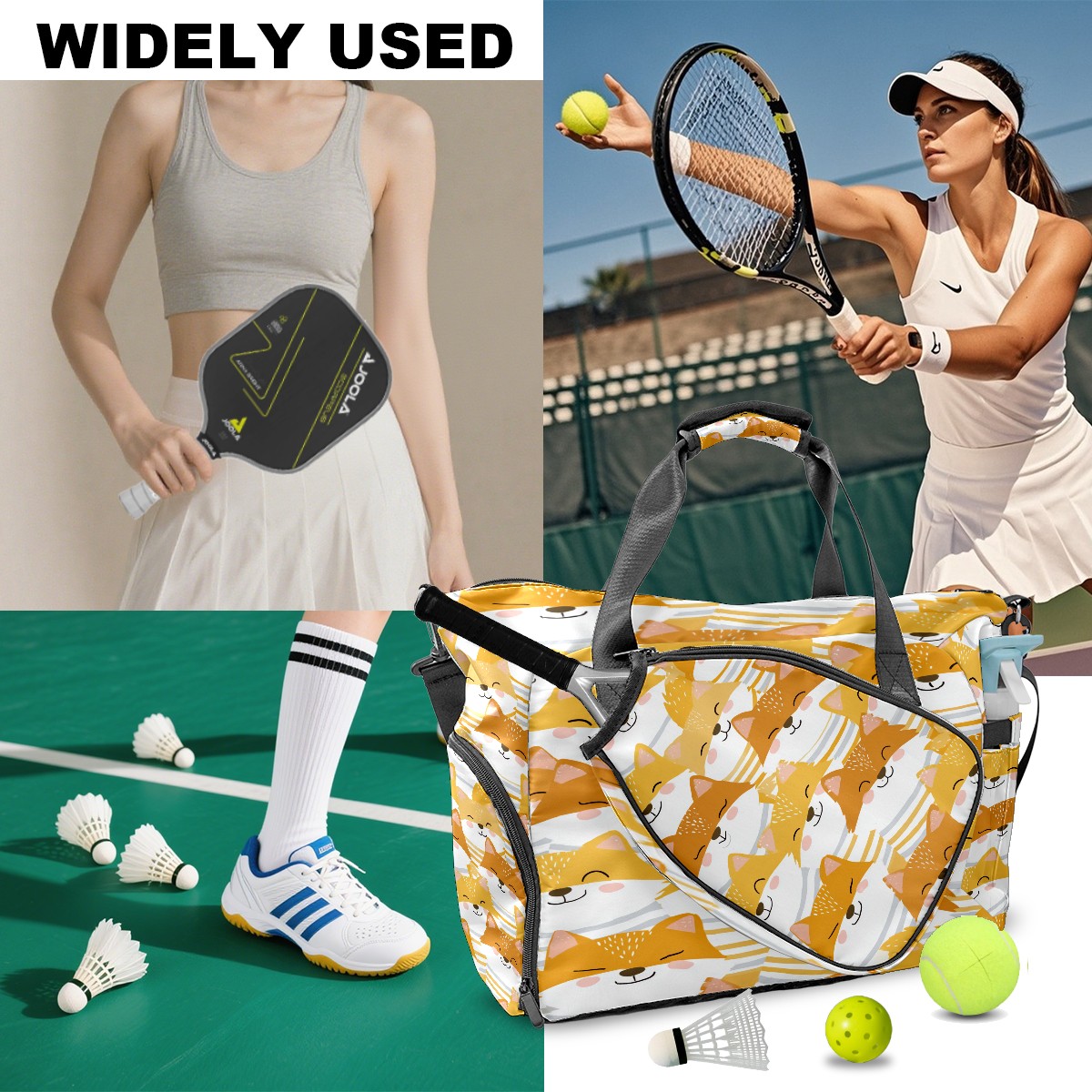 Women's Tennis Bag Large Capacity - Ventilated Shoe Compartment & Waterproof Wet Pocket, Multi-Functional Gym Duffel Bag for Tennis, Yoga, Travel (Beige Foxes)