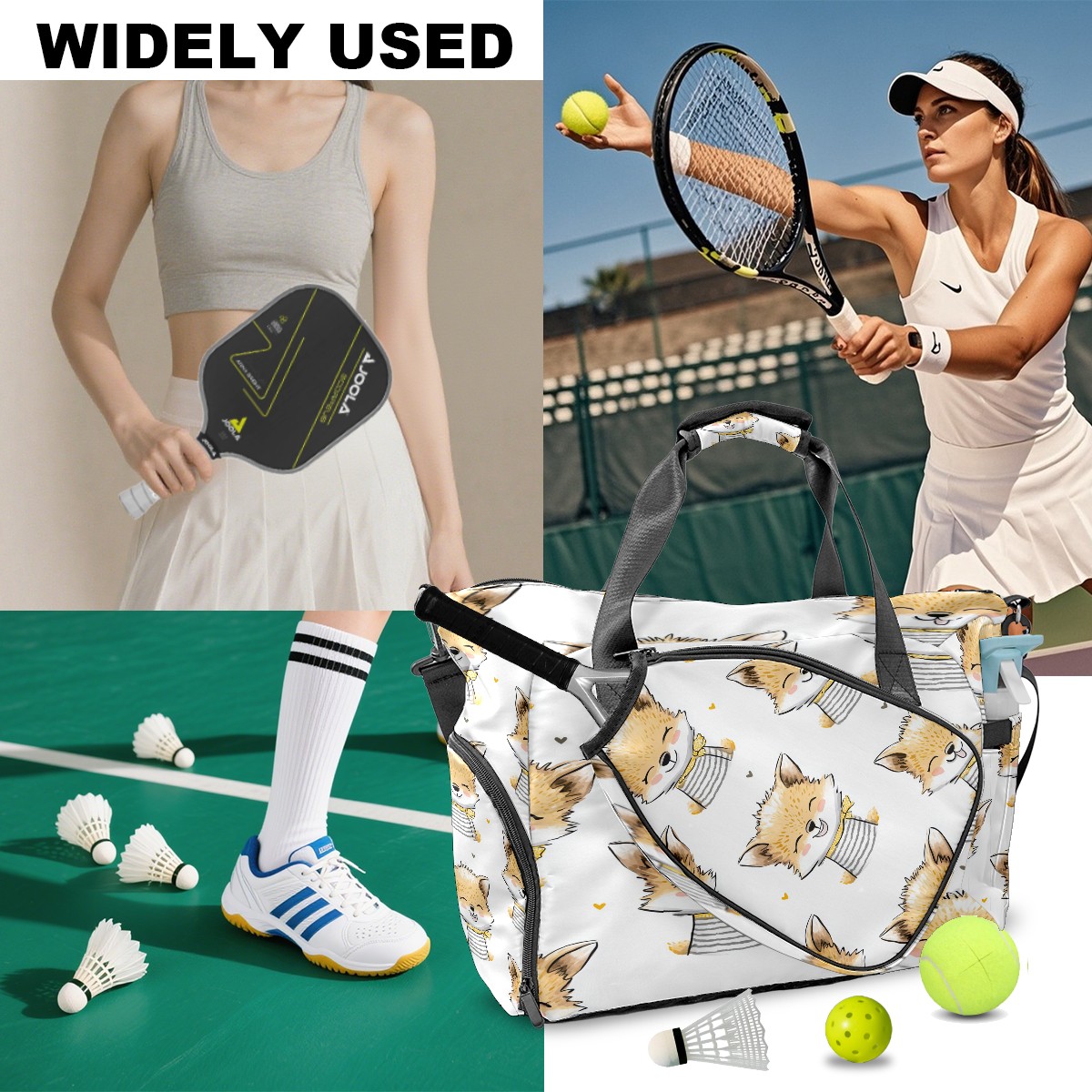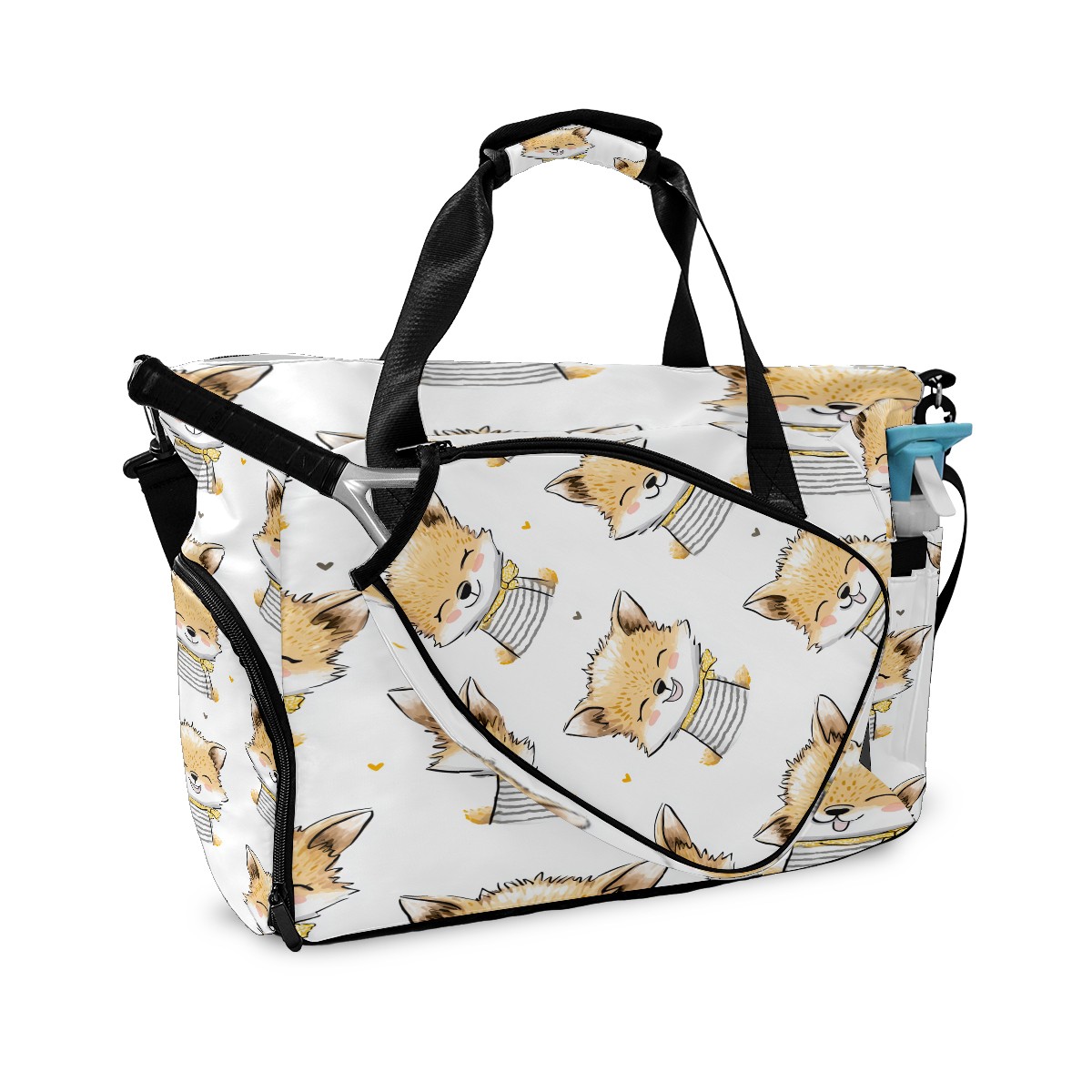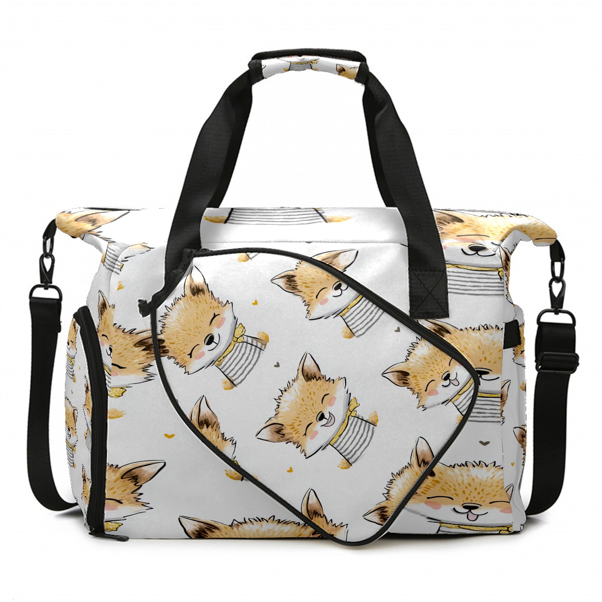 Women's Tennis Bag Large Capacity - Ventilated Shoe Compartment & Waterproof Wet Pocket, Multi-Functional Gym Duffel Bag for Tennis, Yoga, Travel (Foxes White)