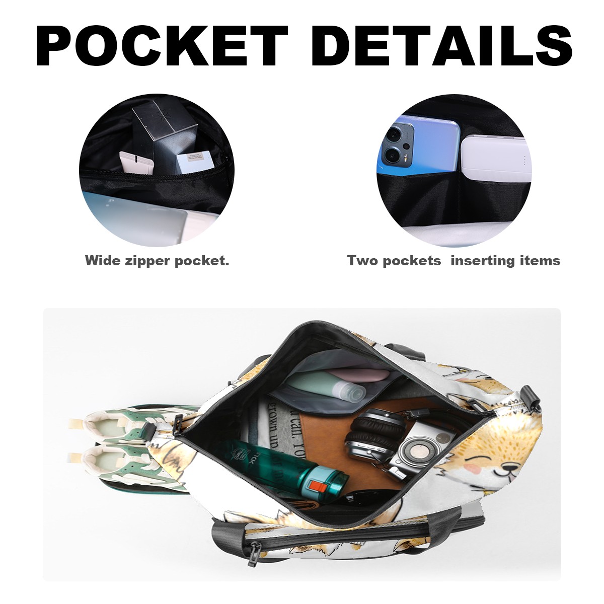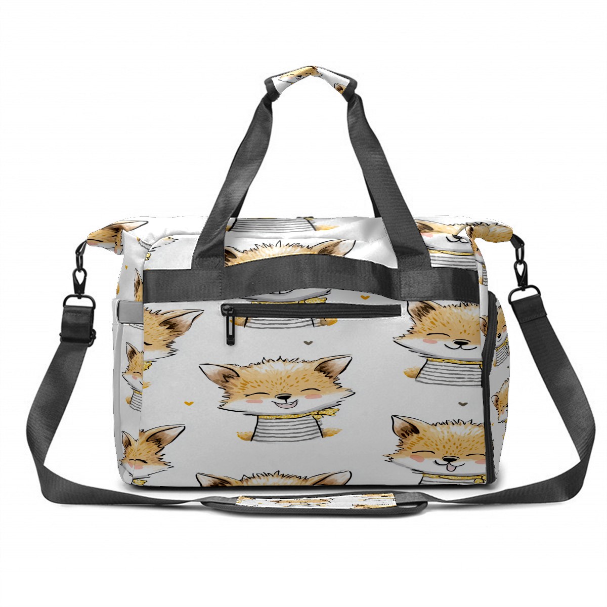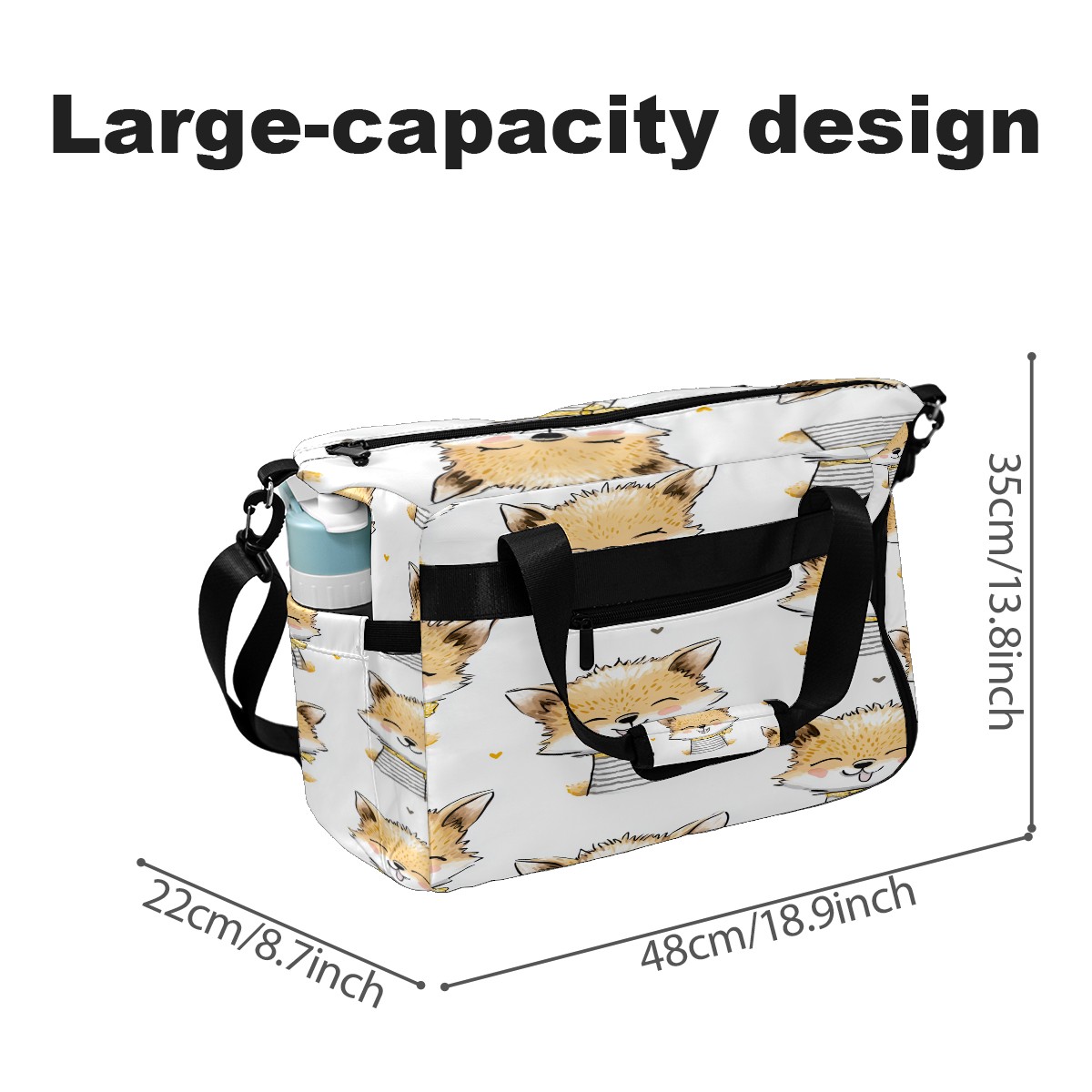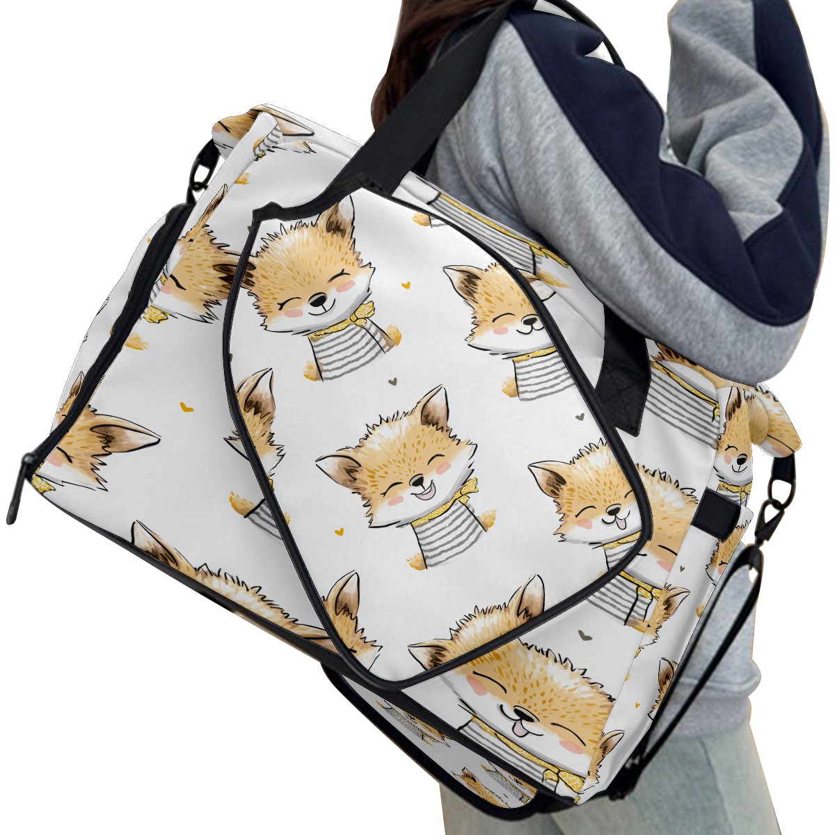 Women's Tennis Bag Large Capacity - Ventilated Shoe Compartment & Waterproof Wet Pocket, Multi-Functional Gym Duffel Bag for Tennis, Yoga, Travel (Foxes White)
