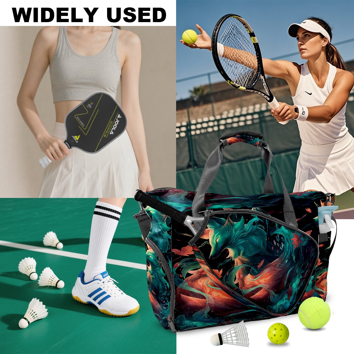 Women's Tennis Bag Large Capacity - Ventilated Shoe Compartment & Waterproof Wet Pocket, Multi-Functional Gym Duffel Bag for Tennis, Yoga, Travel (Fox BlueOrange)