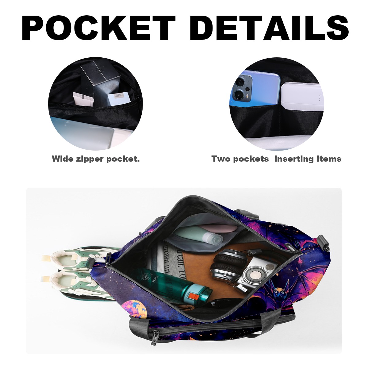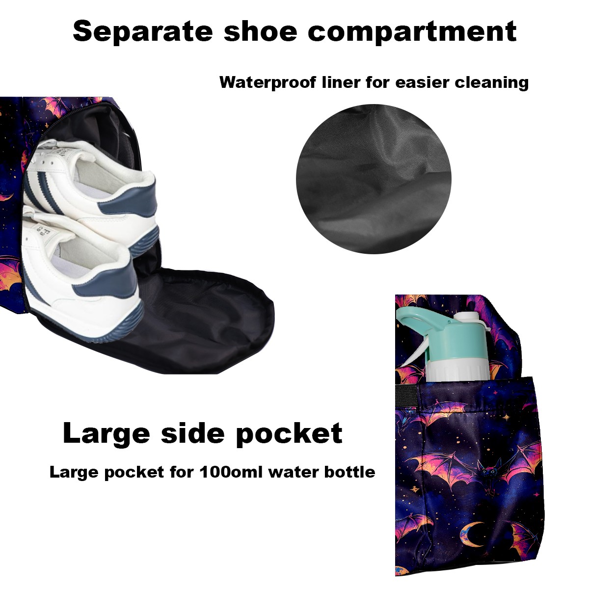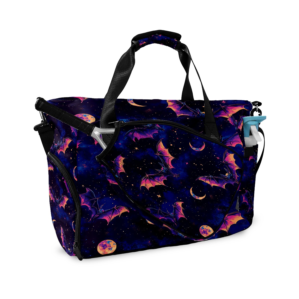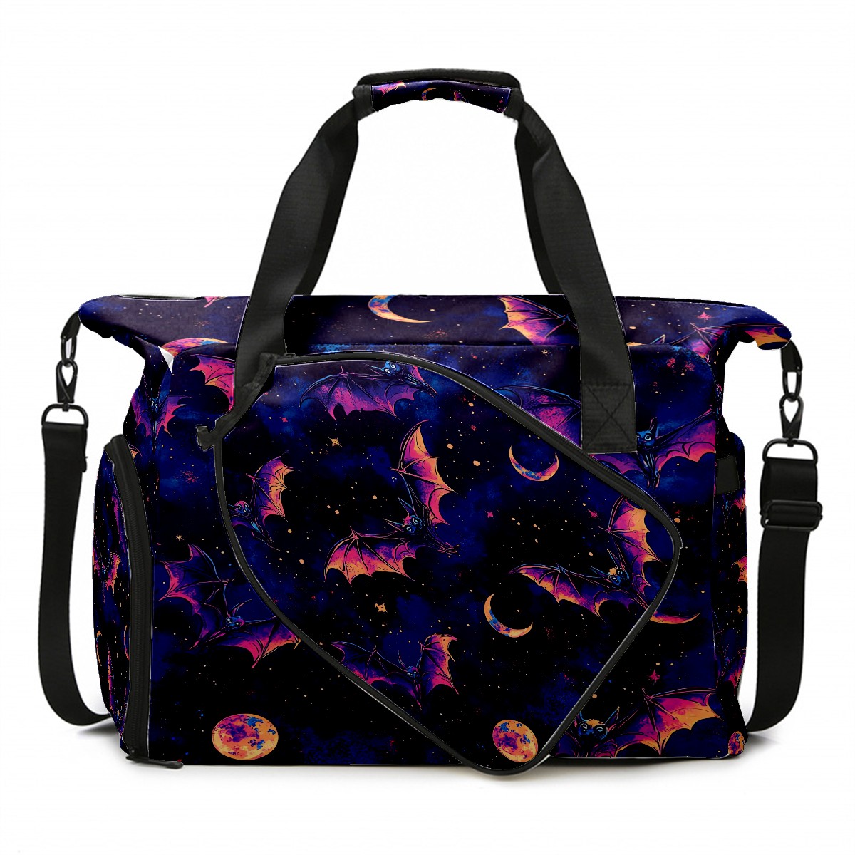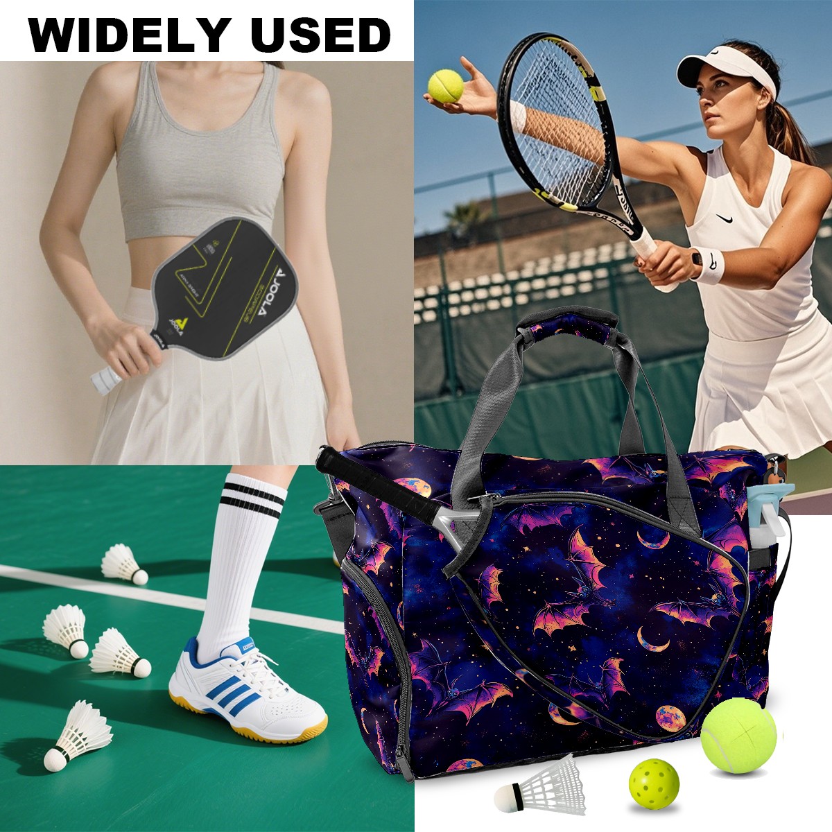 Women's Tennis Bag Large Capacity - Ventilated Shoe Compartment & Waterproof Wet Pocket, Multi-Functional Gym Duffel Bag for Tennis, Yoga, Travel (Galaxy Purple Bat)