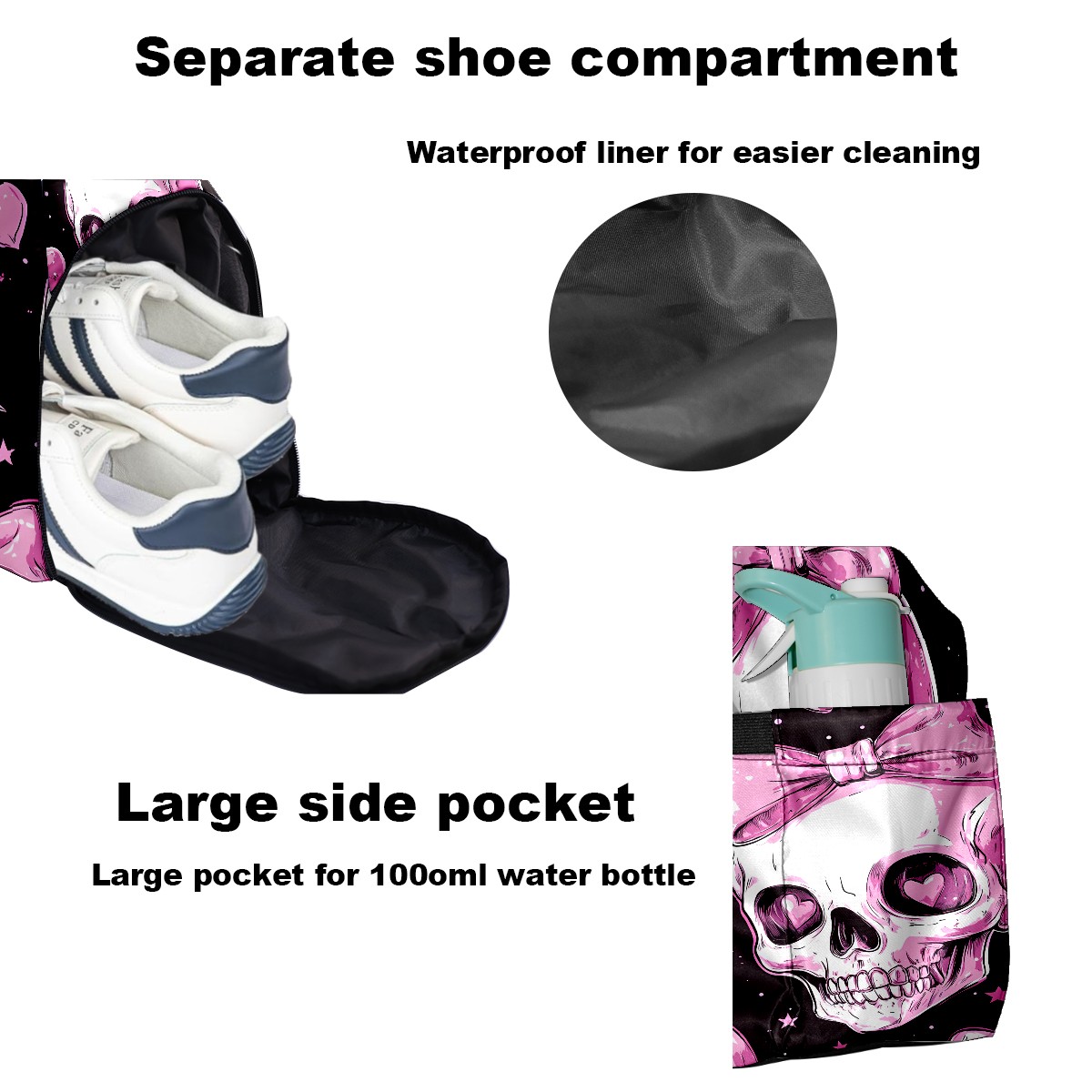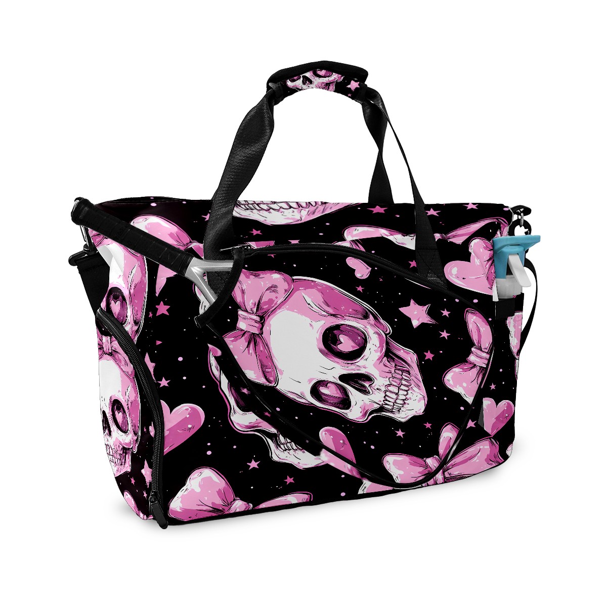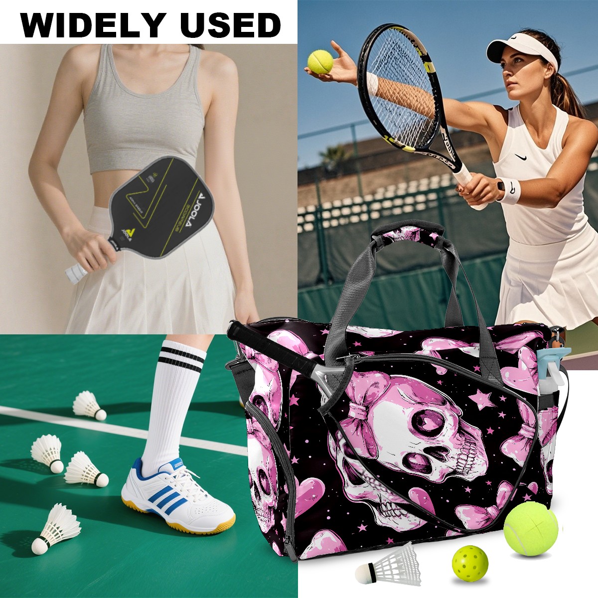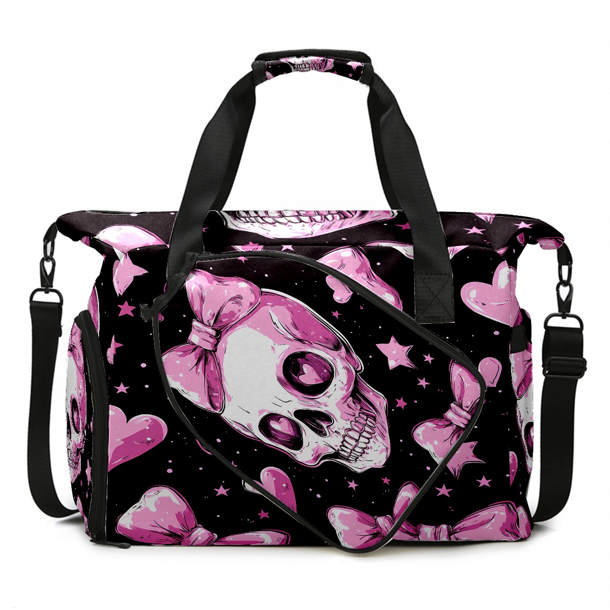 Women's Tennis Bag Large Capacity - Ventilated Shoe Compartment & Waterproof Wet Pocket, Multi-Functional Gym Duffel Bag for Tennis, Yoga, Travel (Pink Skull)