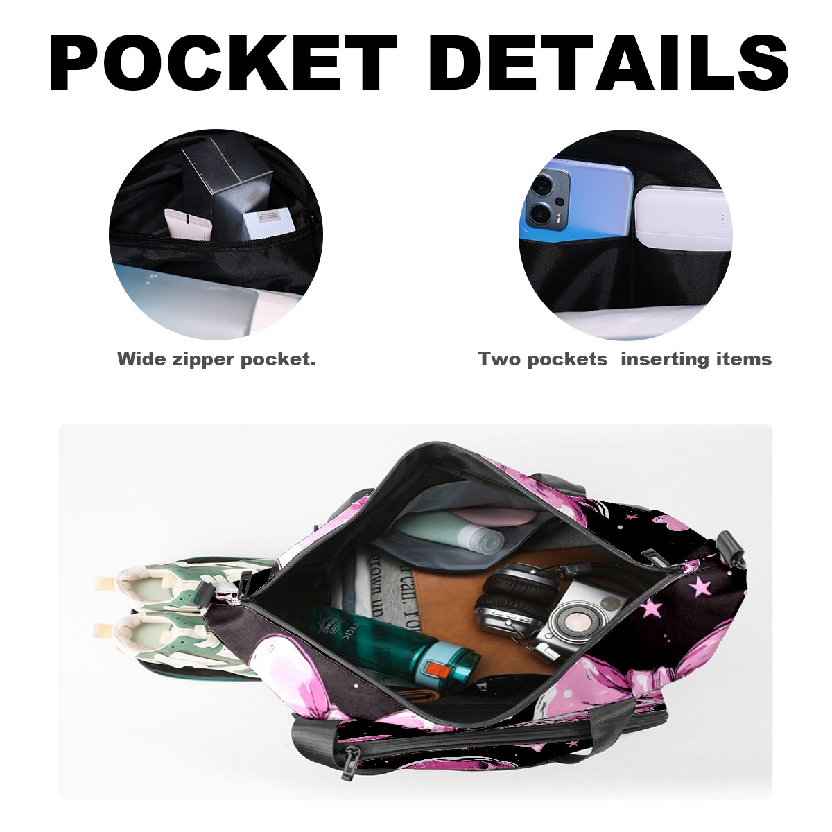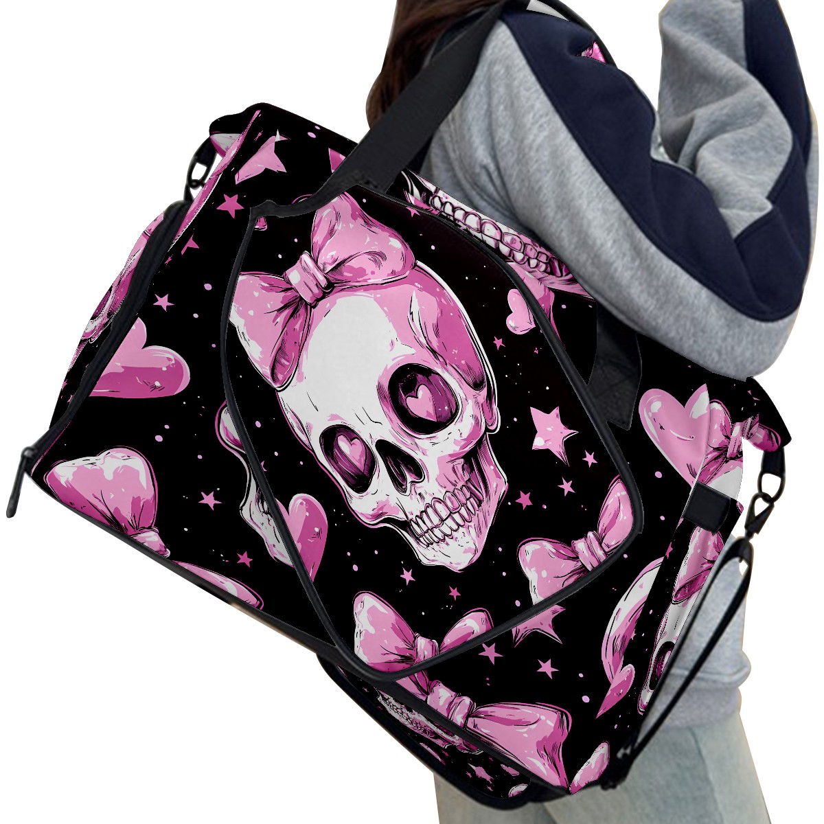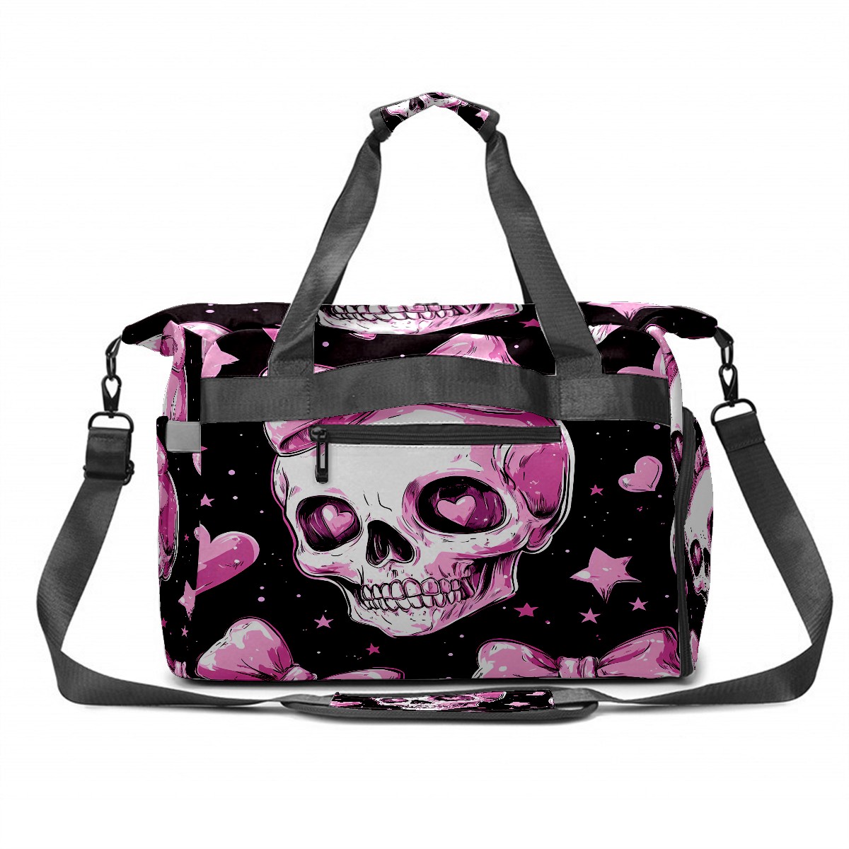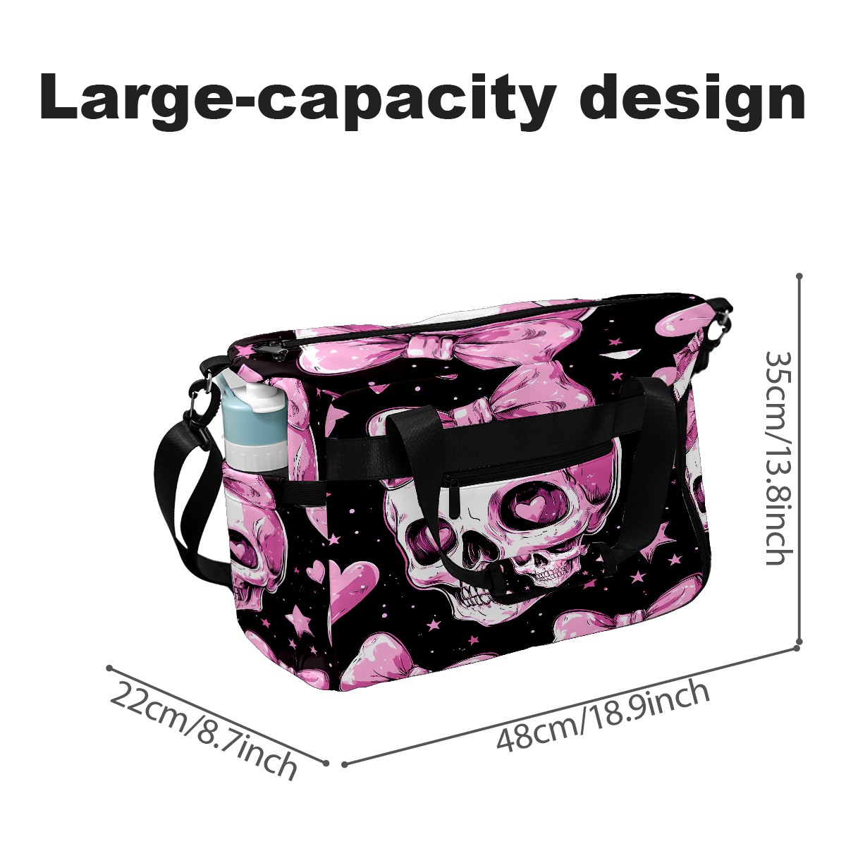 Women's Tennis Bag Large Capacity - Ventilated Shoe Compartment & Waterproof Wet Pocket, Multi-Functional Gym Duffel Bag for Tennis, Yoga, Travel (Pink Skull)