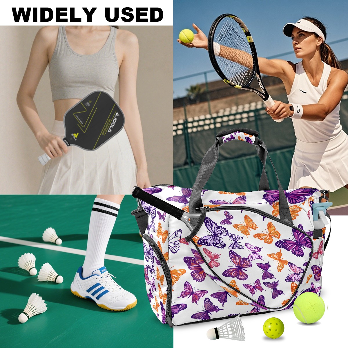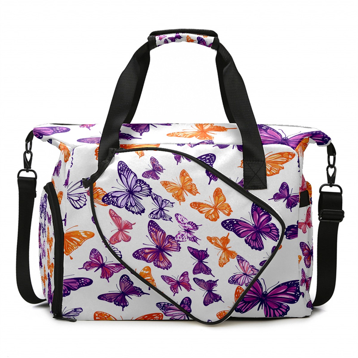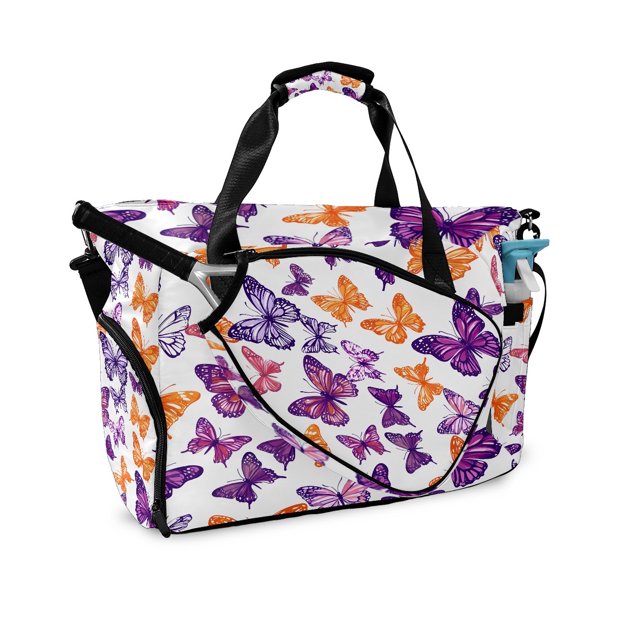 Women's Tennis Bag Large Capacity - Ventilated Shoe Compartment & Waterproof Wet Pocket, Multi-Functional Gym Duffel Bag for Tennis, Yoga, Travel (Purple Butterfly)