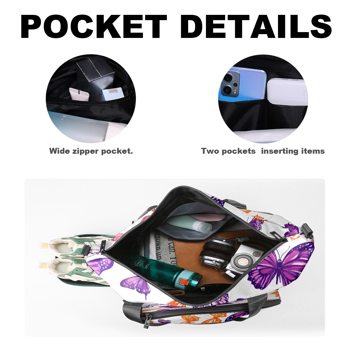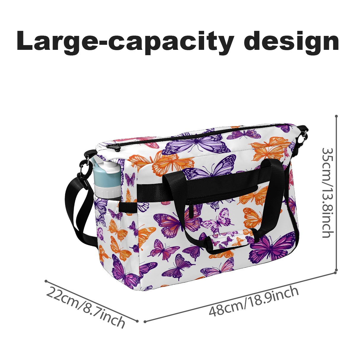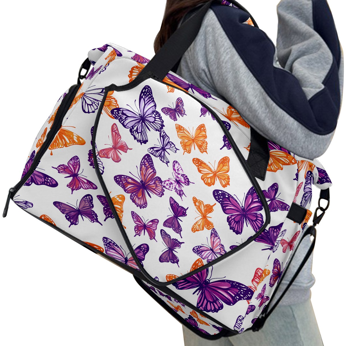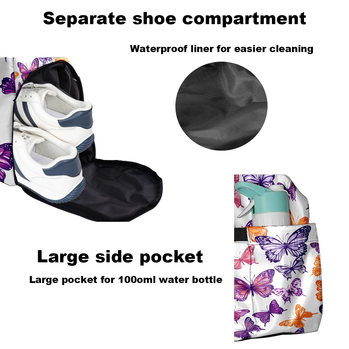Women's Tennis Bag Large Capacity - Ventilated Shoe Compartment & Waterproof Wet Pocket, Multi-Functional Gym Duffel Bag for Tennis, Yoga, Travel (Purple Butterfly)