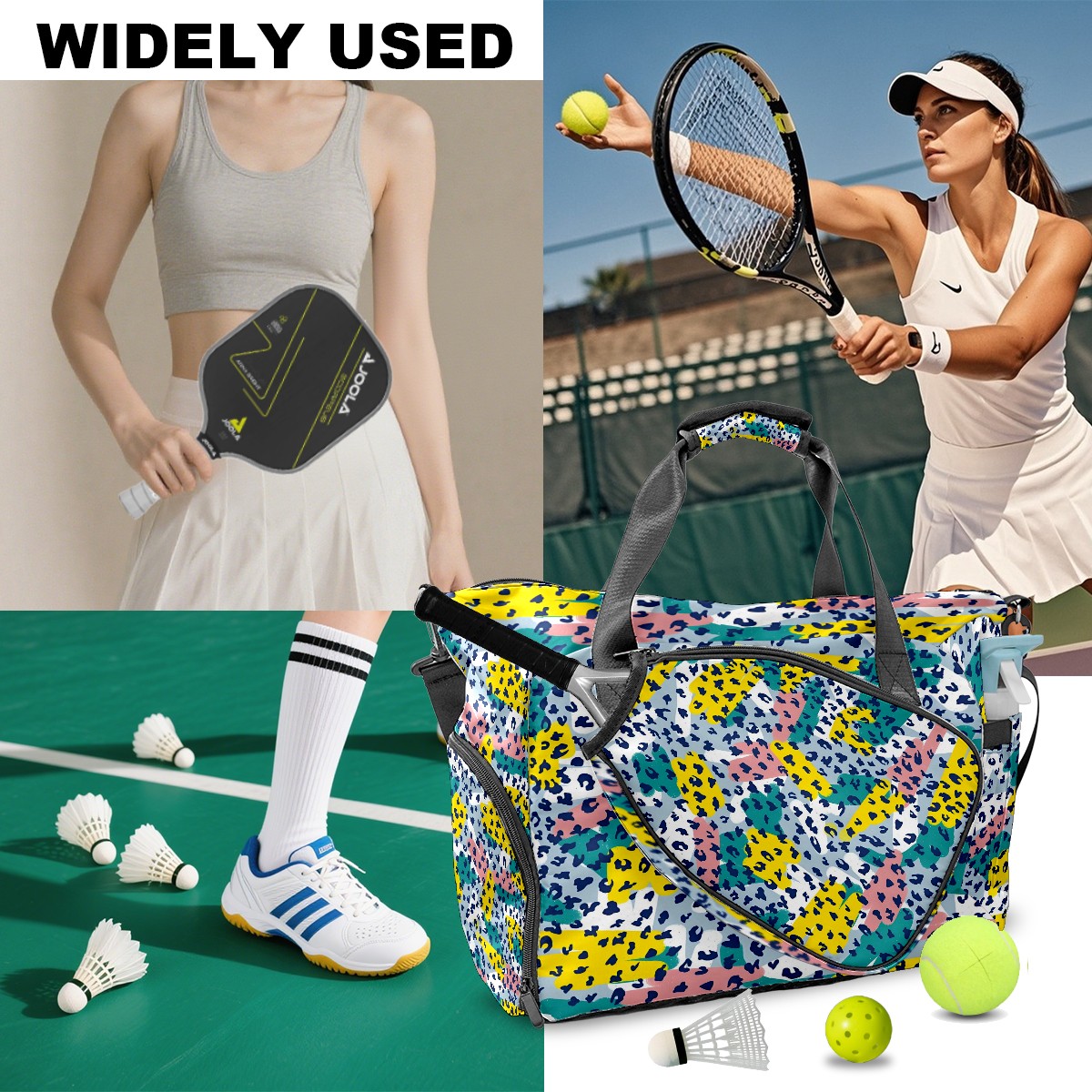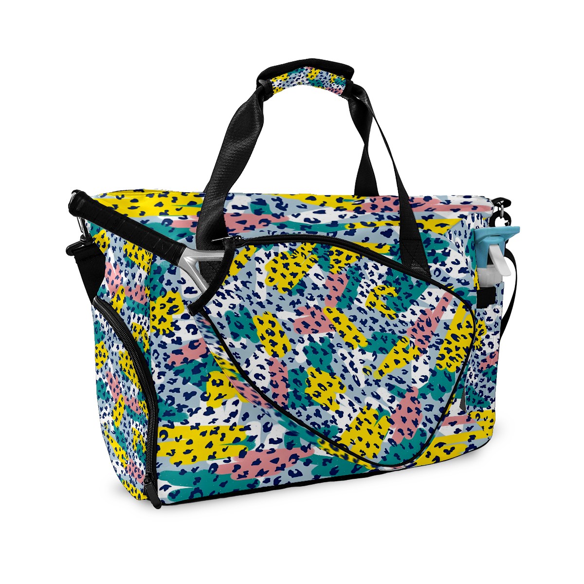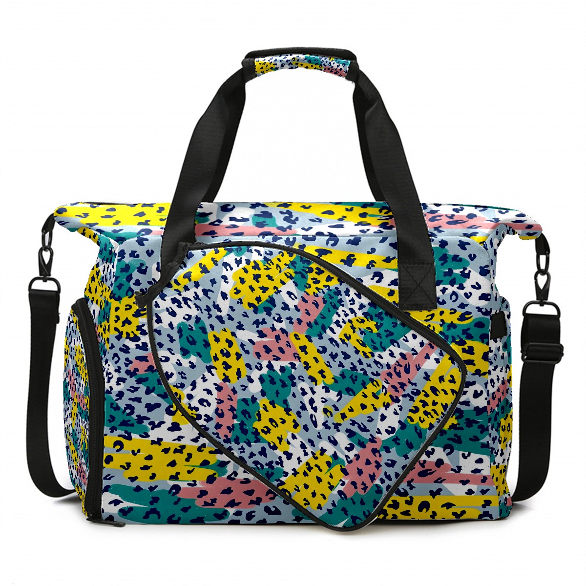 Women's Tennis Bag Large Capacity - Ventilated Shoe Compartment & Waterproof Wet Pocket, Multi-Functional Gym Duffel Bag for Tennis, Yoga, Travel (White Leopard Print Accents)