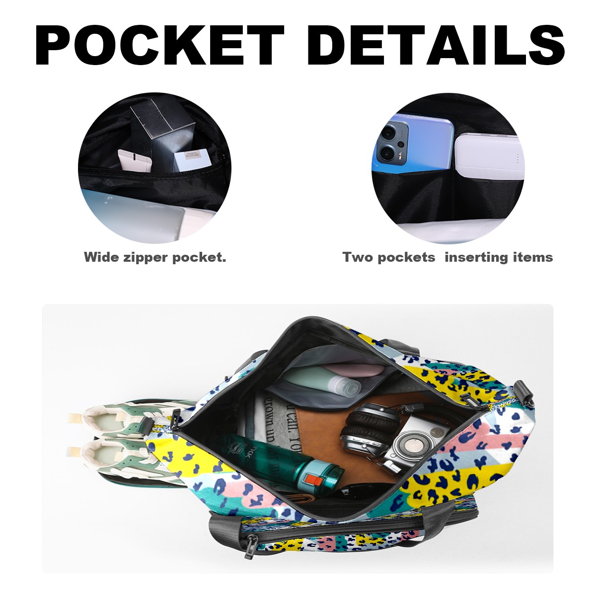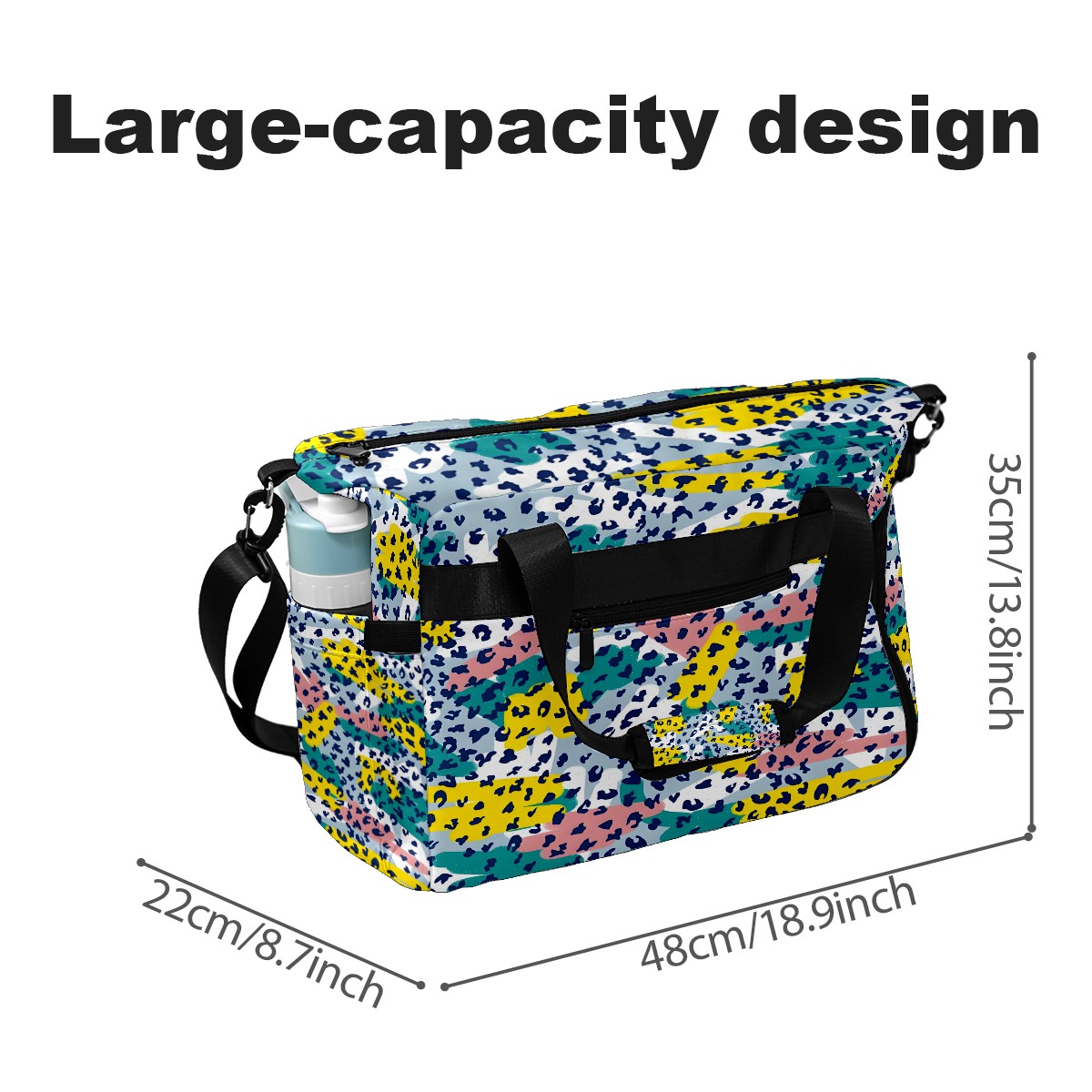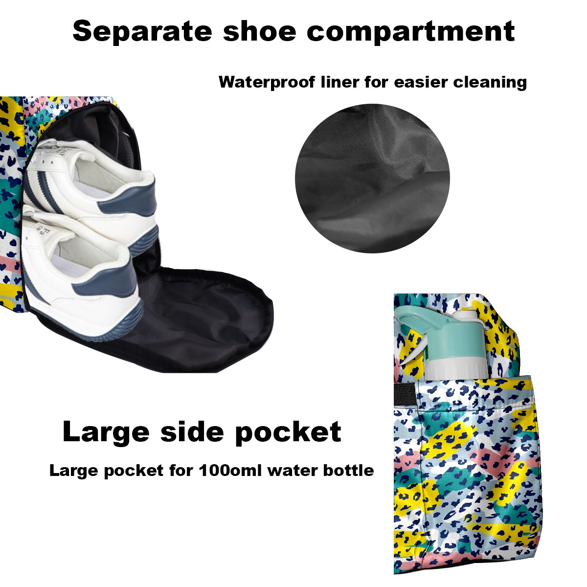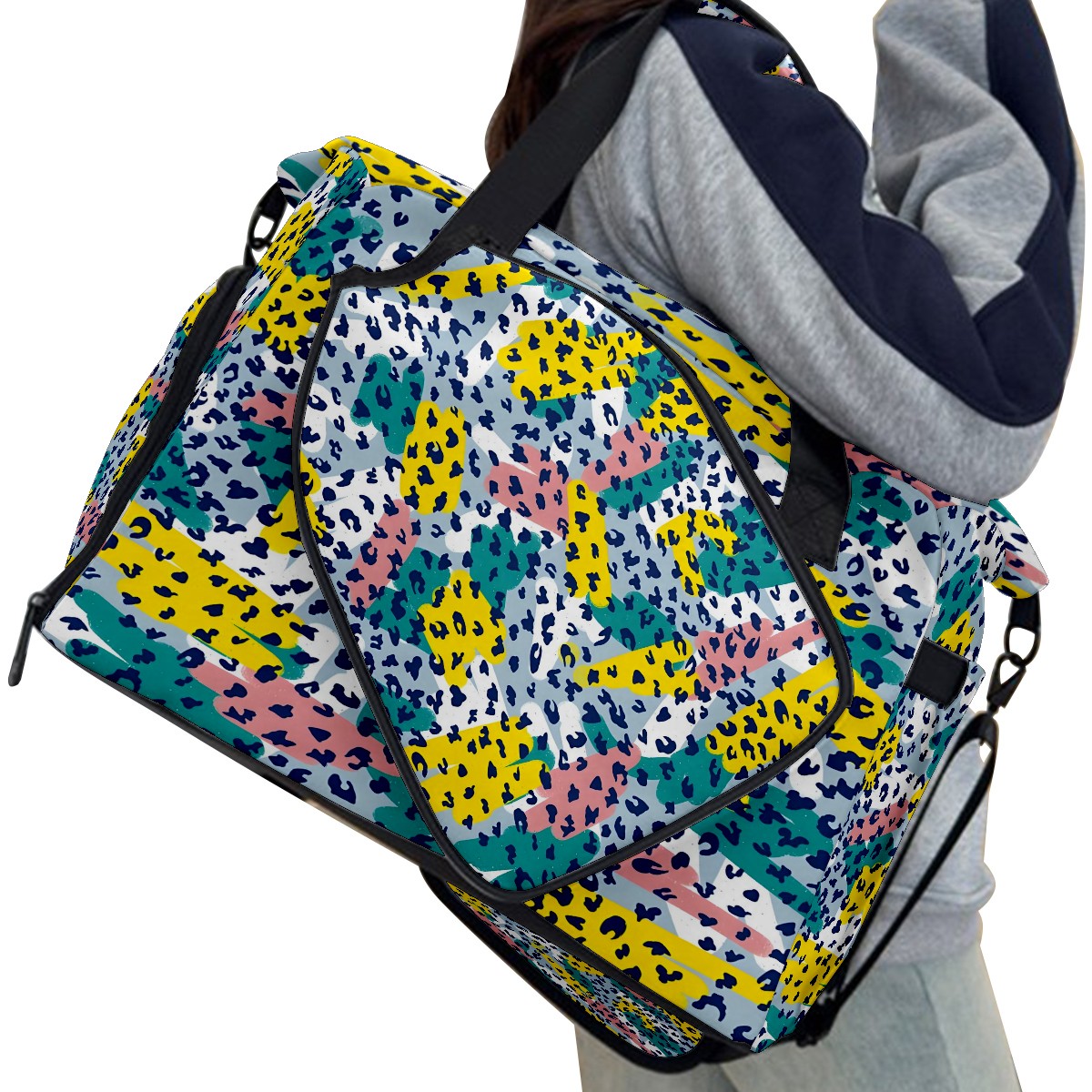 Women's Tennis Bag Large Capacity - Ventilated Shoe Compartment & Waterproof Wet Pocket, Multi-Functional Gym Duffel Bag for Tennis, Yoga, Travel (White Leopard Print Accents)